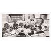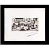 A photograph of the first script read from the production of J.J. Abrams' Star Wars: The Force Awakens autographed by Anthony Daniels. The framed black-and-white photograph features the main cast, Abrams, writer Lawrence Kasdan, and producers Kathleen Kennedy and Bryan Burk. The photograph has been mounted onto white card and Daniels has autographed the card in black ink. Dimensions: 41 cm x 51 cm (16" x 20")