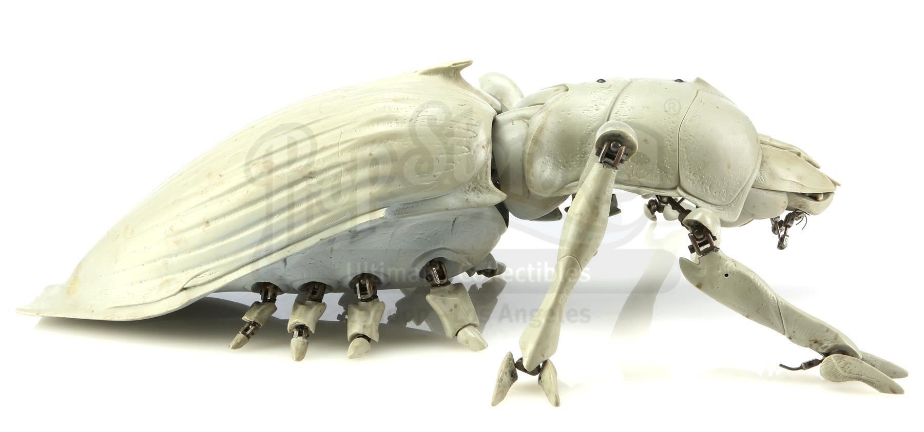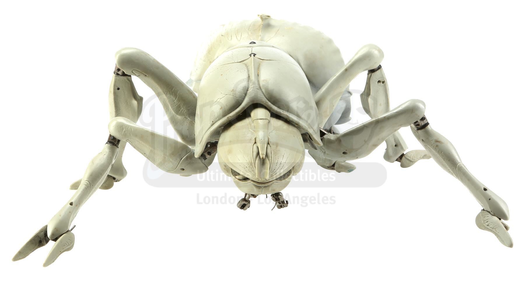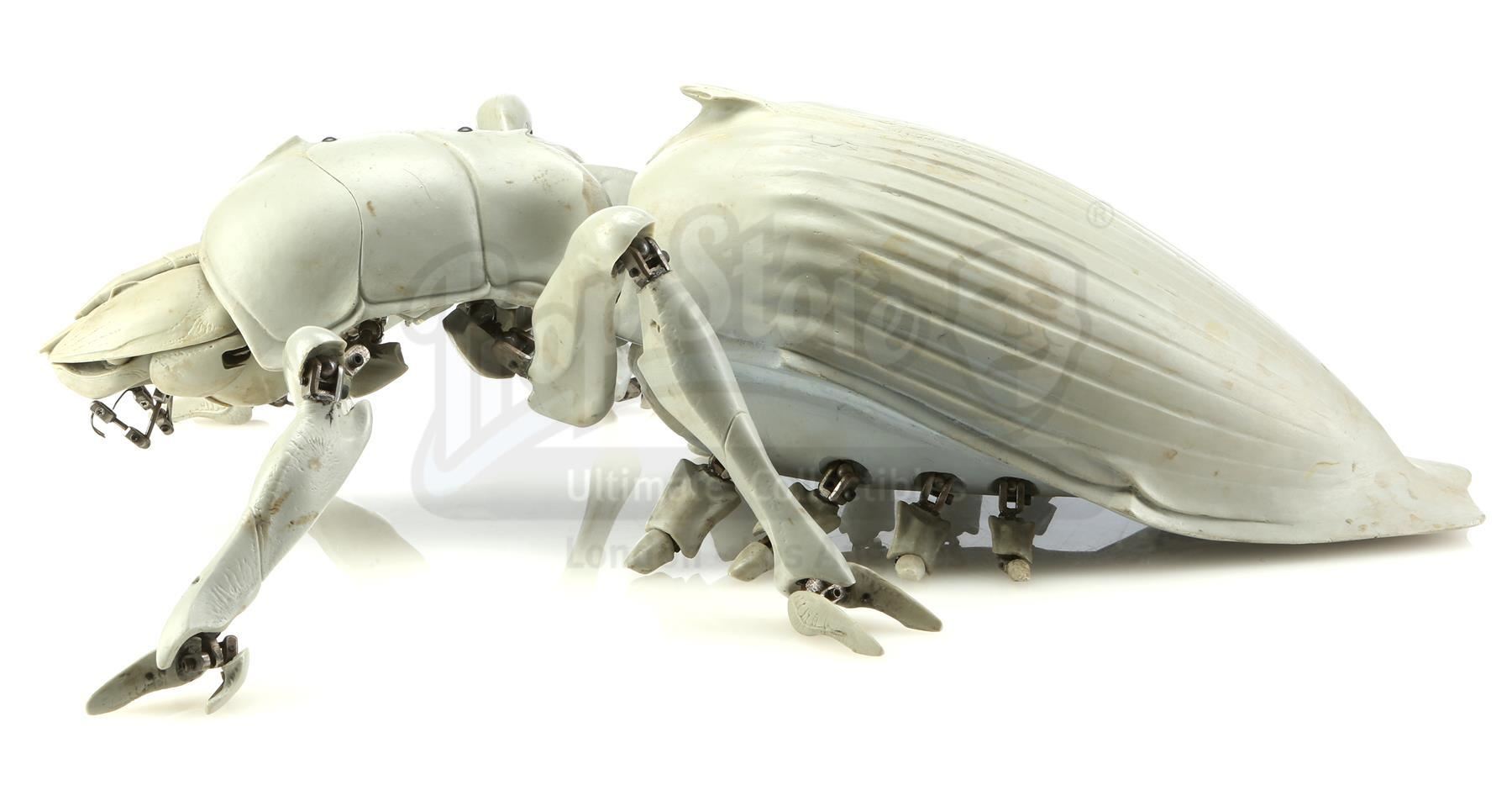 A Tanker Bug stop-motion training puppet from Paul Verhoeven's science fiction action film Starship Troopers. After Johnny Rico (Casper Van Dien) joined the war between humans and the alien Arachnids, he encountered several giant Tanker bugs on the battlefield with his regiment of mobile infantry soldiers. Tippett Studio created maquettes of the film's various bugs for shot planning, as well as for training digital animators. Phil Tippett is credited as Creature Visual Effects Supervisor for the film and was nominated for Best Visual Effects for his work on this film at the 70th Academy Awards. This unpainted Tanker Bug maquette was sculpted by Peter Konig and is cast in resin with articulating stop-motion joints on all of its appendages. It was used for shot rehearsal and animator training. It is in very good overall condition with some wear from use, such as discoloration and staining throughout as well as a few small missing elements.
