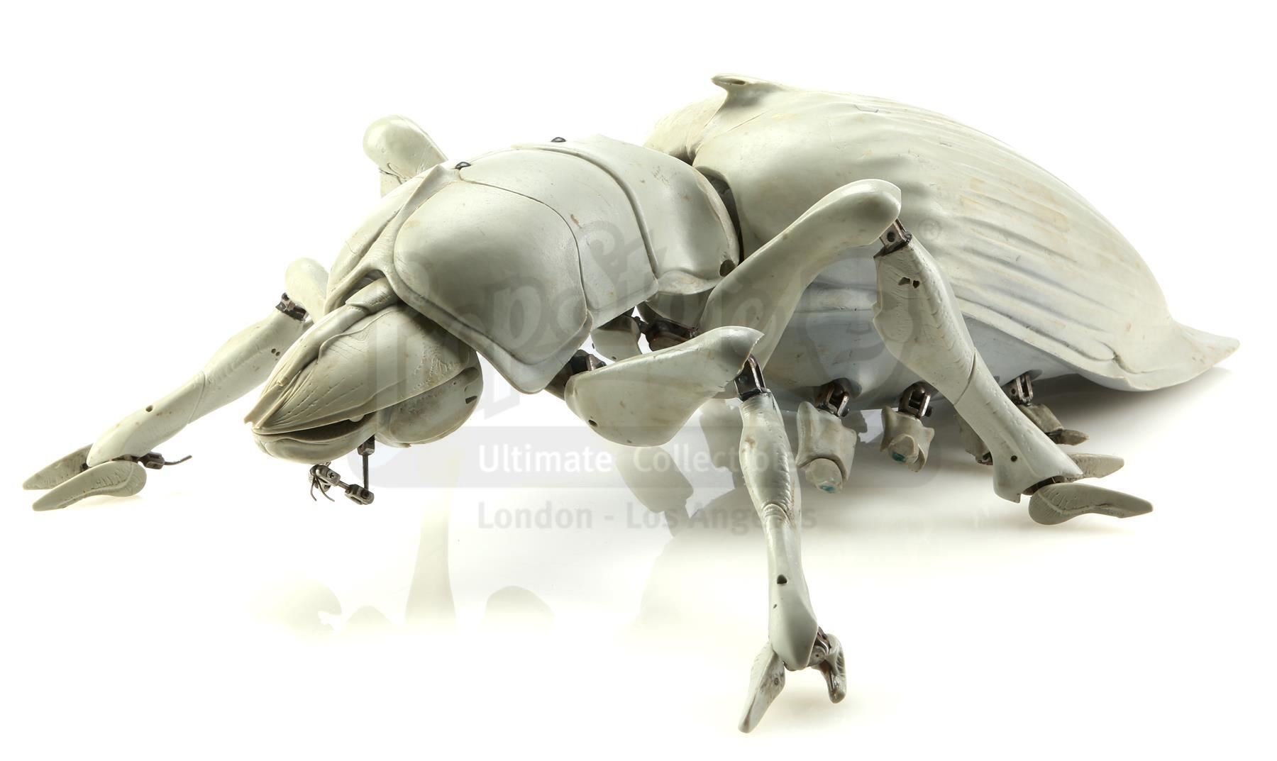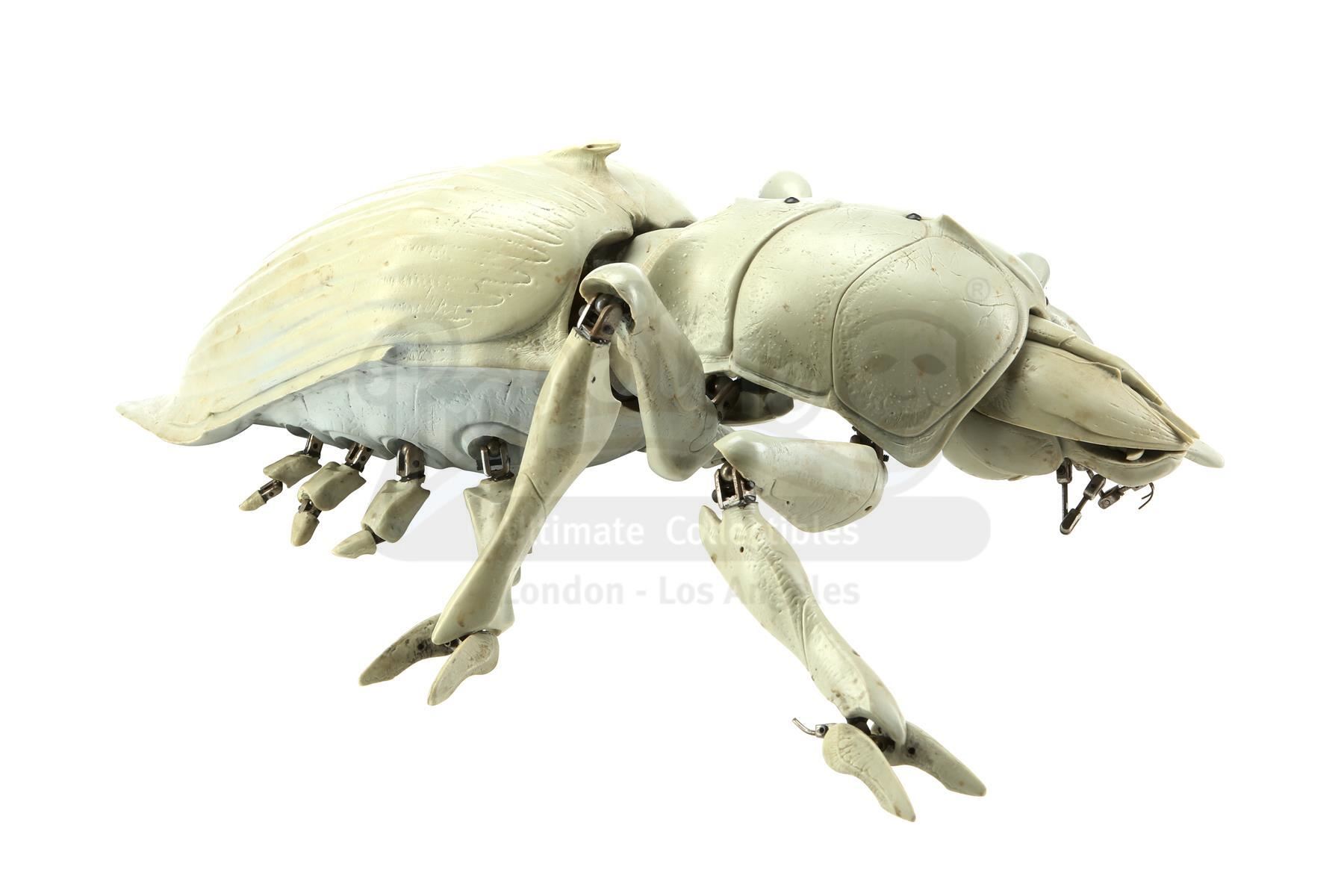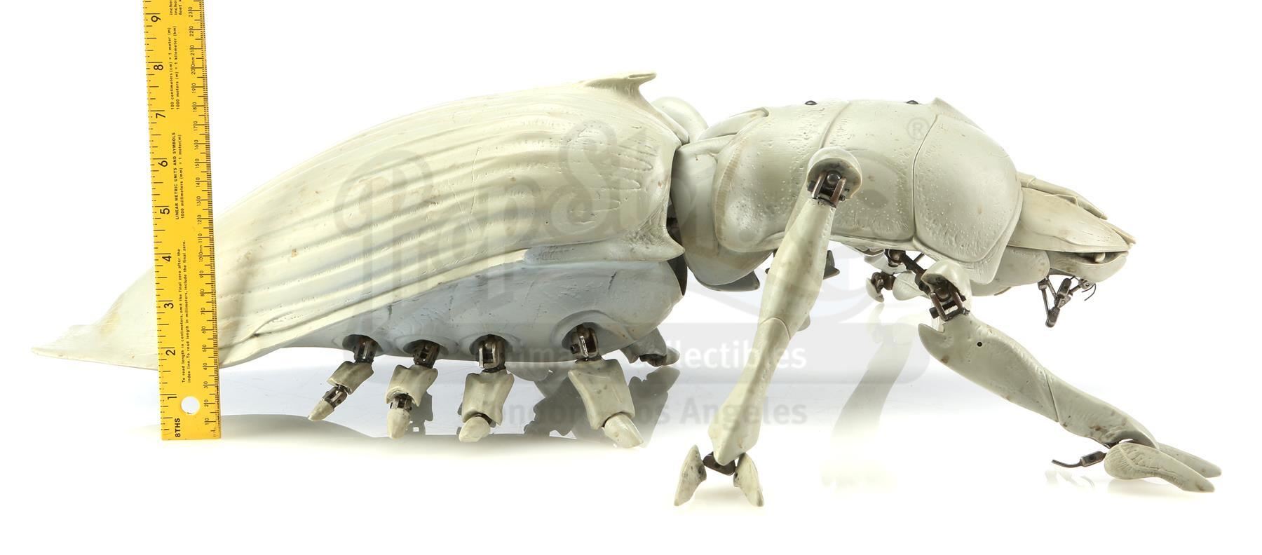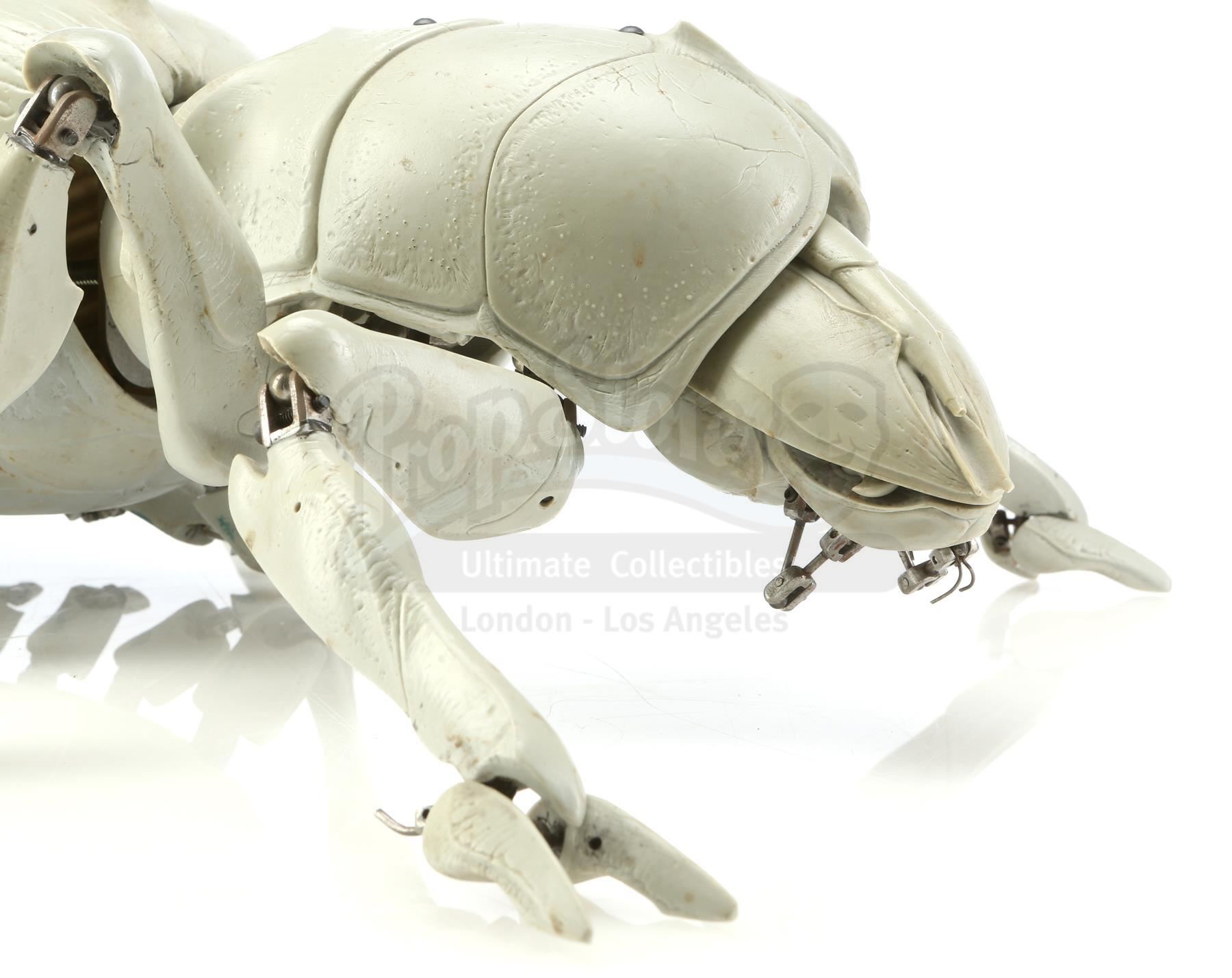 A Tanker Bug stop-motion training puppet from Paul Verhoeven's science fiction action film Starship Troopers. After Johnny Rico (Casper Van Dien) joined the war between humans and the alien Arachnids, he encountered several giant Tanker bugs on the battlefield with his regiment of mobile infantry soldiers. Tippett Studio created maquettes of the film's various bugs for shot planning, as well as for training digital animators. Phil Tippett is credited as Creature Visual Effects Supervisor for the film and was nominated for Best Visual Effects for his work on this film at the 70th Academy Awards. This unpainted Tanker Bug maquette was sculpted by Peter Konig and is cast in resin with articulating stop-motion joints on all of its appendages. It was used for shot rehearsal and animator training. It is in very good overall condition with some wear from use, such as discoloration and staining throughout as well as a few small missing elements.