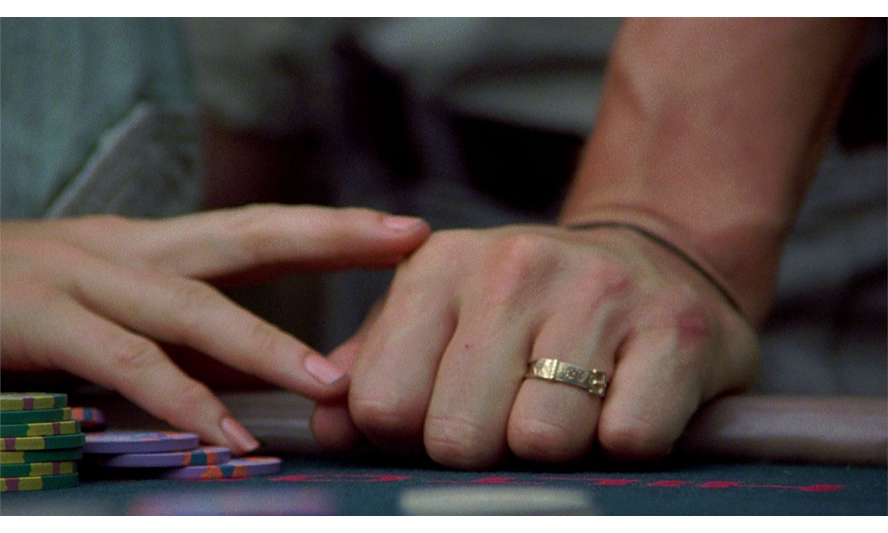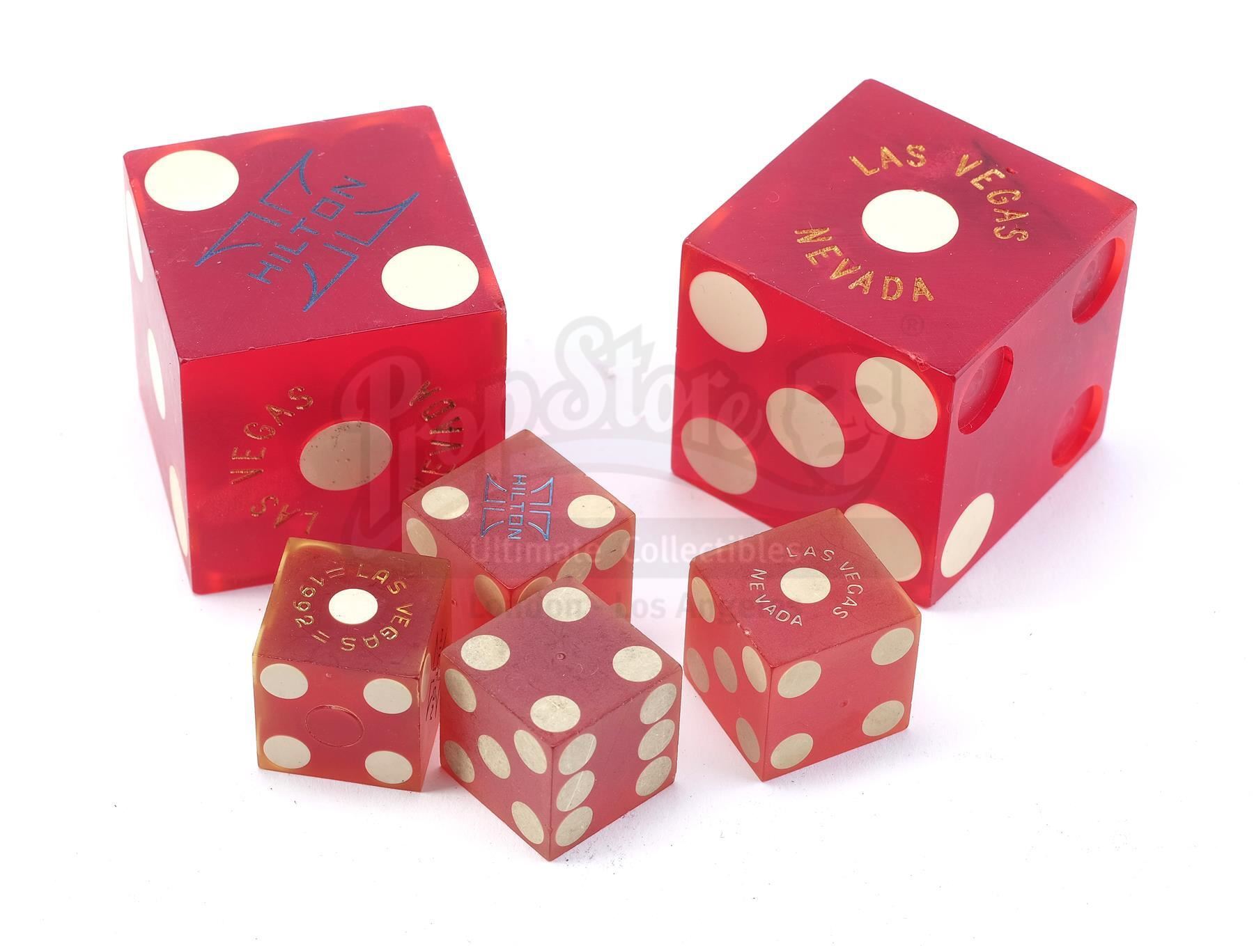 This lot will be auctioned on Wednesday, June 30th. The auction will begin at 9:00am PDT and lots are sold sequentially via live auctioneer; tune in to the live streaming broadcast on auction day to follow the pace. Note other lots in the auction may close on June 29th or July 1st. David Murphy's (Woody Harrelson) ring, Diane Murphy's (Demi Moore) kissing dice, and additional production ephemera from Adrian Lyne's drama Indecent Proposal. When the Murphys visited a Las Vegas casino, billionaire John Gage (Robert Redford) asked Diane to kiss his lucky dice. This lot consists of a metal ring on a leather string; four red translucent dice with white dots; two matching oversized dice; a white cotton napkin embroidered "GRYPHON"; seven metal casino chips; and a collection of production paperwork and photographs. The larger dice were used for insert shots by second unit consultant Michael Bay. The lot exhibits signs of production use throughout, but remains in good overall condition. Dimensions (largest): 14" x 9.5" x 3.75" (35.5 cm x 24.25 cm x 9.5 cm) Estimate: $2,000 - 3,000