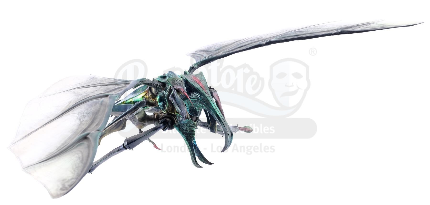 A flying Hopper Bug maquette from Paul Verhoeven's science fiction action film Starship Troopers. After Johnny Rico (Casper Van Dien) joined the war between humans and the alien Arachnids, he encountered several flying Hopper Bugs on the battlefield with his regiment of mobile infantry soldiers. Tippett Studio created maquettes of the film's various Bugs as a three-dimensional representation of the creatures that were largely digitally animated; they were tools for shot planning, lighting reference, and other purposes. Phil Tippett is credited as Creature Visual Effects Supervisor for the film and was nominated for Best Visual Effects for his work on this film at the 70th Academy Awards.