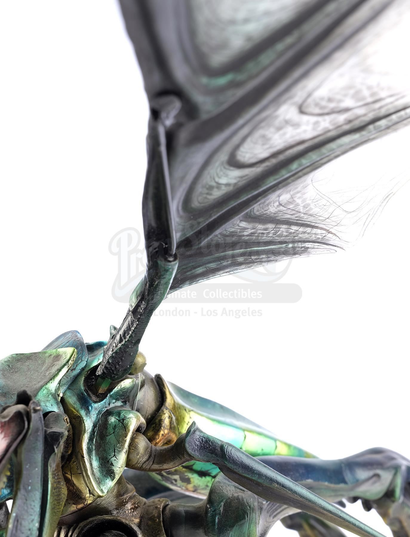 This Hopper Bug maquette was sculpted by Peter Konig and is cast in resin. A set of removable vacuformed plastic wings and the front legs attach to the body via small metal rods. The front feelers also feature several points of articulation. Maquettes were used in the conceptual stages of production as well as during filming to give scale and as a reference for lighting on set. It is in excellent overall condition with some minor wear from use, such as wear and residue on some of the joints, and includes a letter of authenticity from Phil Tippett.