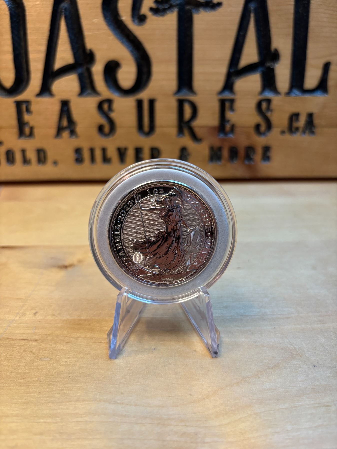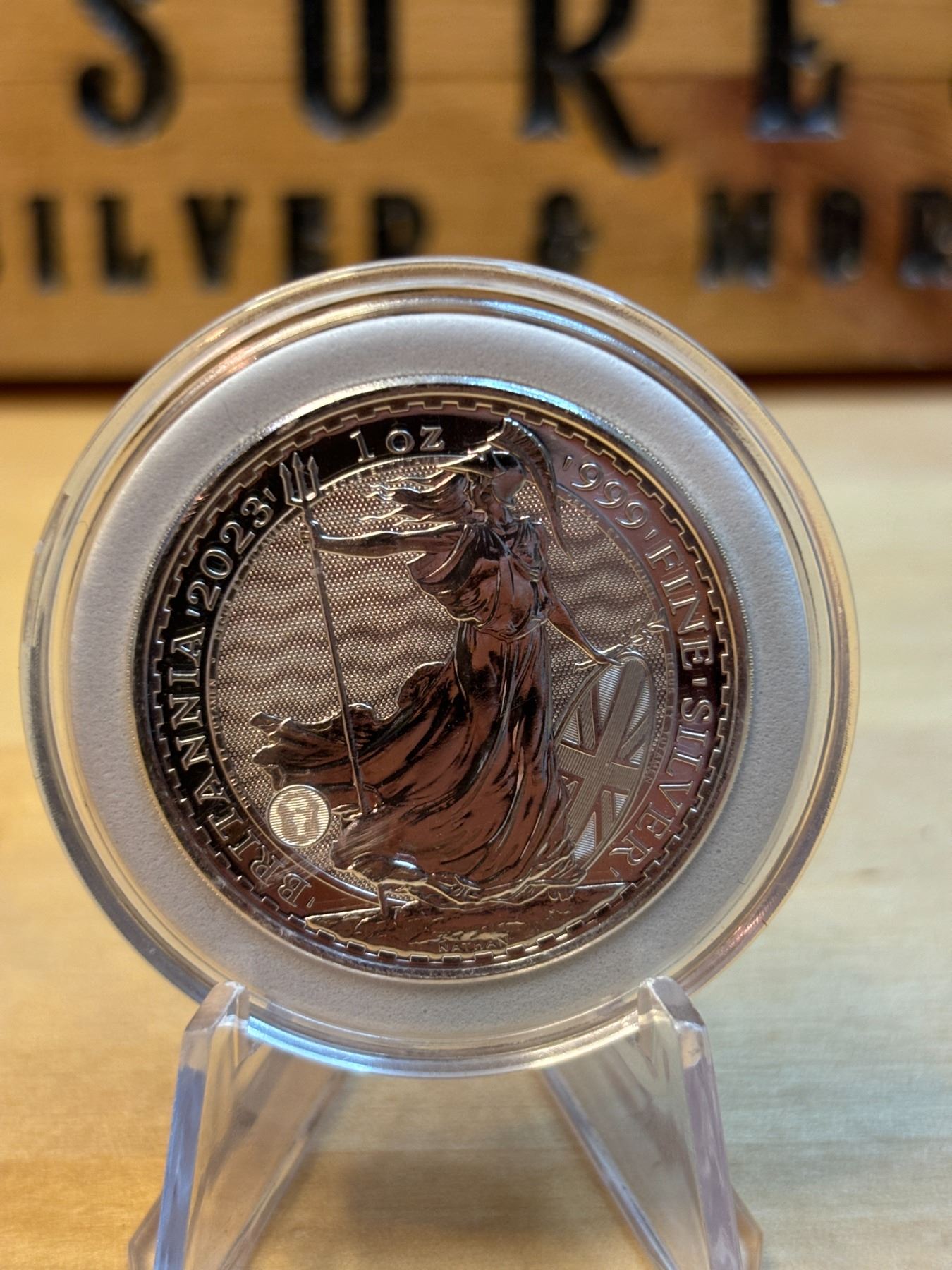 The 1 oz Britannia 2023 Silver Coin is part of the popular Britannia series, produced by the Royal Mint. It contains 1 ounce of .999 fine silver and features the iconic image of Britannia, symbolizing strength and resilience. The 2023 edition features an updated design with enhanced security features, such as a new background wave pattern and a holographic foil that changes in the light, making it more difficult to counterfeit. The coin is widely sought after by collectors and investors alike.