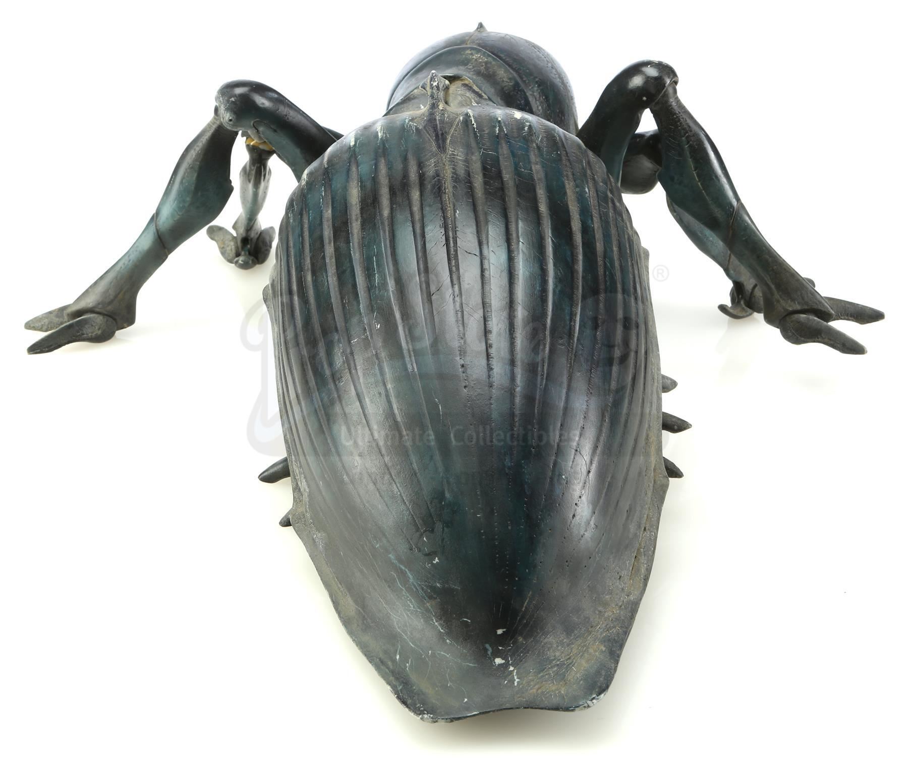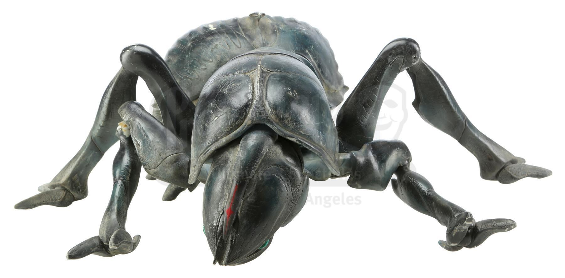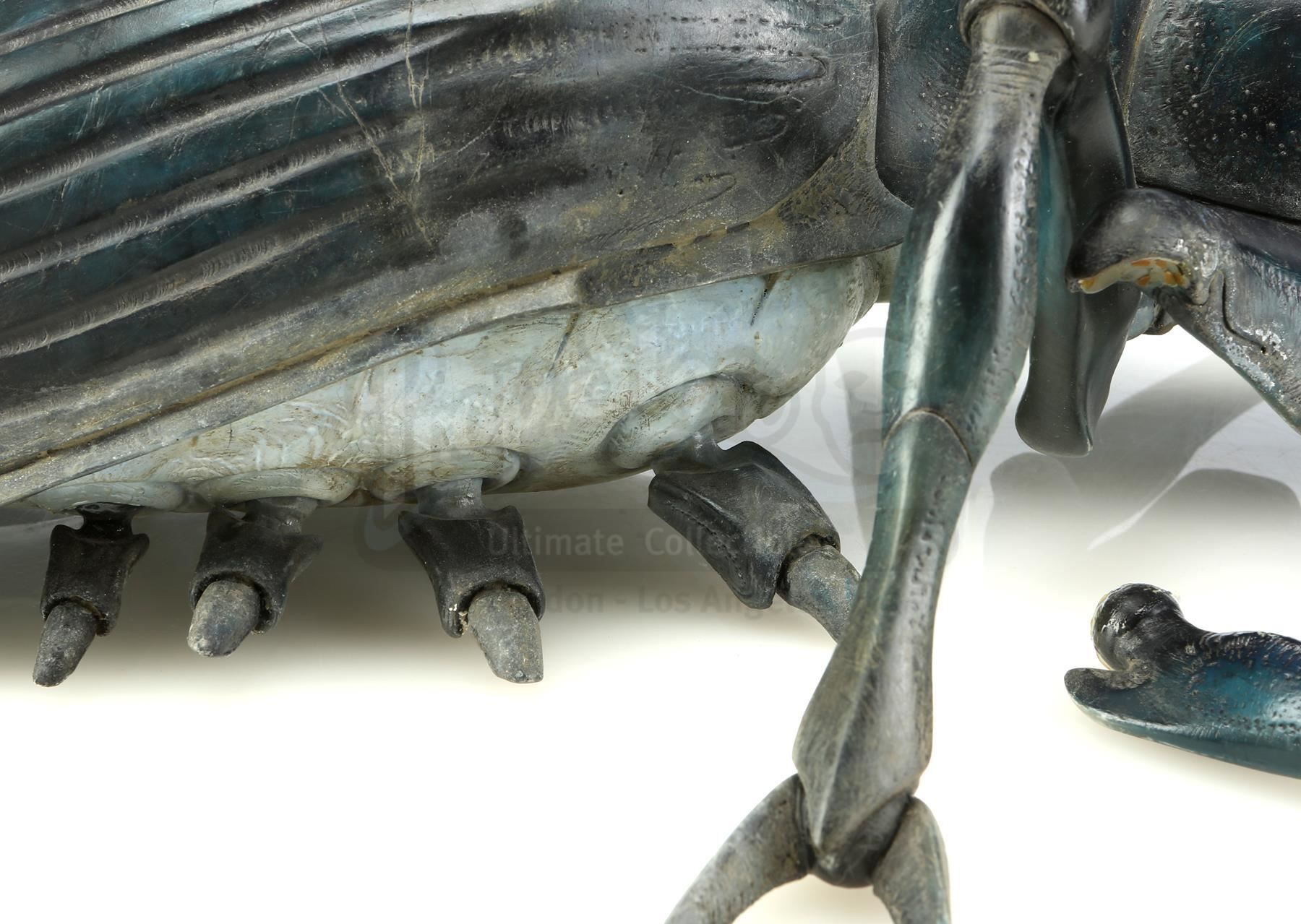 Tippett Studio created maquettes of the film's various bugs as a three-dimensional representation of the creatures that were largely digitally animated; they were tools for shot planning, lighting reference, and other purposes. Phil Tippett is credited as Creature Visual Effects Supervisor for the film and was nominated for Best Visual Effects for his work on this film at the 70th Academy Awards. This Tanker Bug maquette was sculpted by Peter Konig and is cast in resin with articulating joints. Maquettes were used in the conceptual stages of production as well as during filming to give scale and as a reference for lighting on set. It is in good overall condition with wear from use, such as scratches and paint chipping throughout, one loose leg and one leg which has separated at the first joint. Includes a letter of authenticity from Phil Tippett.