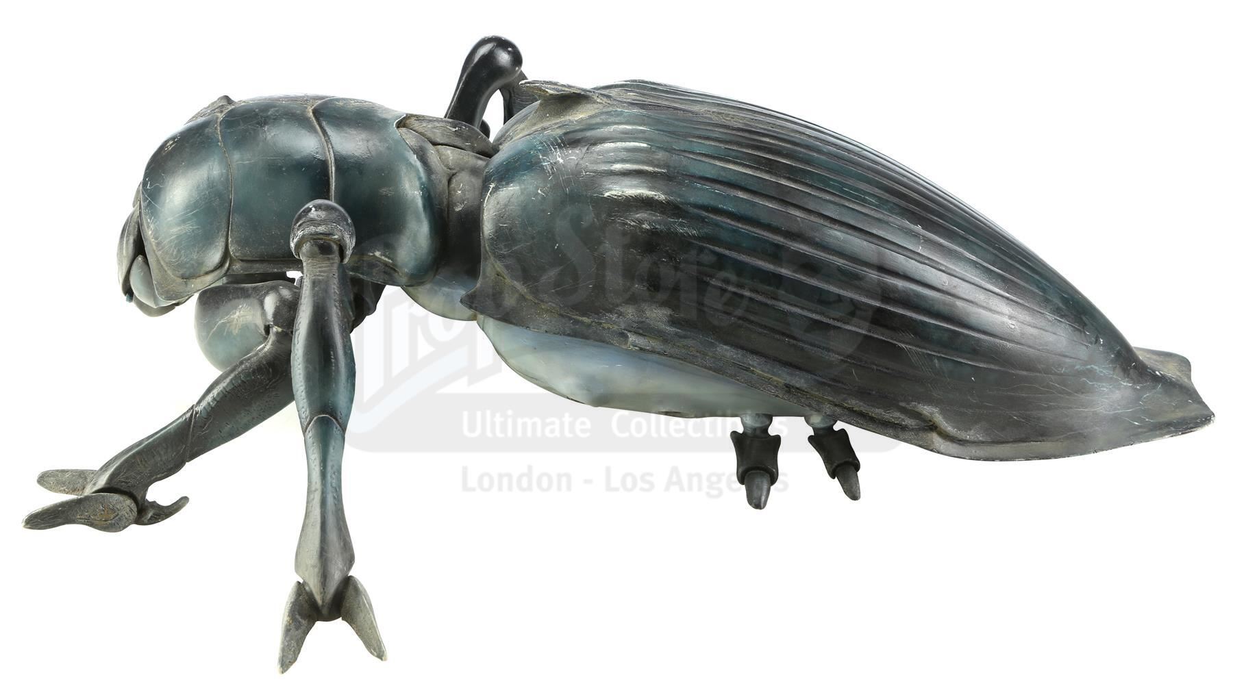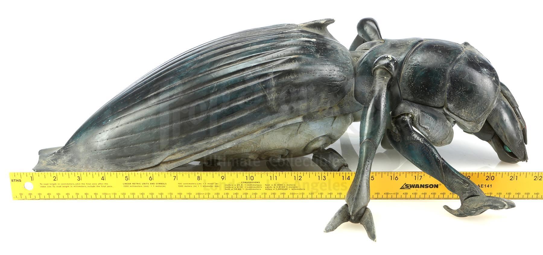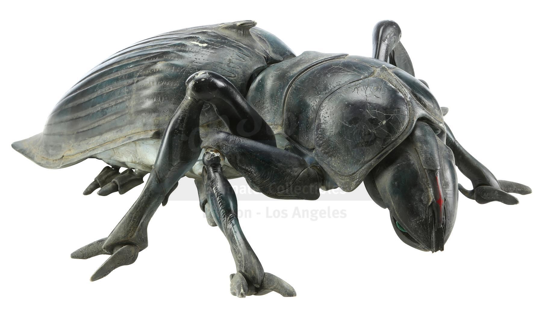 Tippett Studio created maquettes of the film's various bugs as a three-dimensional representation of the creatures that were largely digitally animated; they were tools for shot planning, lighting reference, and other purposes. Phil Tippett is credited as Creature Visual Effects Supervisor for the film and was nominated for Best Visual Effects for his work on this film at the 70th Academy Awards. This Tanker Bug maquette was sculpted by Peter Konig and is cast in resin with articulating joints. Maquettes were used in the conceptual stages of production as well as during filming to give scale and as a reference for lighting on set. It is in good overall condition with wear from use, such as scratches and paint chipping throughout, one loose leg and one leg which has separated at the first joint. Includes a letter of authenticity from Phil Tippett.