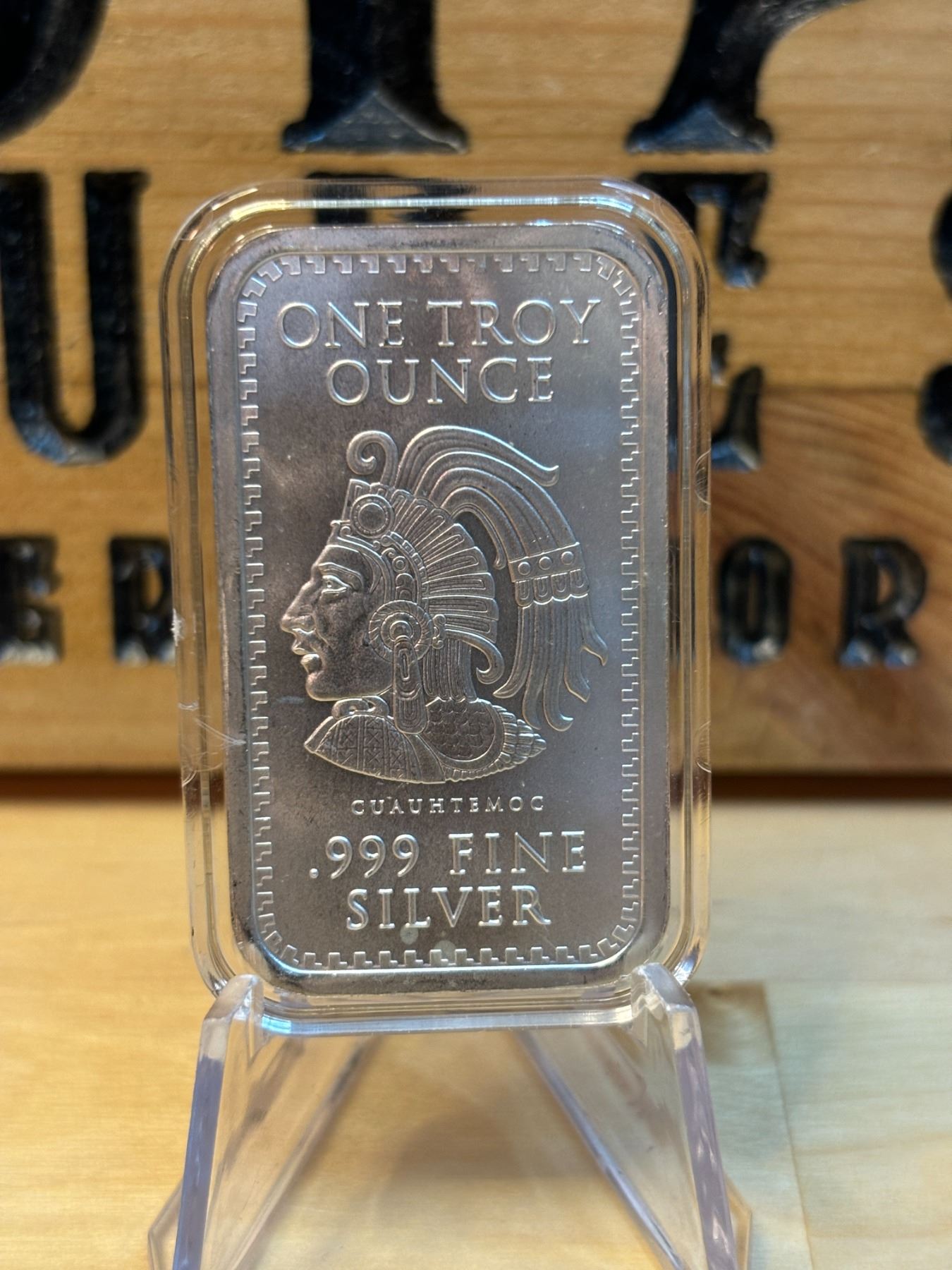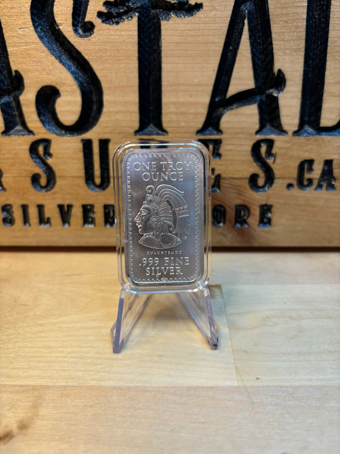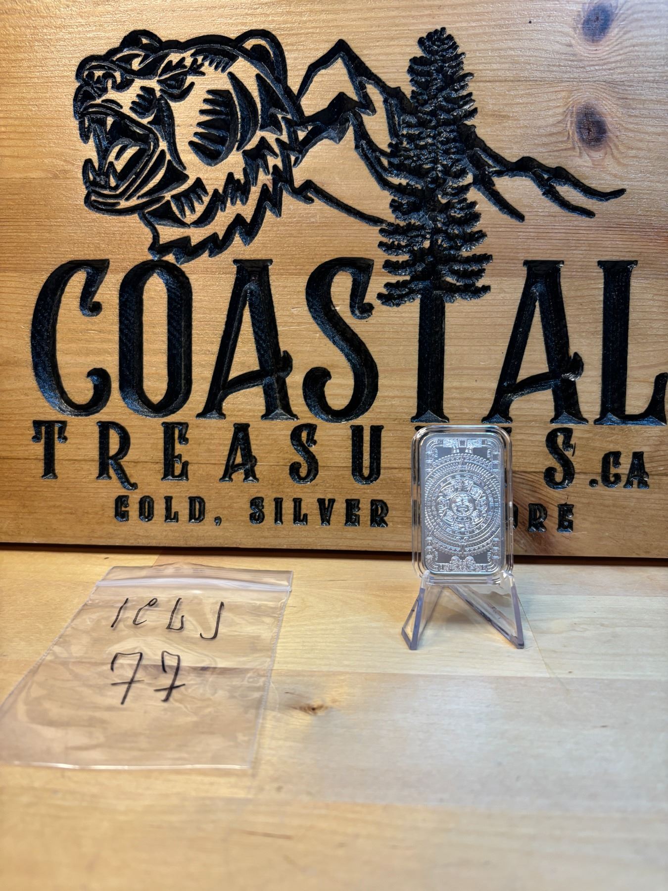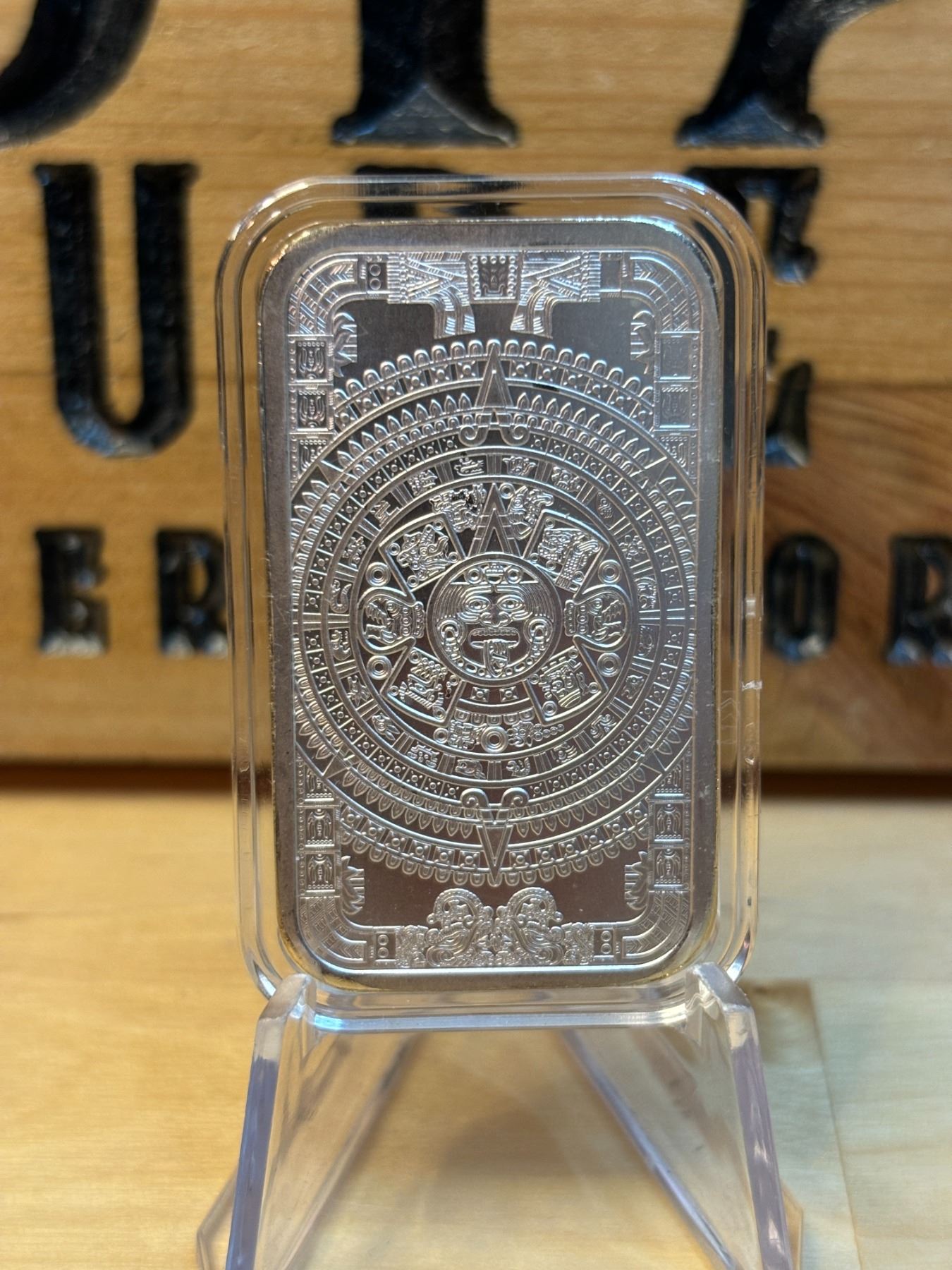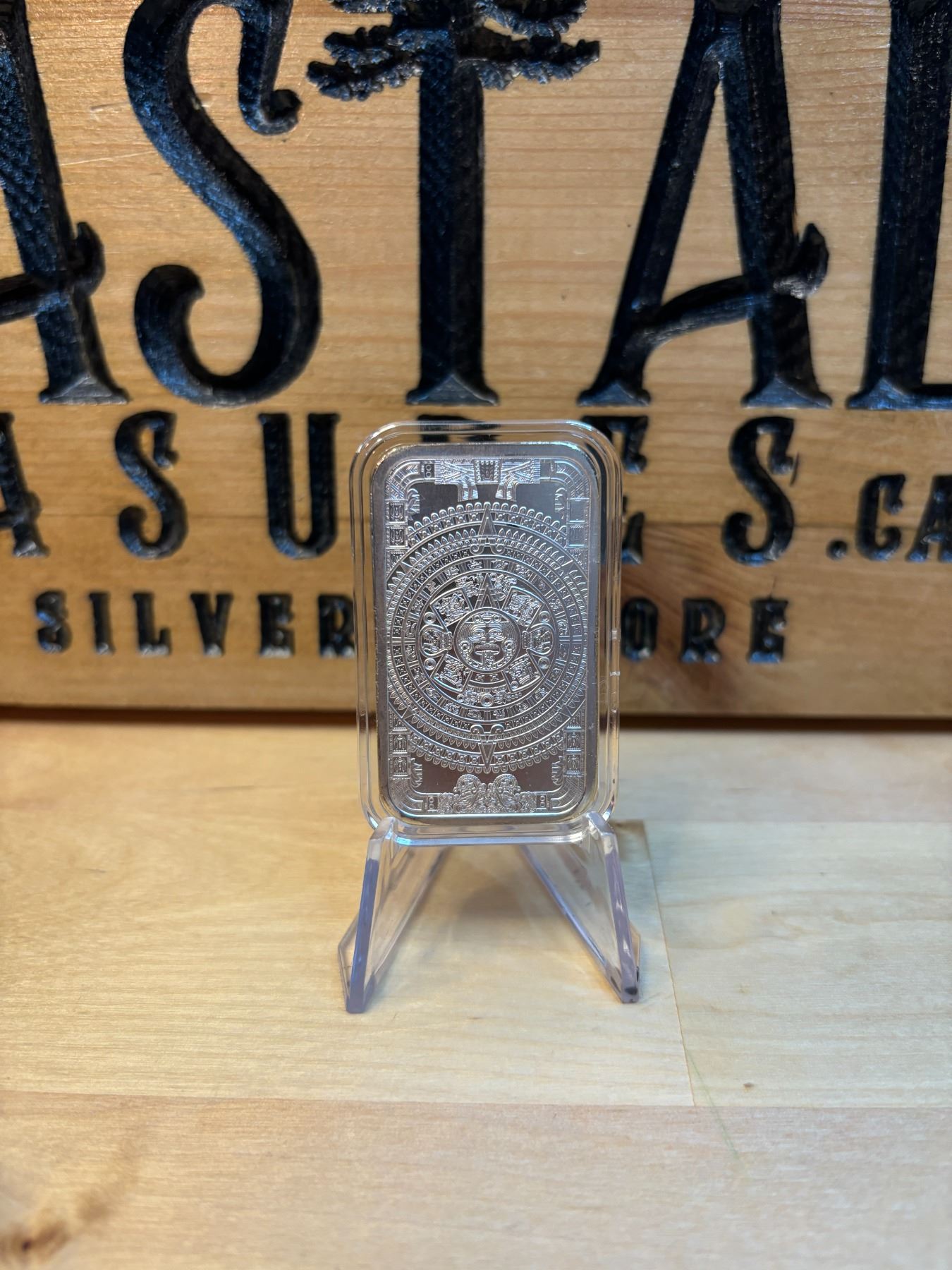 The 1 oz Aztec Calendar Silver Bar is a bullion bar that contains 1 ounce of .999 fine silver. It features a design based on the famous Aztec calendar stone, also known as the Sun Stone, which is a symbol of the Aztec civilization and represents the ancient Mesoamerican understanding of time and cosmology. The bar’s value is based on the silver content, but it may also carry a premium due to its intricate design, cultural significance, and appeal to collectors interested in ancient history or Mesoamerican art.