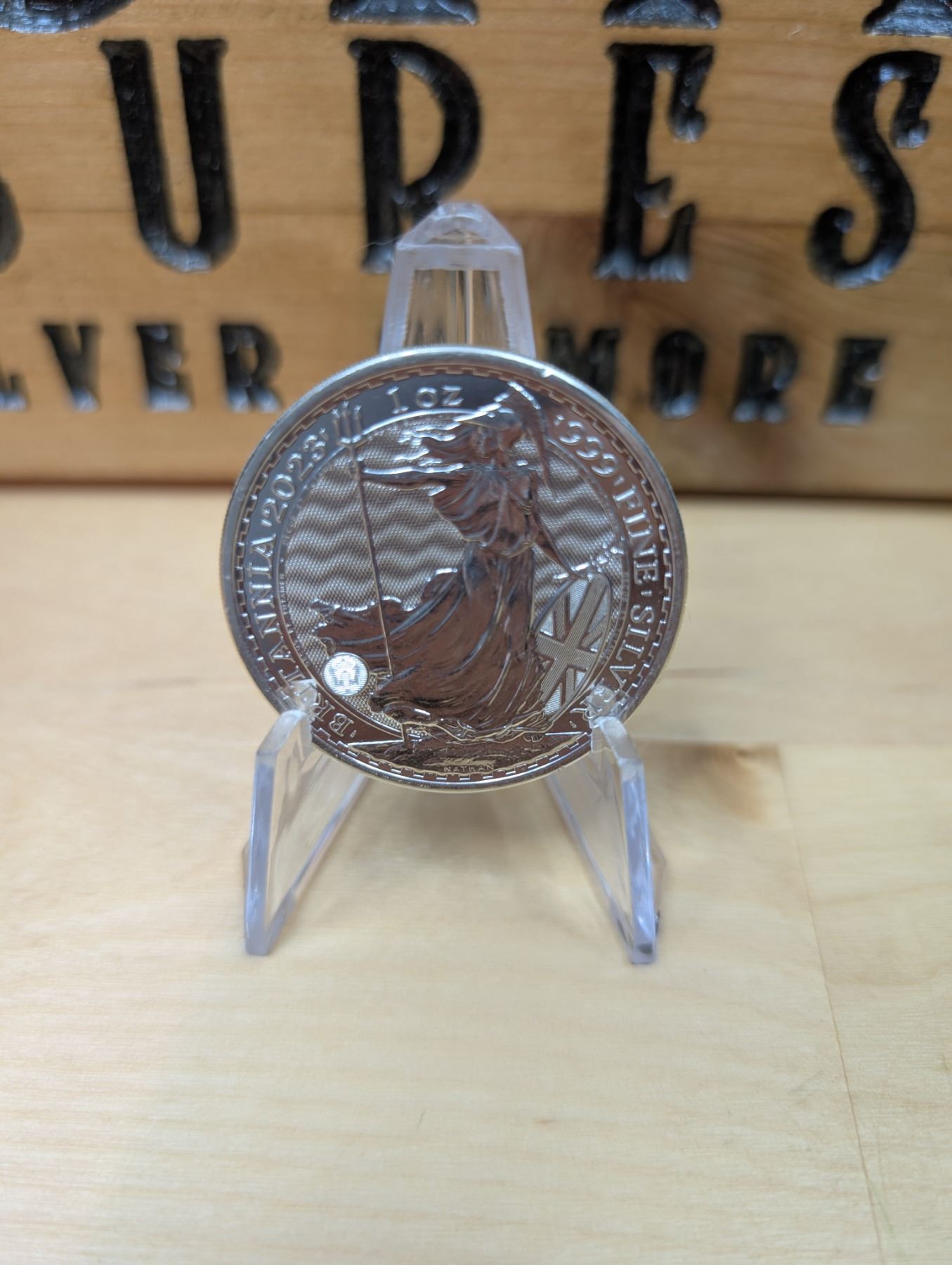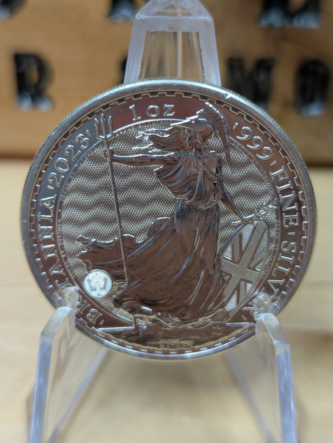 The 1 oz Britannia 2023 Silver Coin is part of the popular Britannia series, produced by the Royal Mint. It contains 1 ounce of .999 fine silver and features the iconic image of Britannia, symbolizing strength and resilience. The 2023 edition features an updated design with enhanced security features, such as a new background wave pattern and a holographic foil that changes in the light, making it more difficult to counterfeit. The coin is widely sought after by collectors and investors alike.