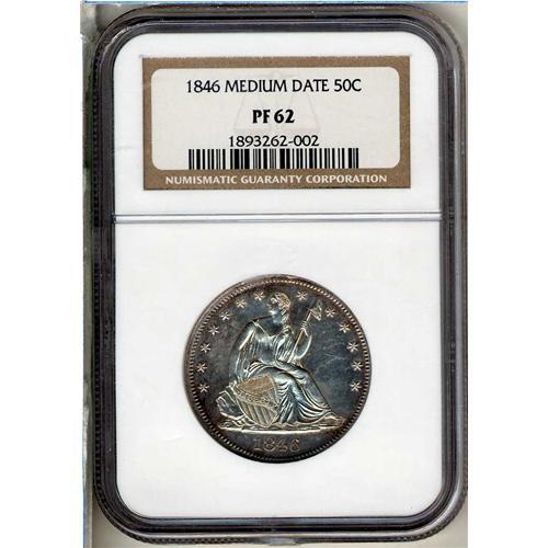 Lot 779 - 1846 Liberty Seated Half Dollar. Medium date NGC PF 62