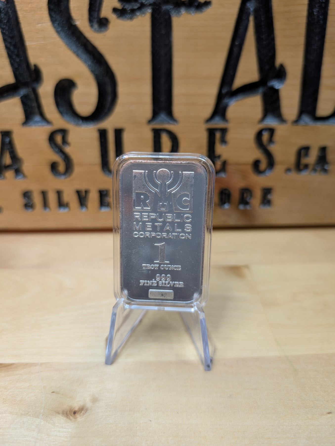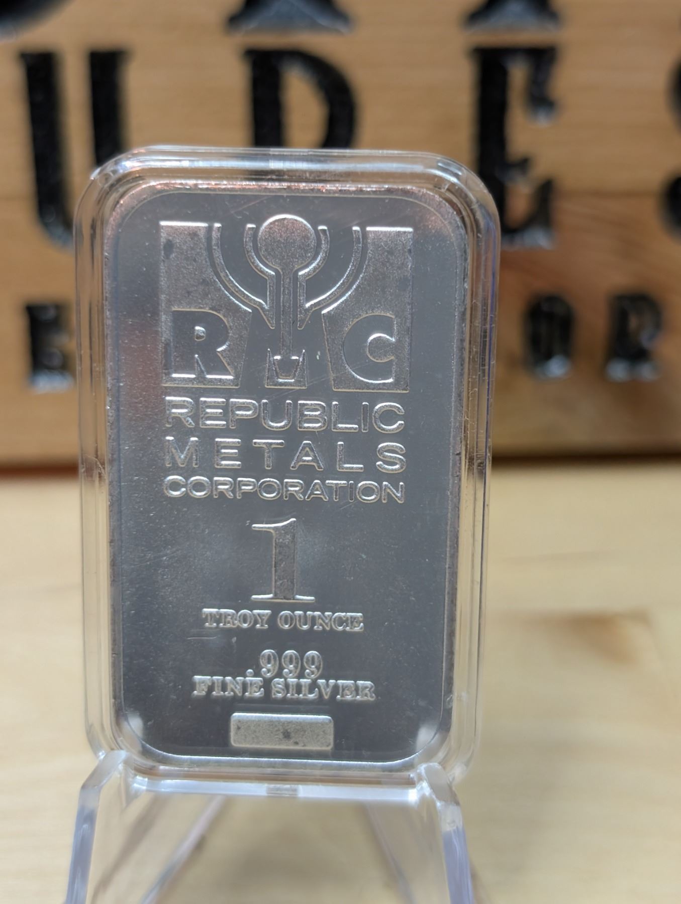 The 1 oz RMC Silver Bar is a silver bar produced by Republic Metals Corporation (RMC), a well-known private mint. It contains 1 ounce of .999 fine silver and typically features the RMC logo, along with weight, purity, and other markings. These silver bars are recognized for their high-quality silver content and clean, simple design, making them popular among both investors and collectors. RMC bars are valued for their reliability and are often chosen for their ease of storage and stackability.