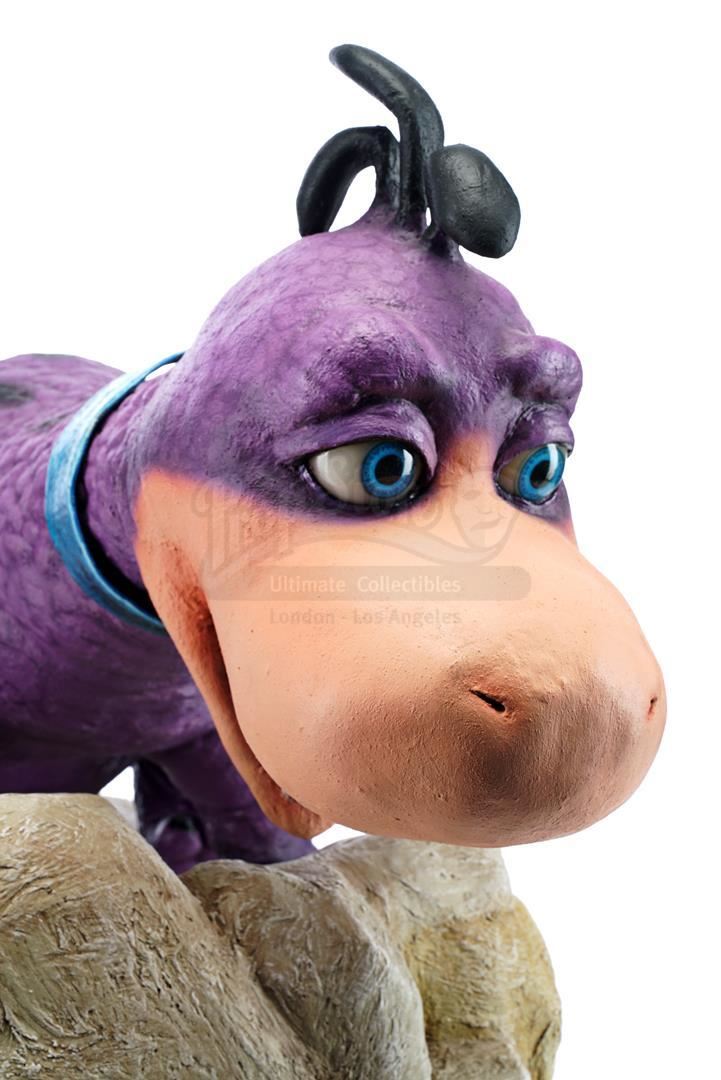 This lot will be auctioned on Tuesday, June 29th. The auction will begin at 9:00am PDT and lots are sold sequentially via live auctioneer; tune in to the live streaming broadcast on auction day to follow the pace. Note other lots in the auction may close on June 30th or July 1st. A puppy Dino (Mel Blanc) puppet from Brian Levant's family comedy sequel The Flintstones in Viva Rock Vegas. Dino, the Flintstones' lovable purple dinosaur, was brought to life with a combination of CGI, animatronic puppetry, and archival sounds. This static foam puppet was created for insert shots and hand-painted in Dino's signature purple with a blue collar, three black hairs, a flesh-color snout, and black spots by Jim Henson's Creature Shop. The puppet is bolted to a dense foam display base labeled "The Flintstones" and painted to appear made of stone. The lot is in good overall condition with a large chunk torn from the base and minor scuffs throughout. Dimensions: 40" x 14" x 26" (101.75 cm x 35.75 cm x 66 cm) Estimate: $4,000 - 6,000