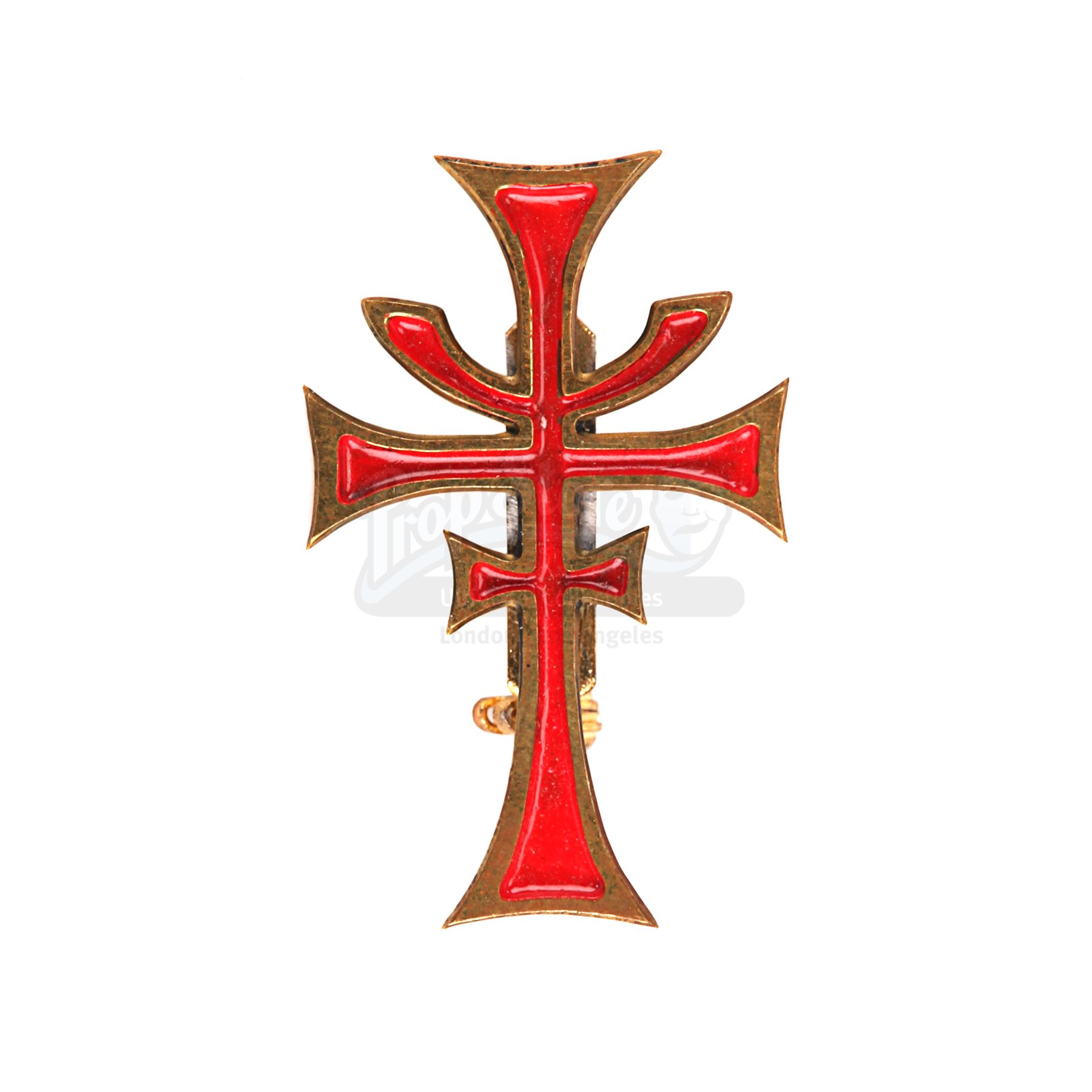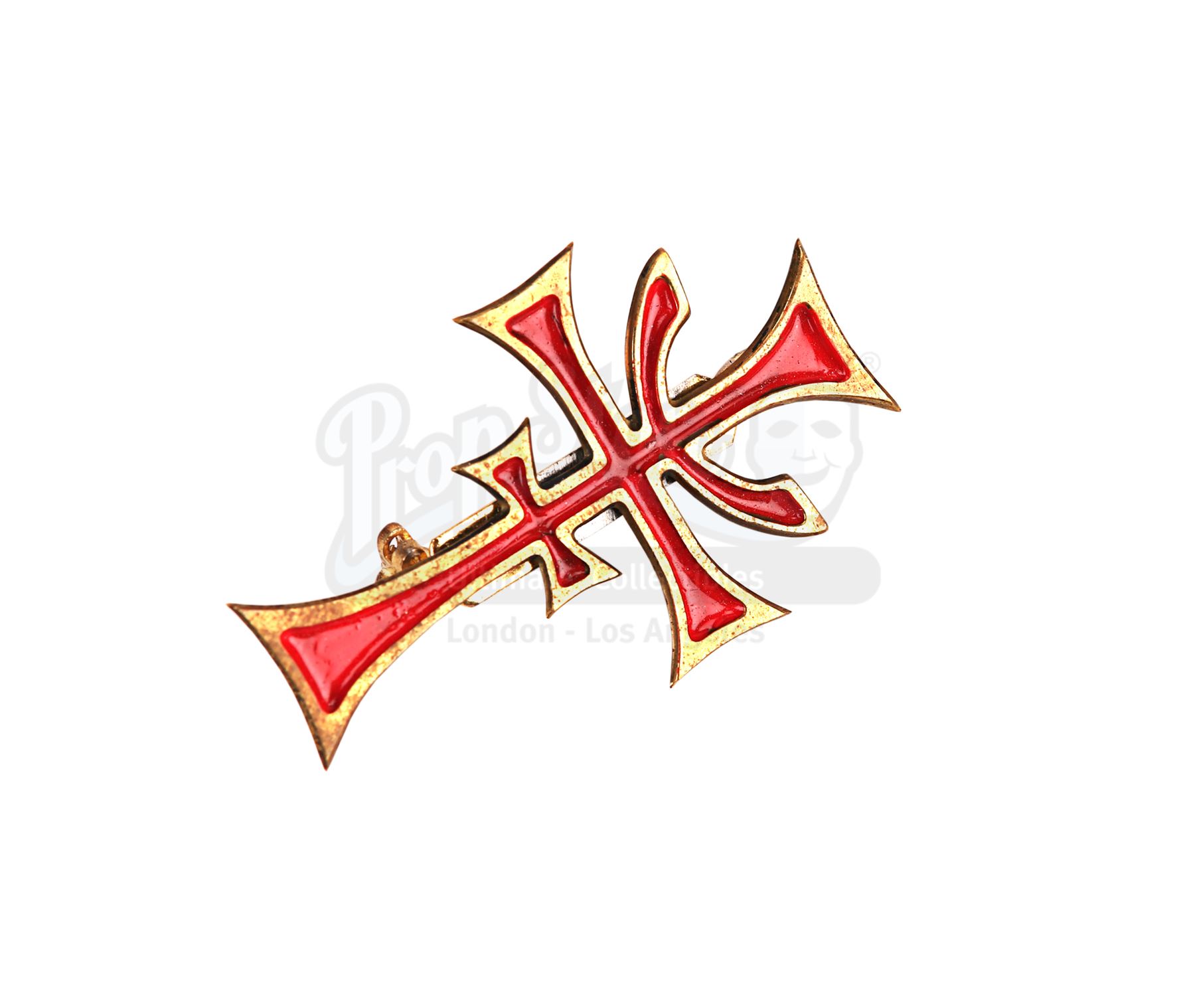 This lot will be auctioned on Wednesday, June 30th. The auction will begin at 9:00am PDT and lots are sold sequentially via live auctioneer; tune in to the live streaming broadcast on auction day to follow the pace. Note other lots in the auction may close on June 29th or July 1st. A Brotherhood of the Cruciform Sword cross pin from Steven Spielberg's action-adventure sequel Indiana Jones and the Last Crusade. The Brotherhood were devoted to protecting the Holy Grail, and members had the group's cross symbol tattooed on their chests. This lot comes from the collection of renowned propman Joe Dipple and was made for the production but ultimately not seen in the film's final cut. The pin is made from metal, with the majority of the front painted red. It is in excellent overall condition with minimal signs of wear. Dimensions: 1.5" x 1" x 0.5" (4 cm x 2.5 cm x 1 cm) Estimate: $600 - 800