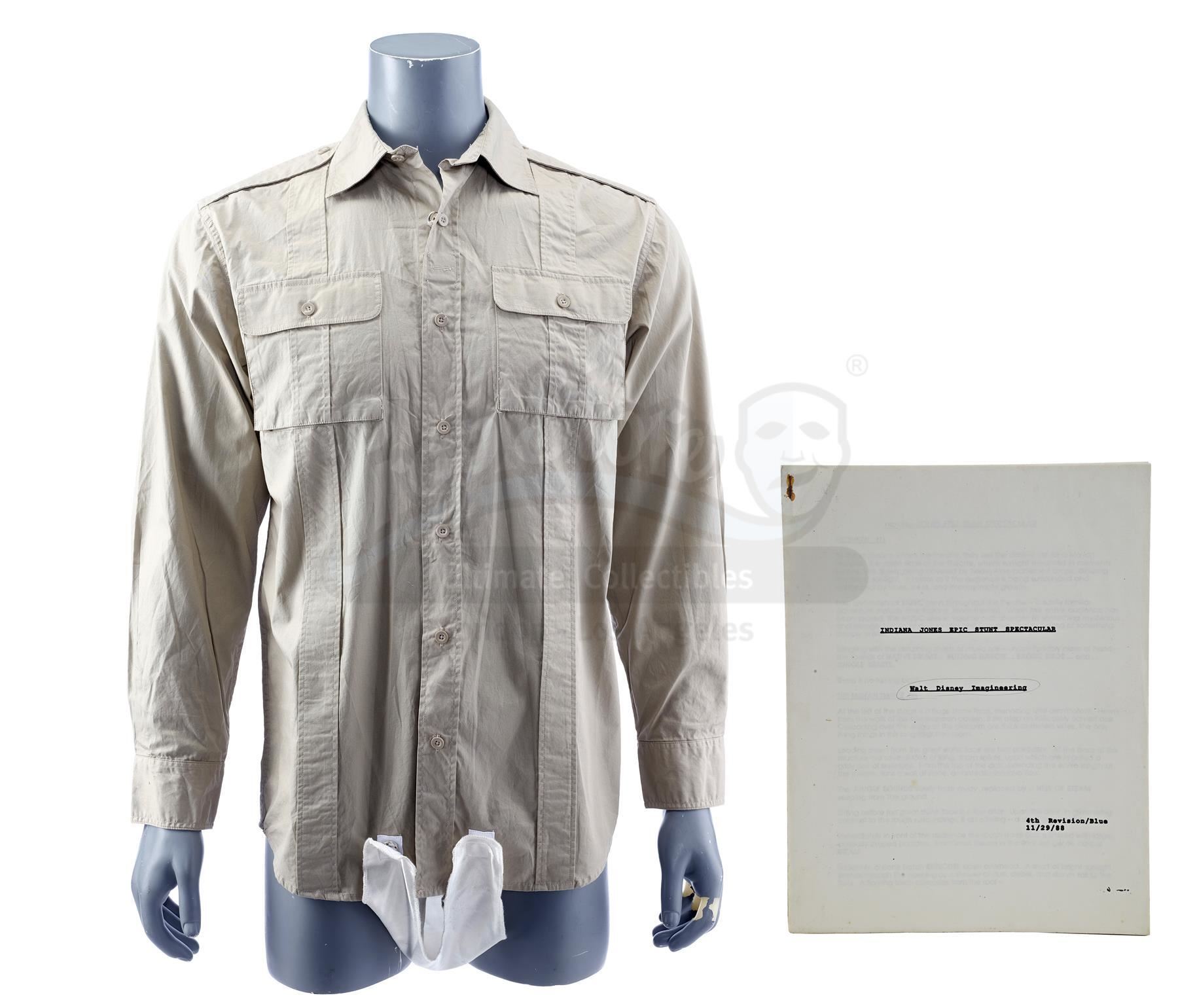 Lot # 785: INDIANA JONES EPIC STUNT SPECTACULAR! (1989) - Indiana Jones Shirt and Script