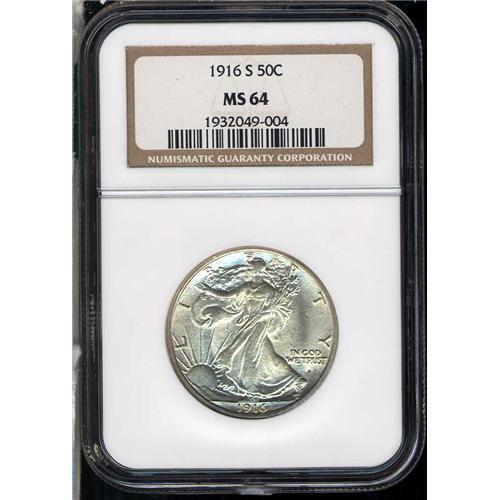 Lot 790 - 1916-S Liberty Walking Half Dollar NGC MS64