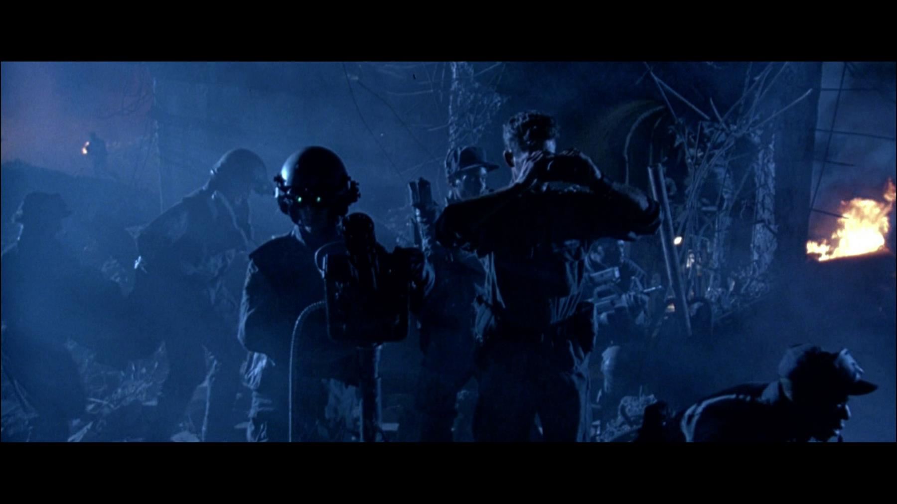 A Resistance soldier combat uniform with a helmet and weapon from James Cameron's sci-fi action sequel Terminator 2: Judgment Day. In the year 2029, Resistance soldiers battled against Skynet's machines in the rubble of post-Judgment Day Los Angeles.