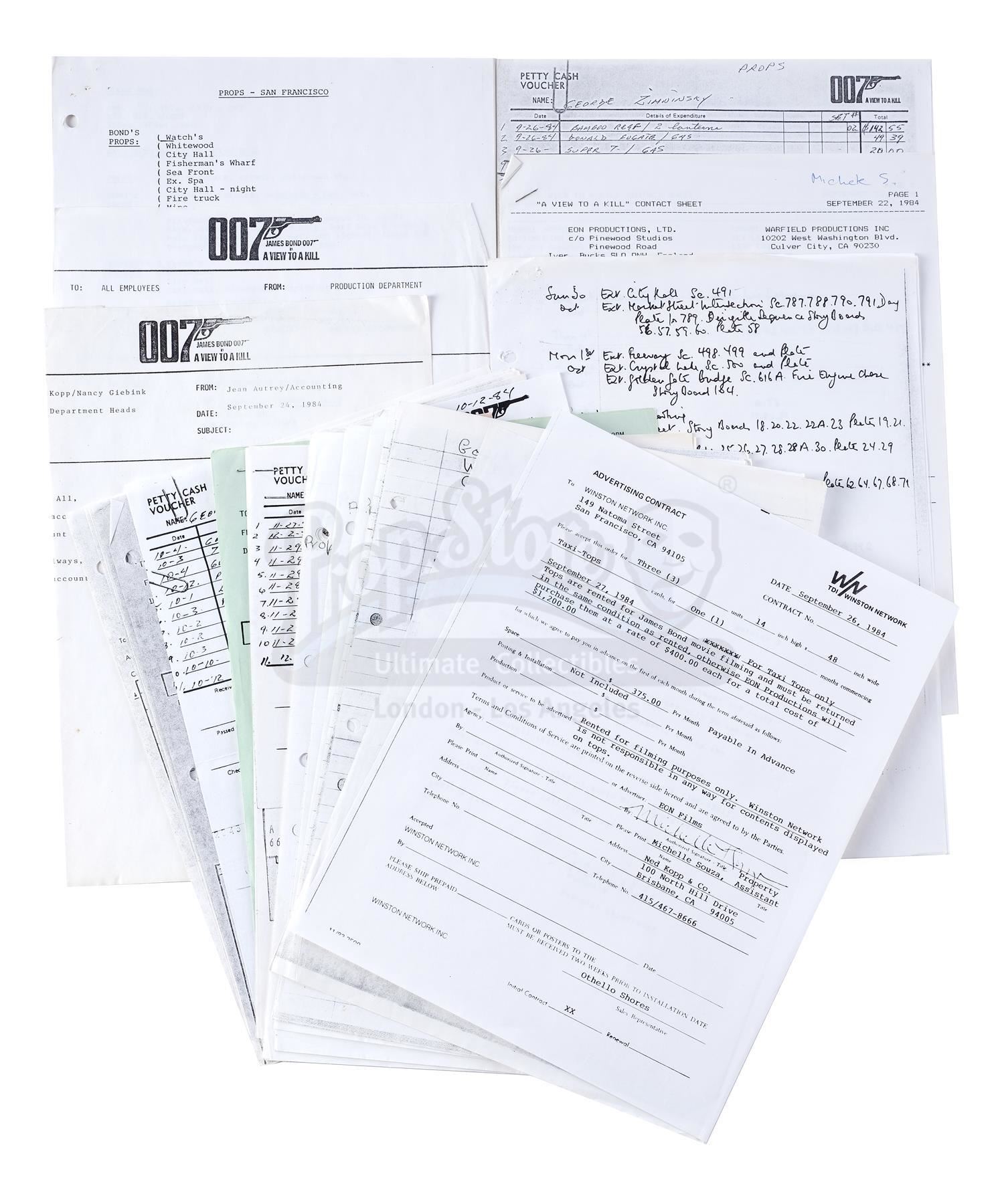Lot # 791: JAMES BOND: A VIEW TO A KILL (1985) - Production-Used Script, Call Sheets, Production Pap