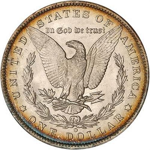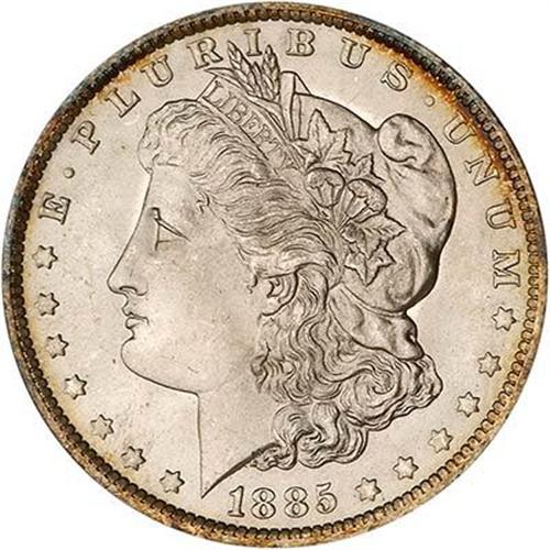 1885-O Morgan Dollar. A sharply struck Gem that has radiant snow white originality with a thin ring of lovely warm golden toning at the edge. Given the proper amount of strike pressure, the coin would have been even more fully brought up by the dies. However, there is just one soft area that is often encountered on this O-mint date, the topmost hair strands on Liberty. Otherwise, every detail is bold. (#7162)<p><i>The Portia Collection of Silver Dollars</i>