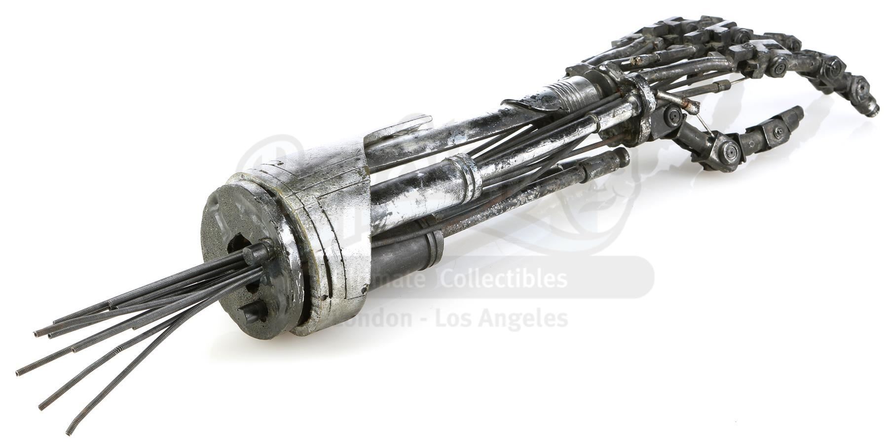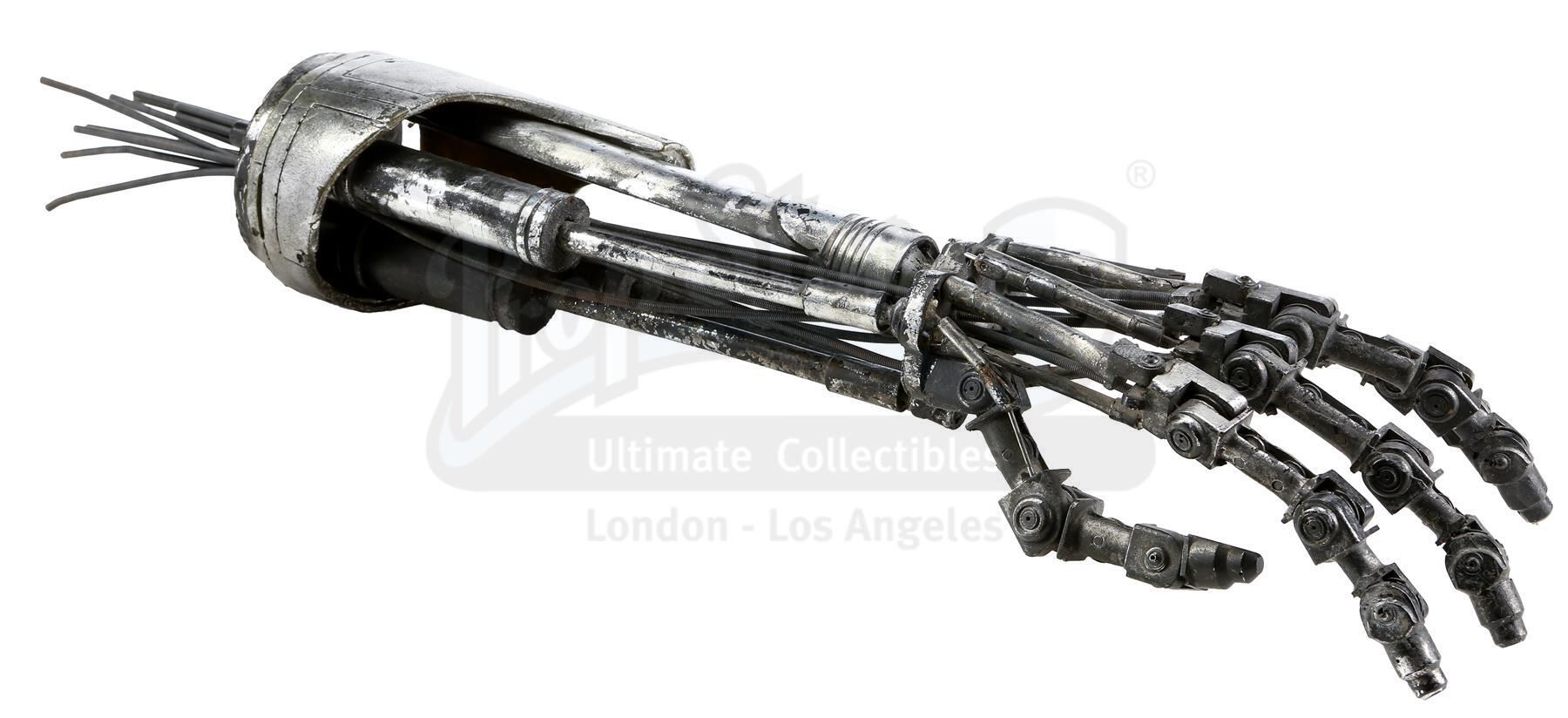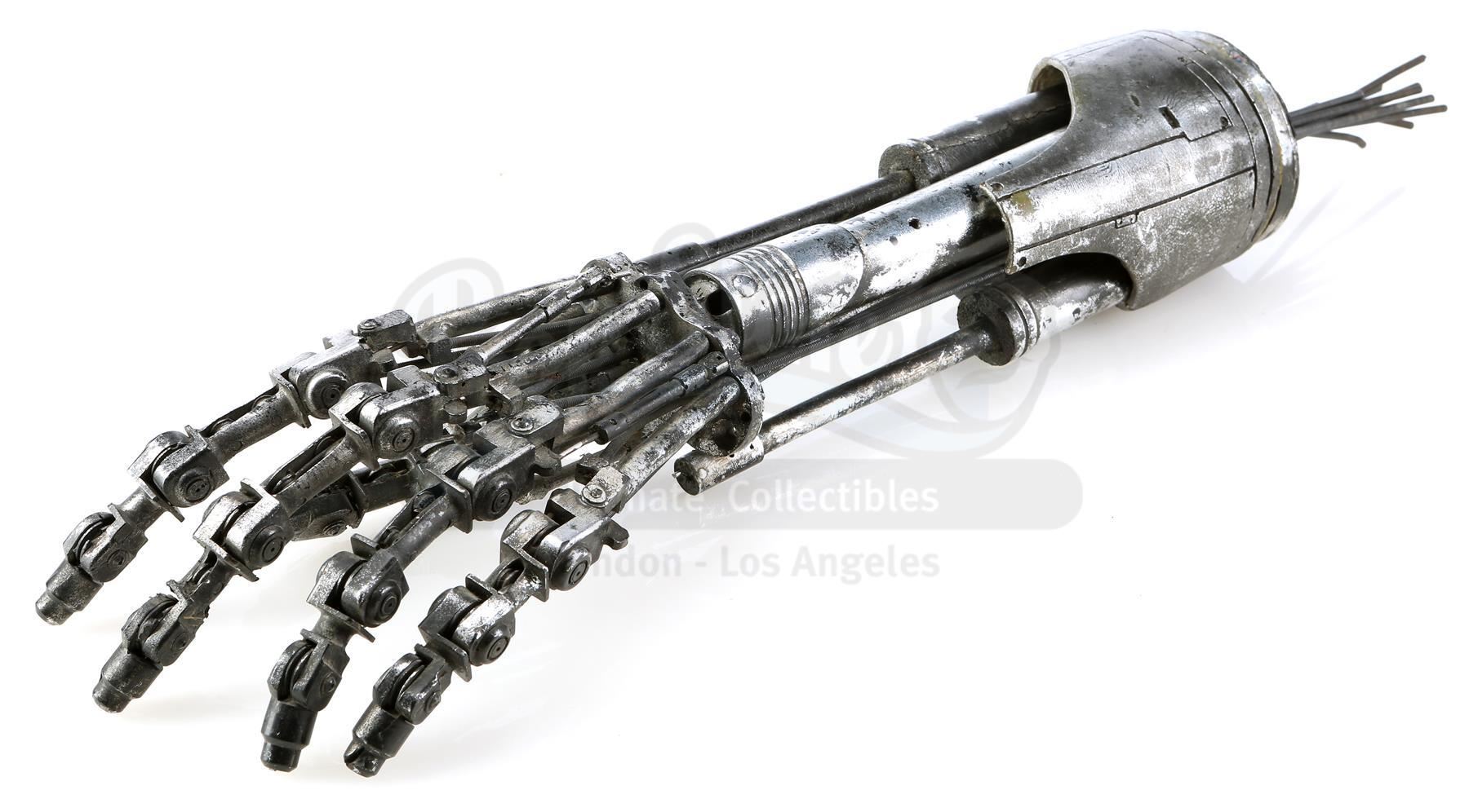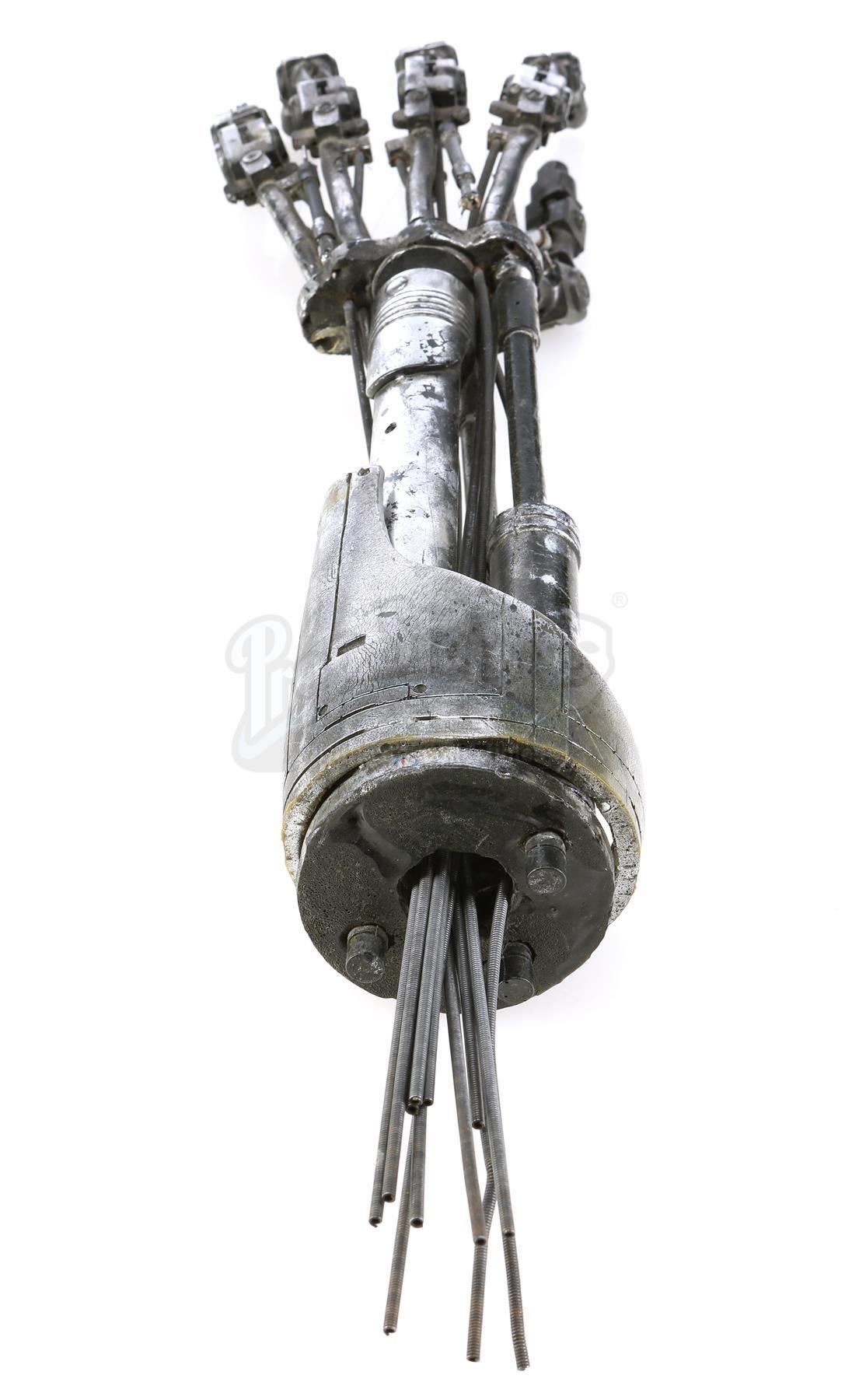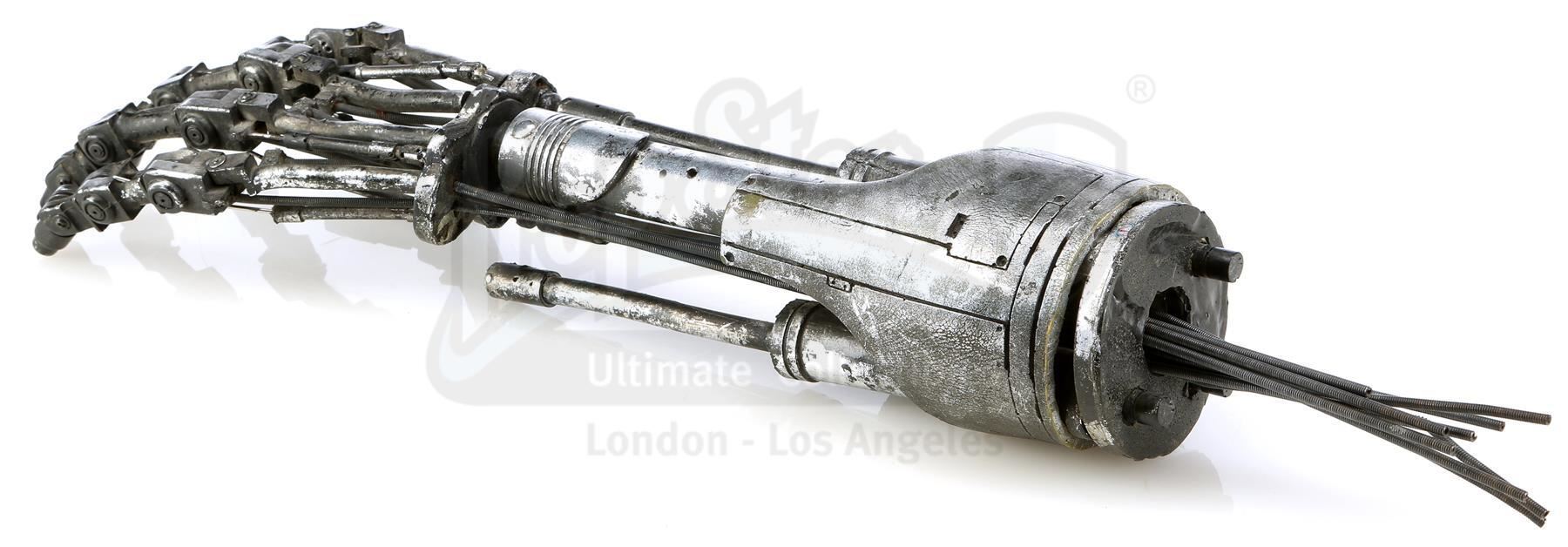 A T-800 endoskeleton arm from James Cameron's sci-fi action sequel Terminator 2: Judgment Day. In the year 2029, Skynet's T-800 Terminators worked to exterminate what remained of the human resistance in post-Judgment Day Los Angeles.