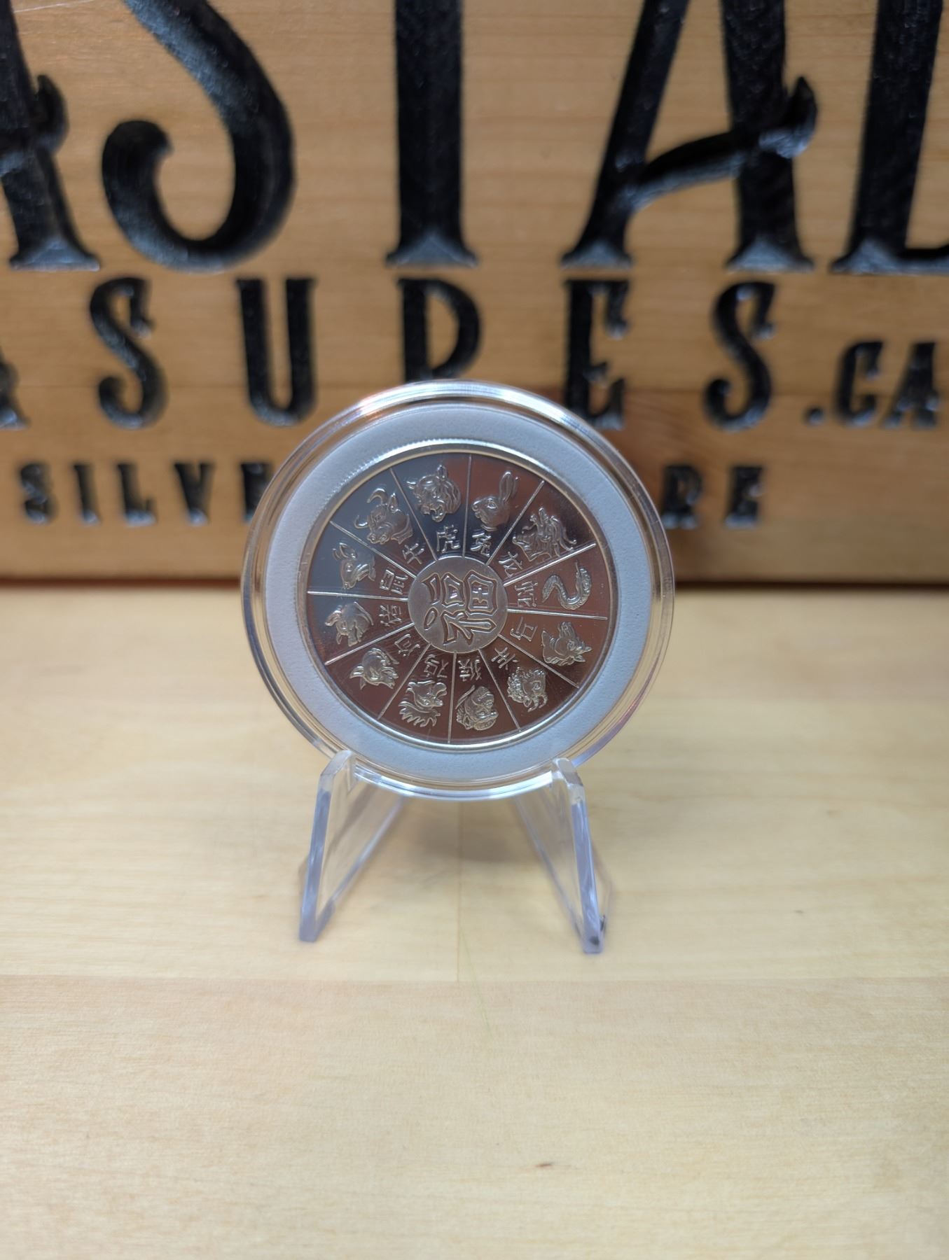 The 1 oz Aztec Calendar Year of the Dragon silver coin combines elements of the Aztec calendar and the Chinese Year of the Dragon. Made from .999 fine silver, it features intricate designs inspired by Aztec culture and the powerful symbolism of the dragon. This coin is popular among collectors due to its unique blend of two cultural motifs. The value is based on the current silver price and collector demand.