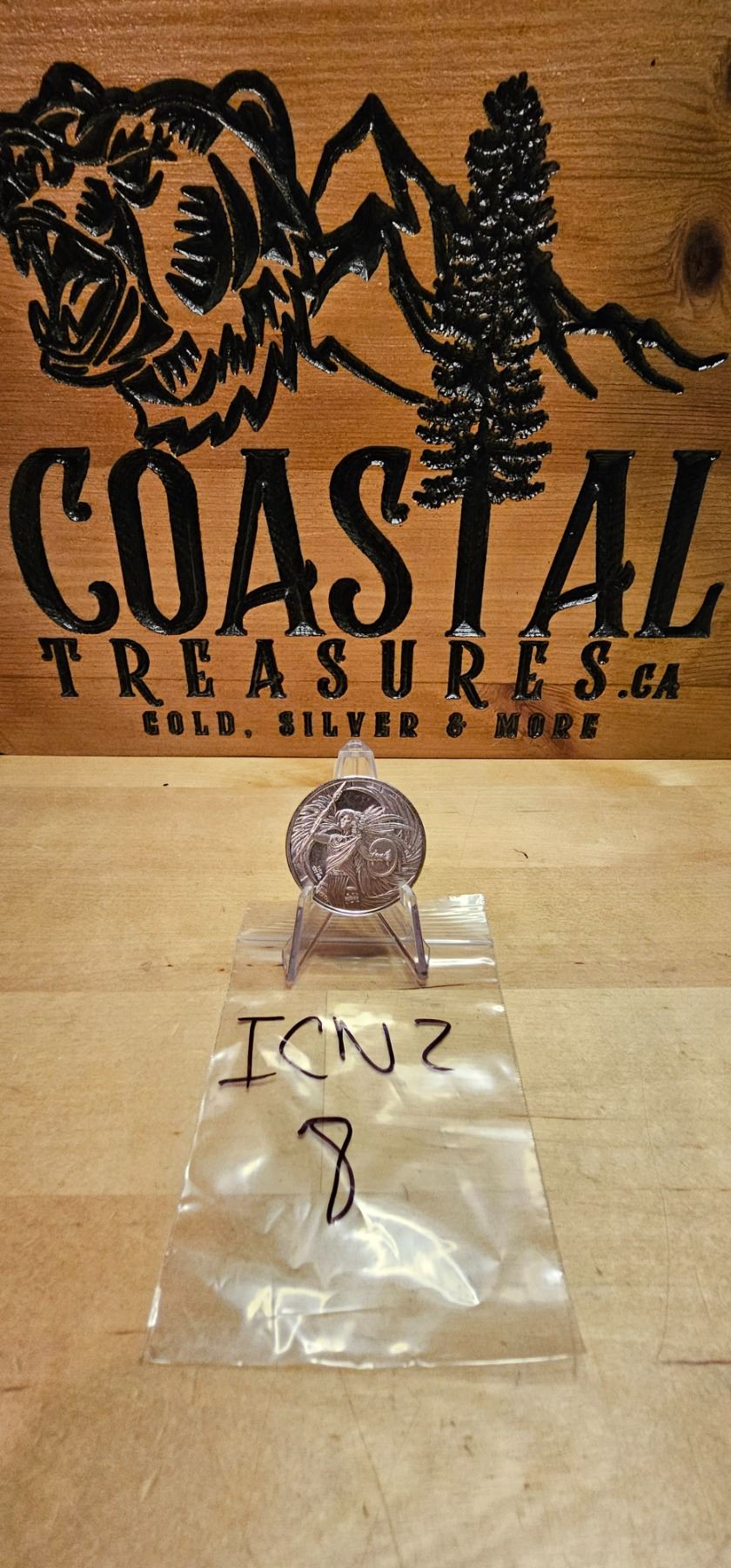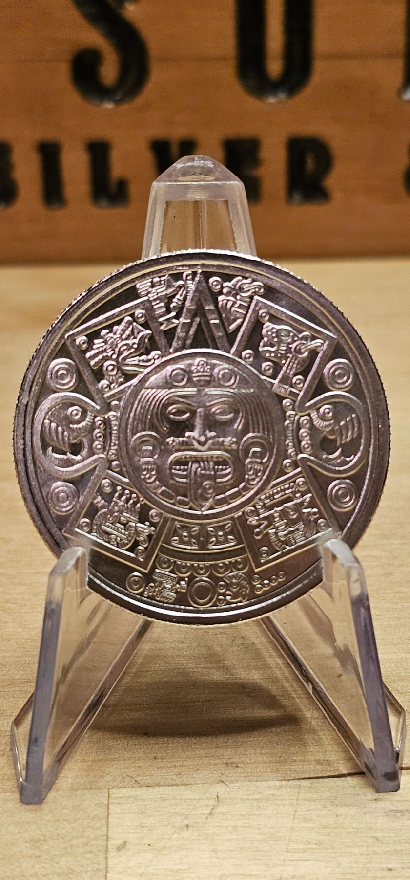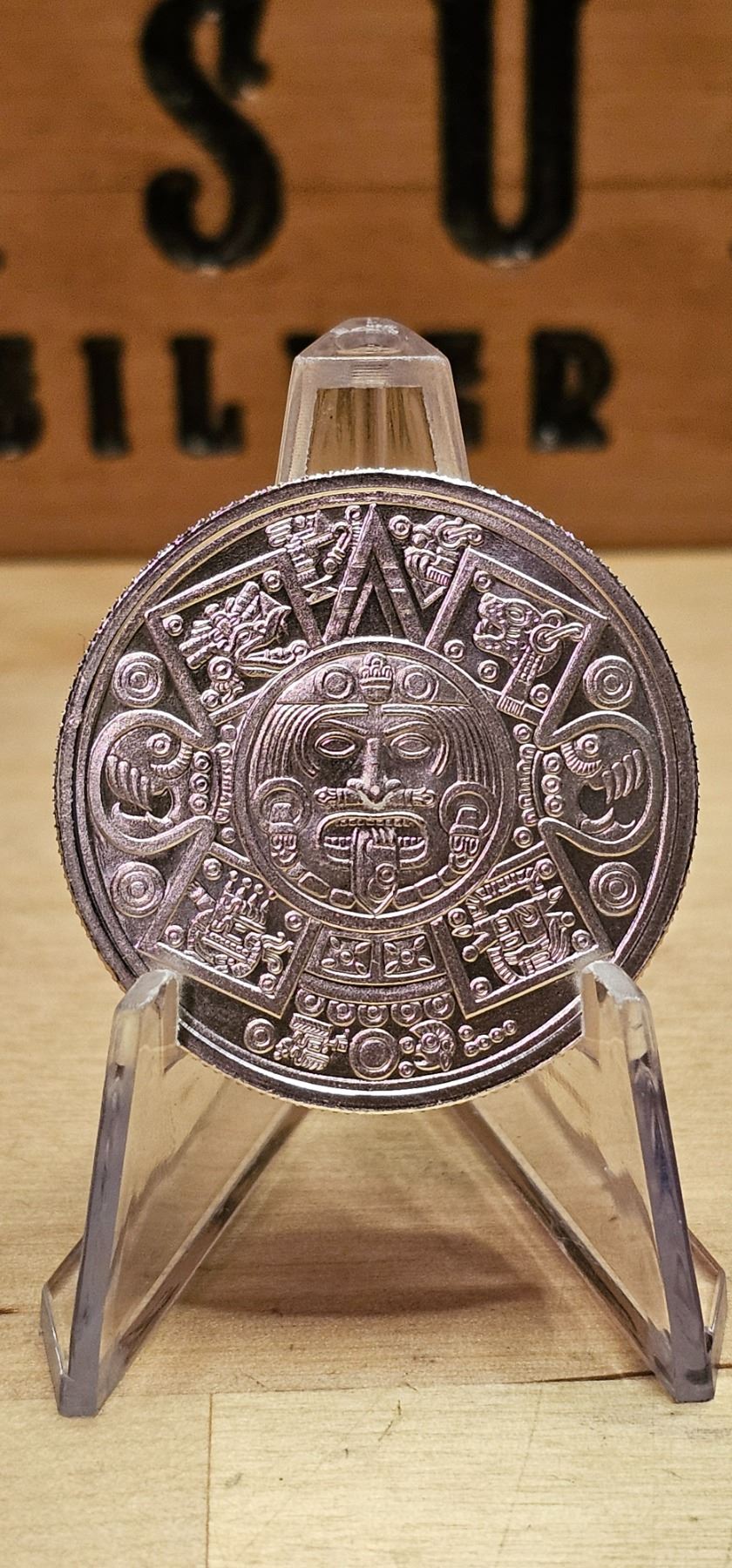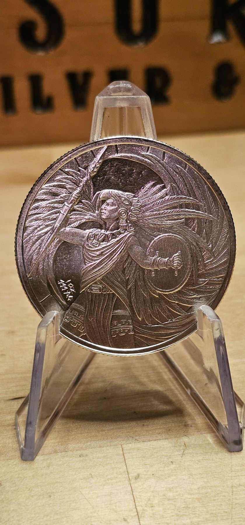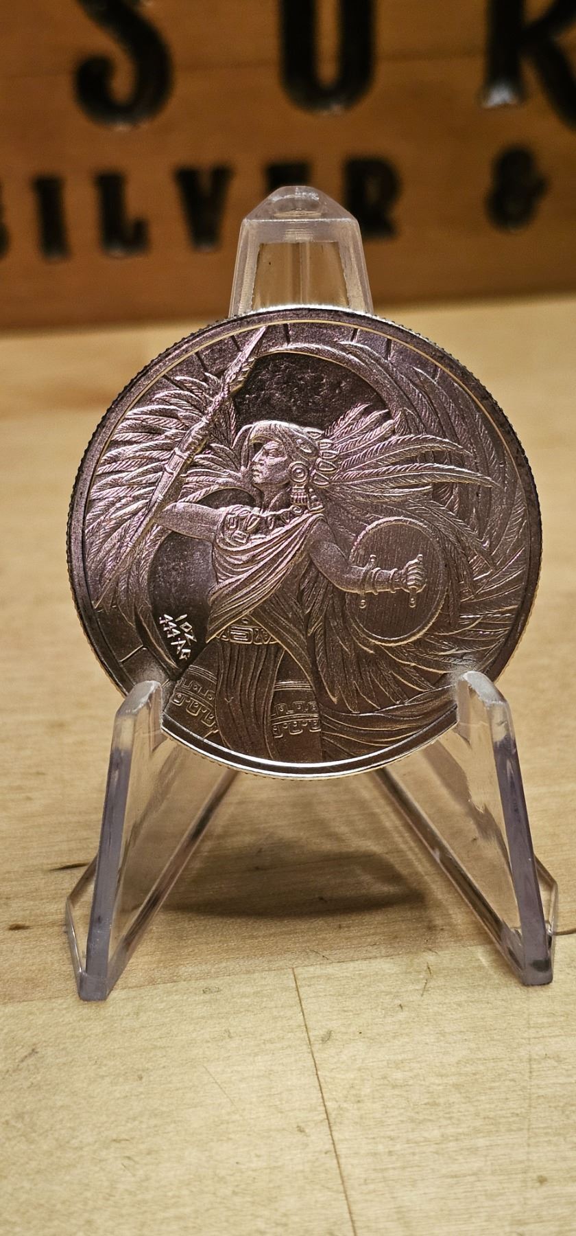The 1 oz Aztec Eagle Warrior Silver Round celebrates the bravery and artistry of ancient Aztec culture. Struck in .999 fine silver, it features a detailed depiction of an Eagle Warrior, a prestigious Aztec military figure adorned with elaborate feathered armor. The reverse often showcases the Aztec Sun Stone (Calendar), representing their advanced civilization. This round is a stunning tribute to Mesoamerican history, ideal for collectors and investors alike.