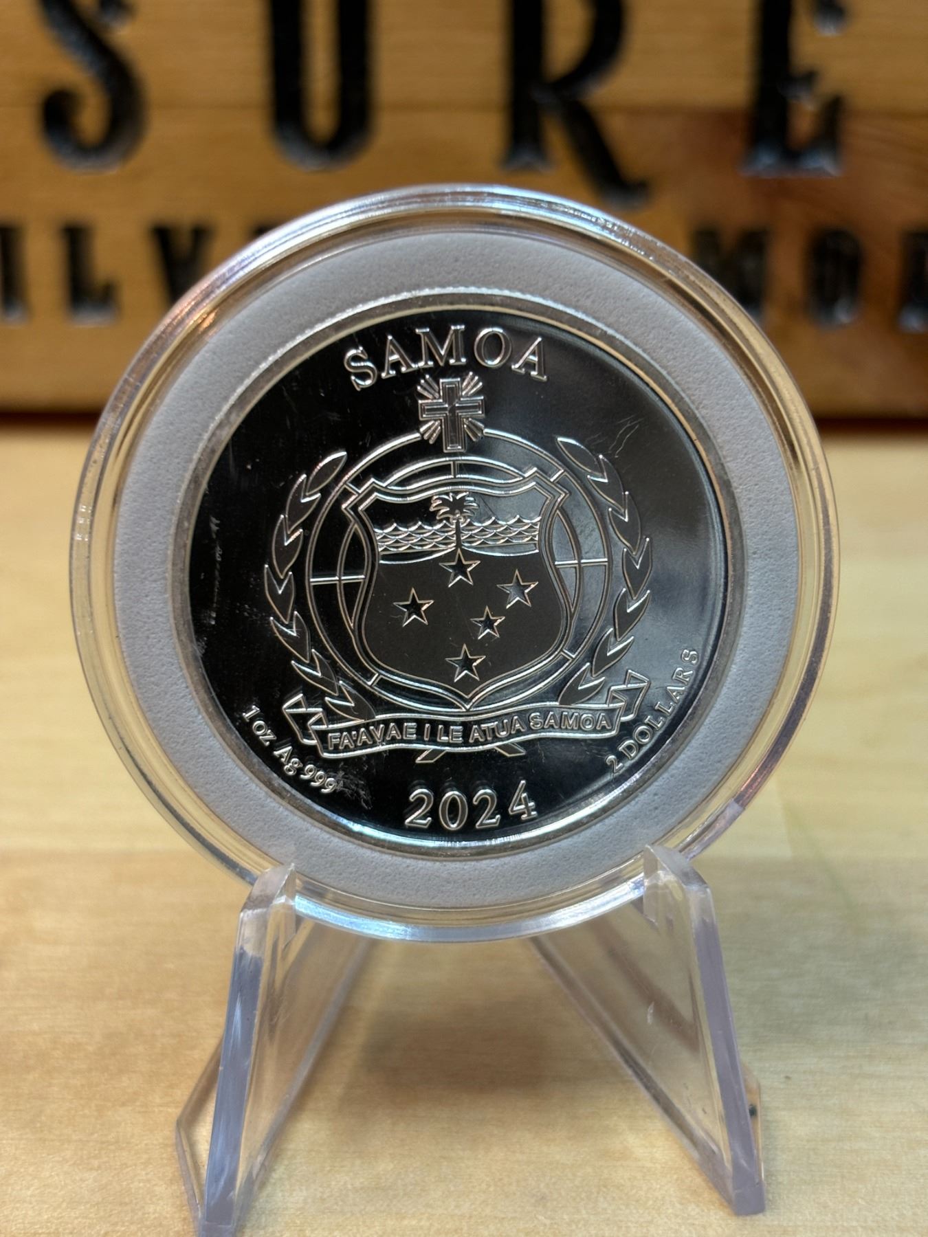 The 1 oz Samoa Street Fighter Silver Coin is a limited-edition collectible coin issued by the Pacific island nation of Samoa, featuring the iconic characters from the famous Street Fighter video game series. Made from 1 ounce of .999 fine silver, the coin showcases vibrant, high-quality designs based on the beloved characters or fighters from the game. The reverse often features a depiction of the character, while the obverse typically shows the the coin's denomination, and minting details. This coin is highly sought after by both Street Fighter fans and collectors, offering both cultural significance and investment value in silver.