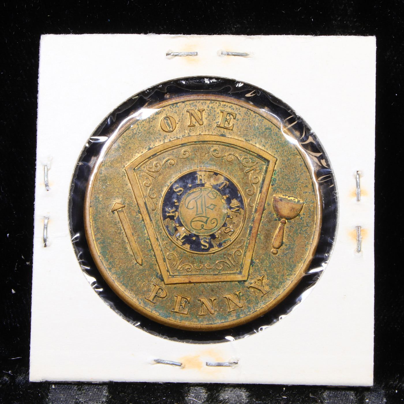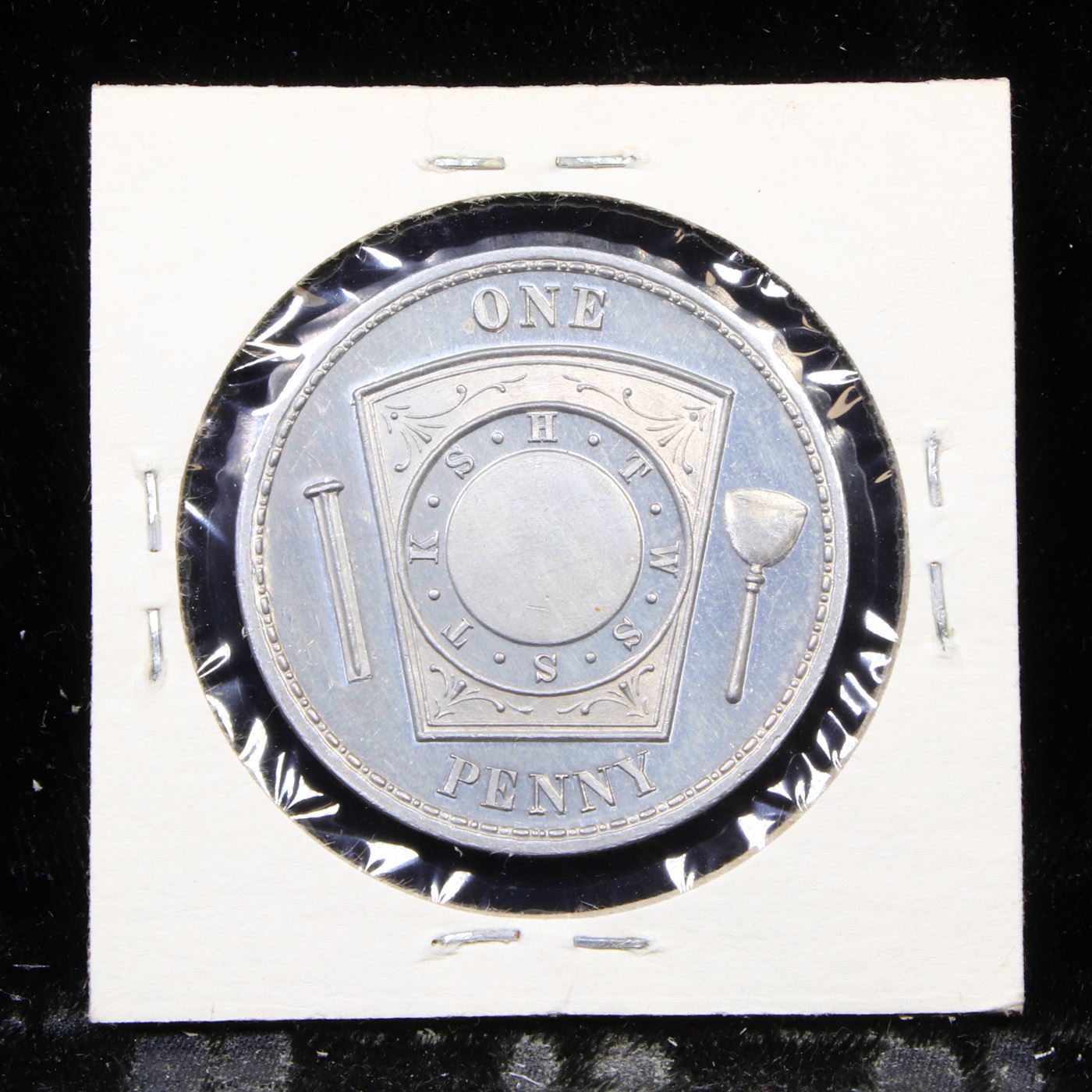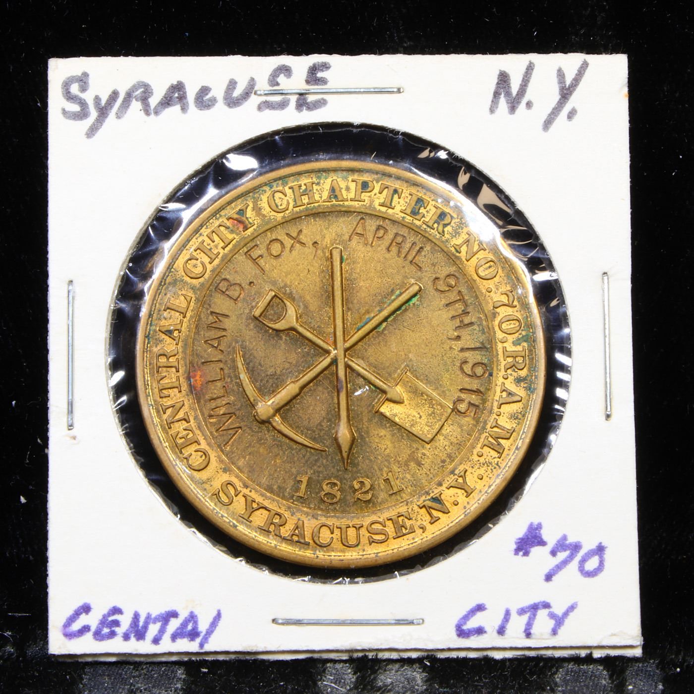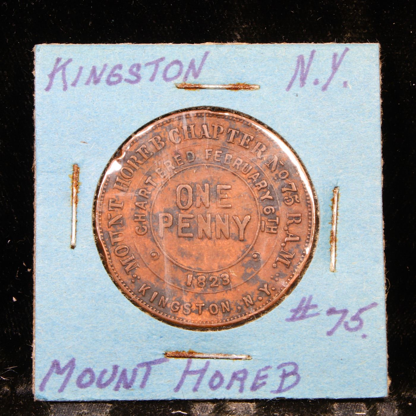 Lot #80 of the 450 Masonic Tokens from The Walter O. Collection. We Recently received a very Large Collection of 450 Masonic Tokens and coins. This collection was one man’s hobby for over 40 years. He collected each and every one with care and attention to detail and variety. Some of them are amazing and incredibly rare and highly sought by collectors and Masons. Here is a Brief Overview : Masonic coins often raise many questions for those looking to better understand the significance of the coins themselves as well as the symbolism represented in their imagery. In fraternal culture as a whole, symbolism has always been a significant part of these organizations’ identity, especially in Freemasonry, as Masonic coins are rich with symbolism, reflecting different events and characteristics of Freemasonry that give them the priceless value they hold. There are several varieties of masonic coins and tokens, and all tokens will fall into one of the following categories: a token celebrating a particular mason, lodge or event; an initiation token showing when a Brother was initiated, passed and raised; and finally the mark mason token (or penny) which signifies a pivotal part of a Mason’s initiation. Because symbolism was so important to fraternal culture, these small coins are rife with meaning. The most ubiquitous representation of the Masons was the letter "G" surrounded by a compass and square, representing the holy geometry of God. Some tokens feature the letters "H.T.W.S.S.T.K.S.," which means "Hiram the Widow's Son Sent to King Solomon," the biblical story that must be acted out to reach the third, or Master's Degree, in Freemasonry. Additionally, many contain either Apron and gloves: These symbols stand for living with a pure heart and to keep one’s hands clean. All-seeing eye: This symbol is designed to remind Masons that God and others always see their thoughts and actions. Ashlars: You may see rough and smooth ashlars on Masonic coins. They are to remind Masons of the contrast between man’s natural state and perfection and the Level: This symbol found on some Masonic coins reminds Masons that everyone is equal before God. We have broken the set up into groups of 5 Tokens in each lot. We have put 5 Lots per night over the 18 Nights of the Spring Auctions.