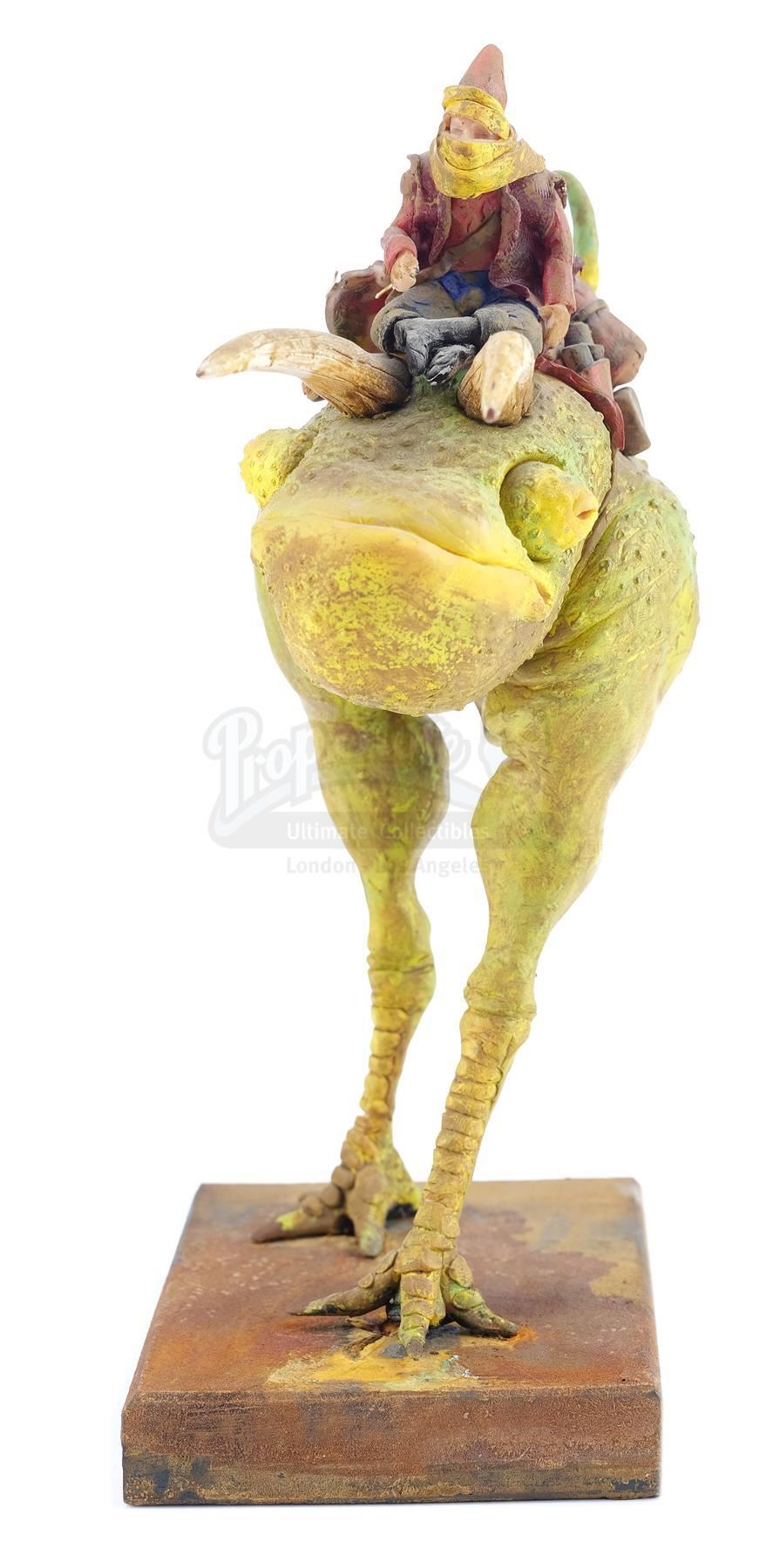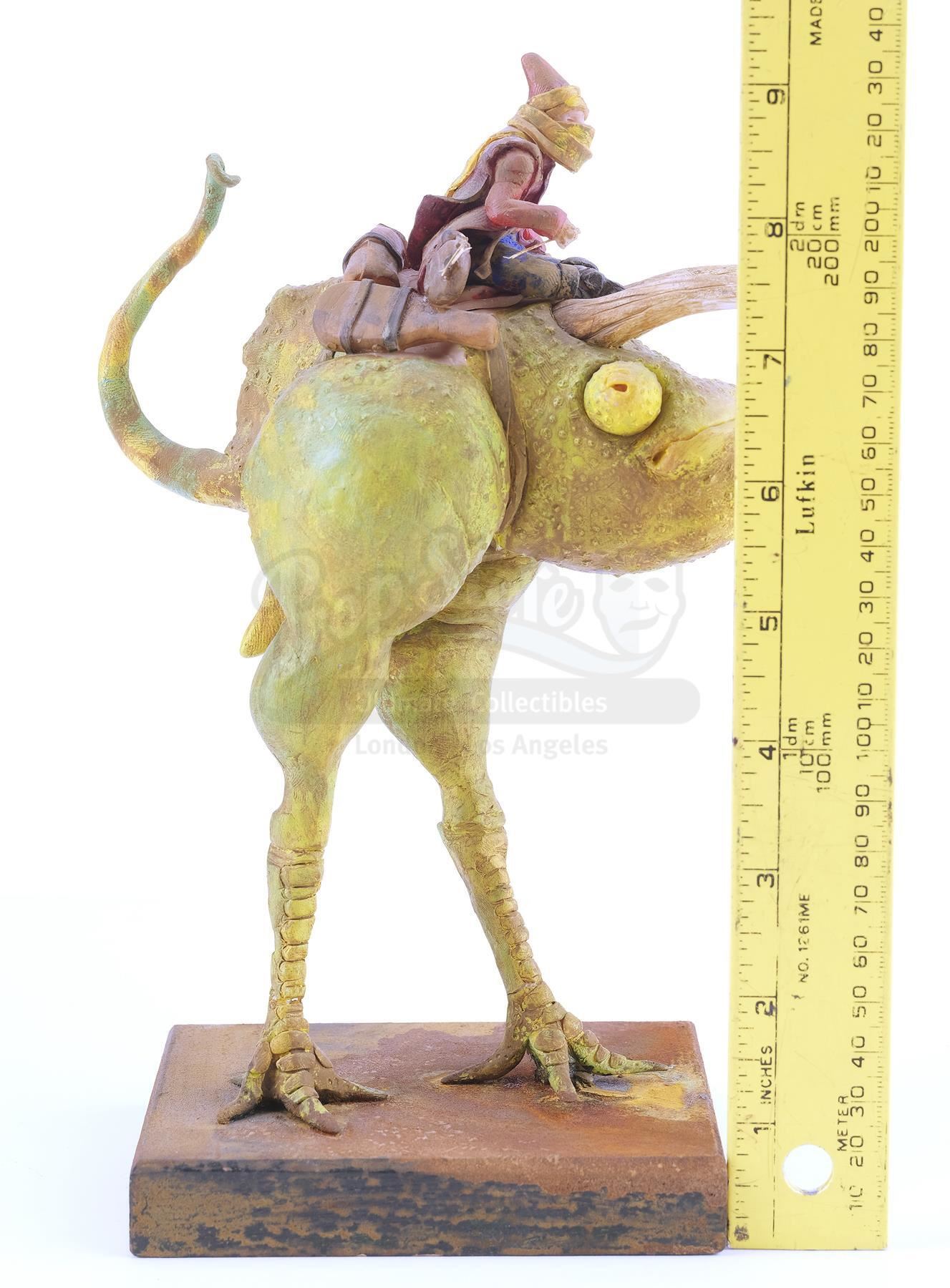 A Rider on Green Beast maquette from a personal project of award-winning visual effects artist Phil Tippett. This maquette depicting a masked rider atop an otherworldly, two-legged green beast comes from Tippett's personal collection.