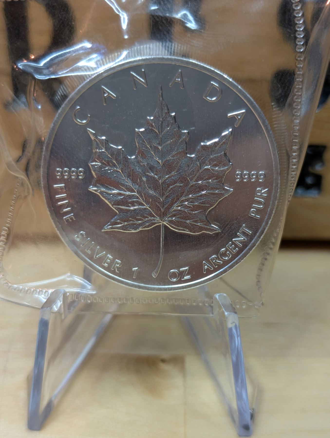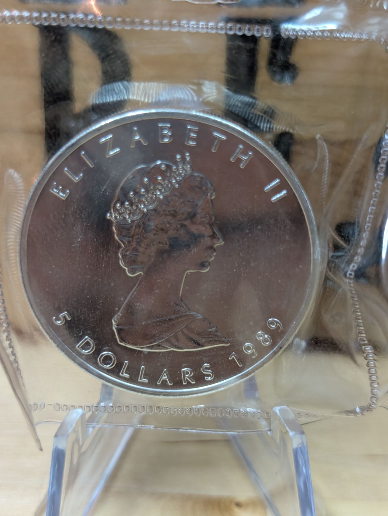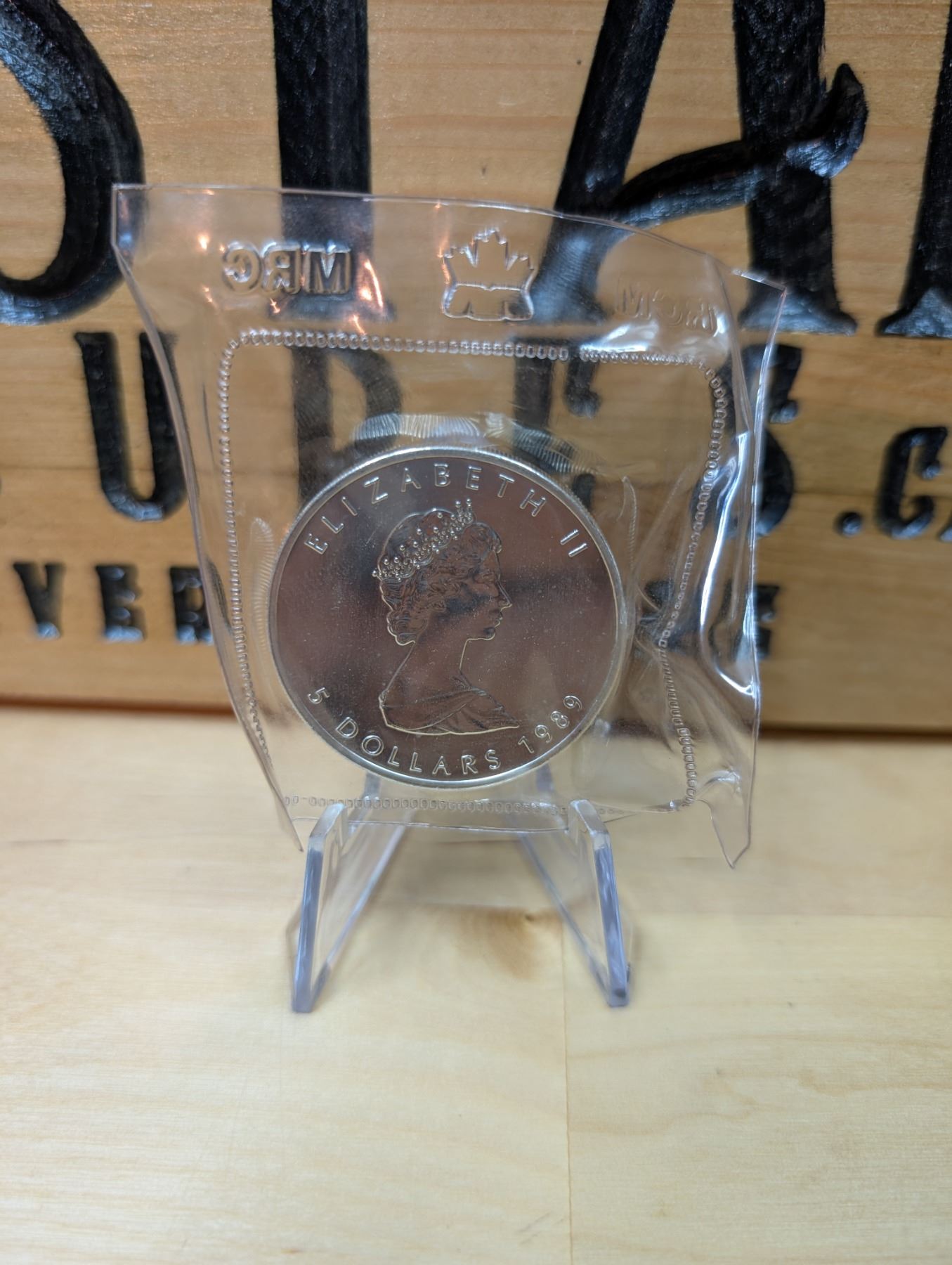 The 1 oz 1989 Canadian Silver Maple Leaf coin features the iconic maple leaf design on the reverse, symbolizing Canada’s national pride. The obverse showcases an effigy of Queen Elizabeth II, with the year 1989 inscribed. Struck in .9999 fine silver, this coin is renowned for its purity and craftsmanship. As part of the Canadian Mint’s popular Maple Leaf series, it remains a highly sought-after item for collectors and investors alike.