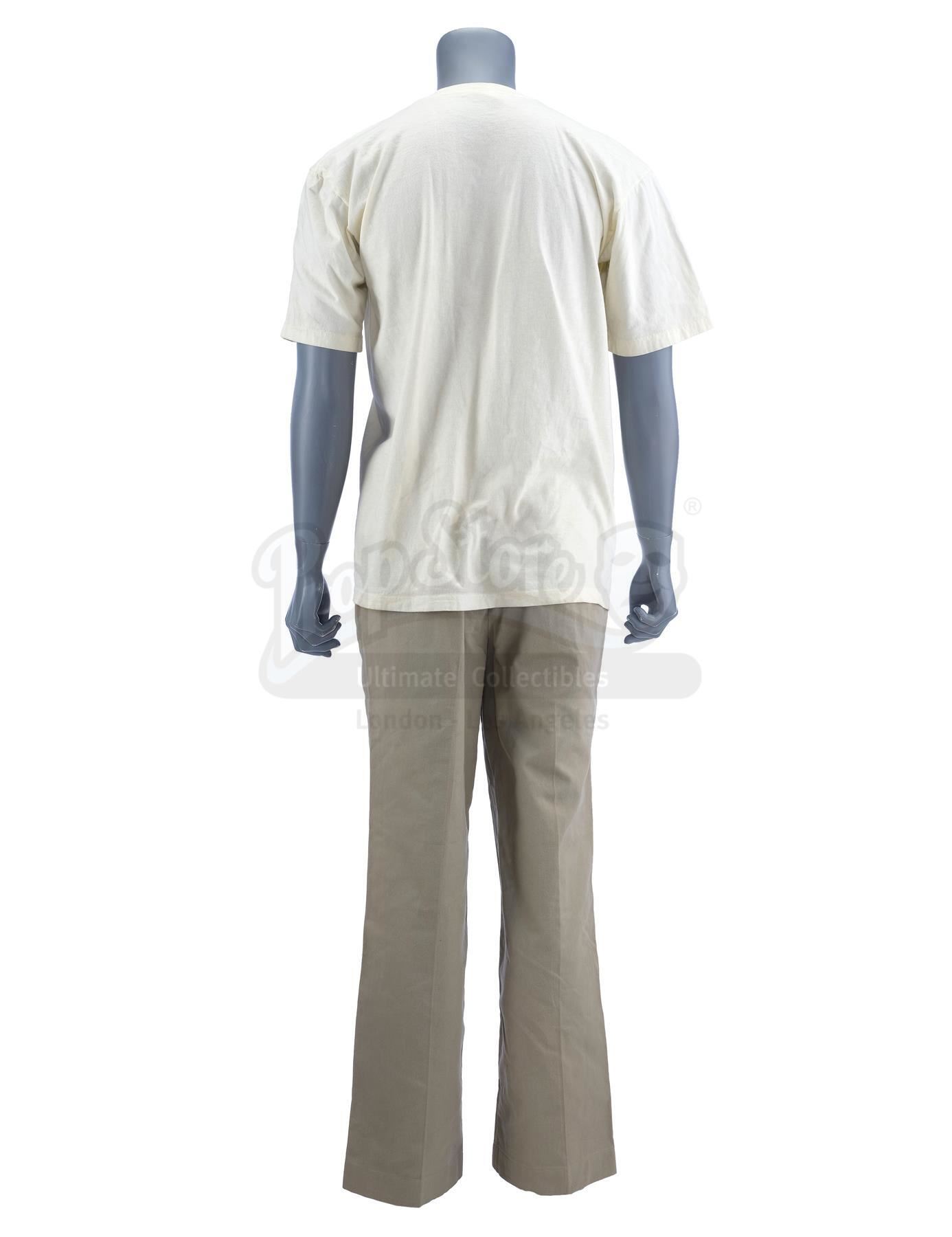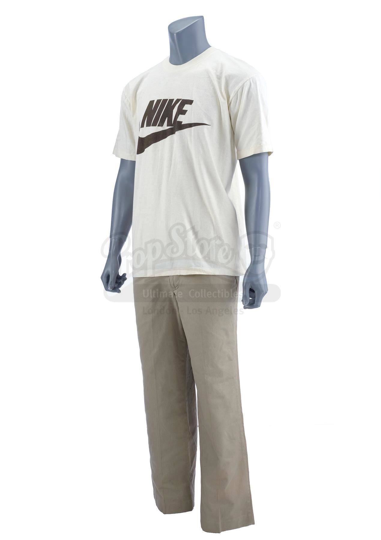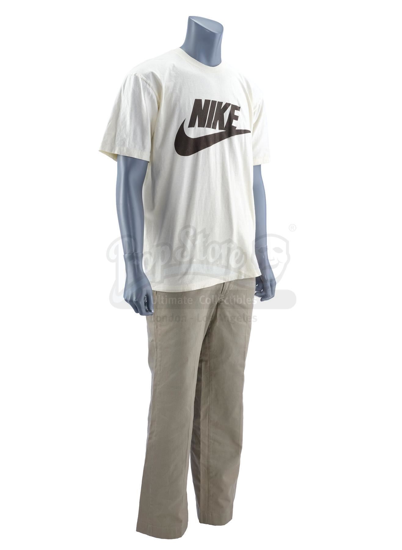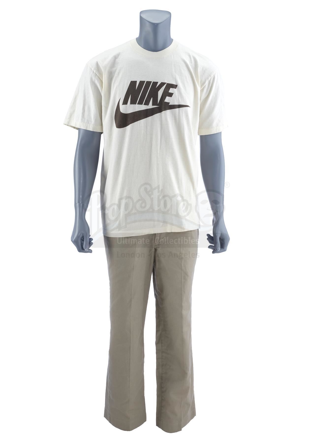 This lot will be auctioned on Tuesday, June 29th. The auction will begin at 9:00am PDT and lots are sold sequentially via live auctioneer; tune in to the live streaming broadcast on auction day to follow the pace. Note other lots in the auction may close on June 30th or July 1st. Forrest Gump's (Tom Hanks) Nike running shirt and khaki pants from Robert Zemeckis' drama Forrest Gump. Gump wore his costume while gaining the first of many followers during his epic cross-country run. This lot consists of a short-sleeve tan running shirt featuring Nike's famous "swoosh" logo in dark brown across the front, and a pair of high-waisted khaki dress pants. They exhibit signs of wear from age and use, including some markings on the back of the shirt, but remain in good overall condition. Estimate: $4,000 - 6,000
