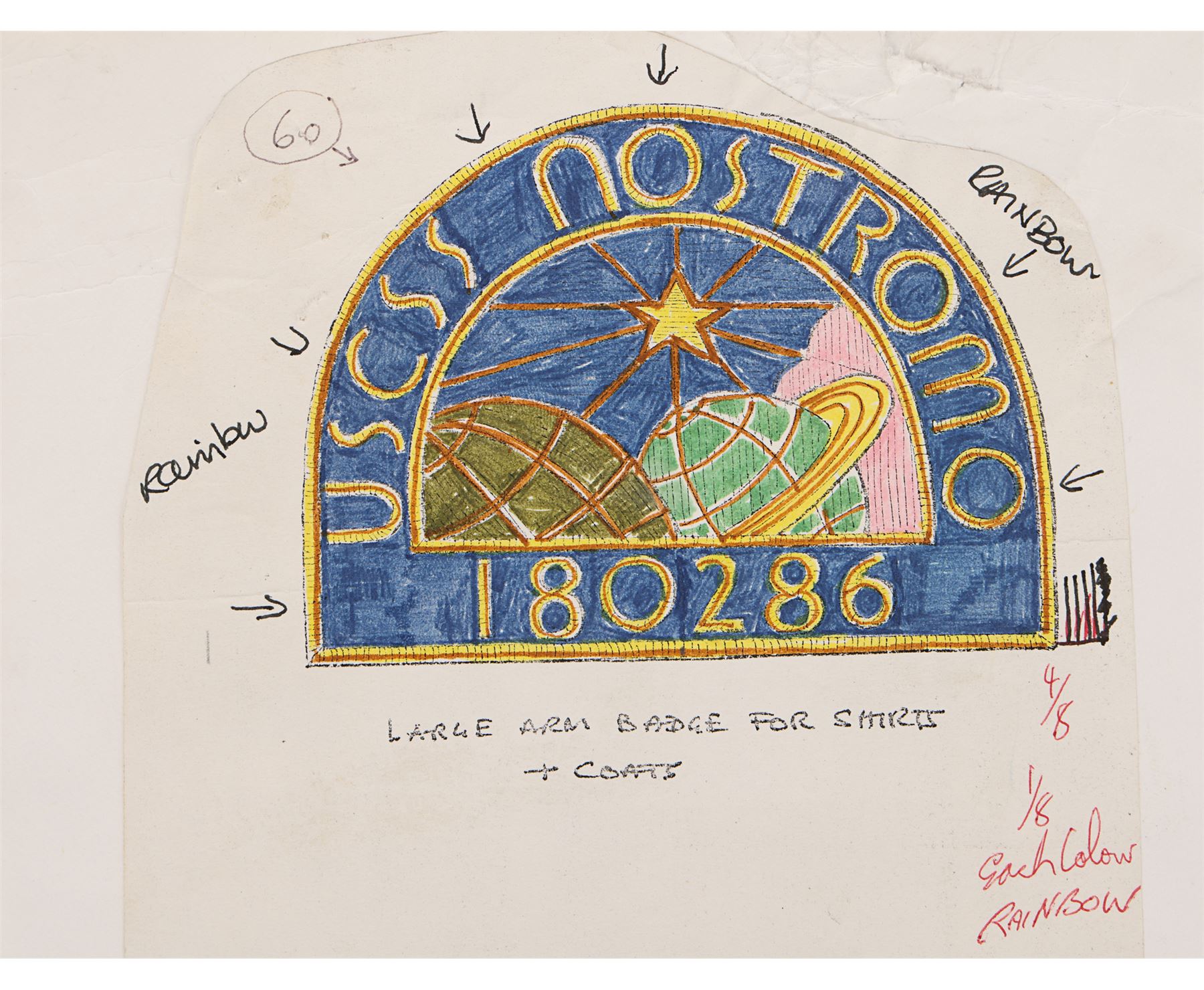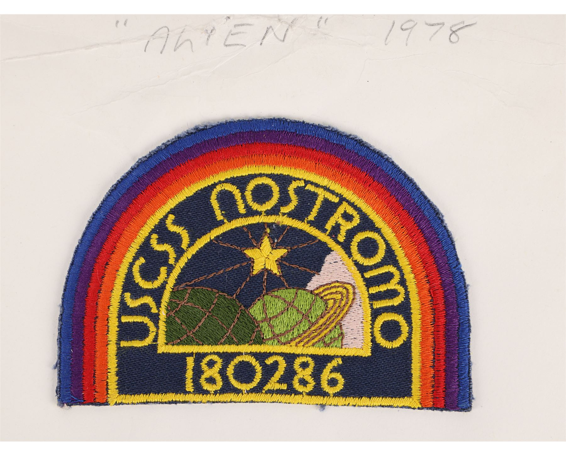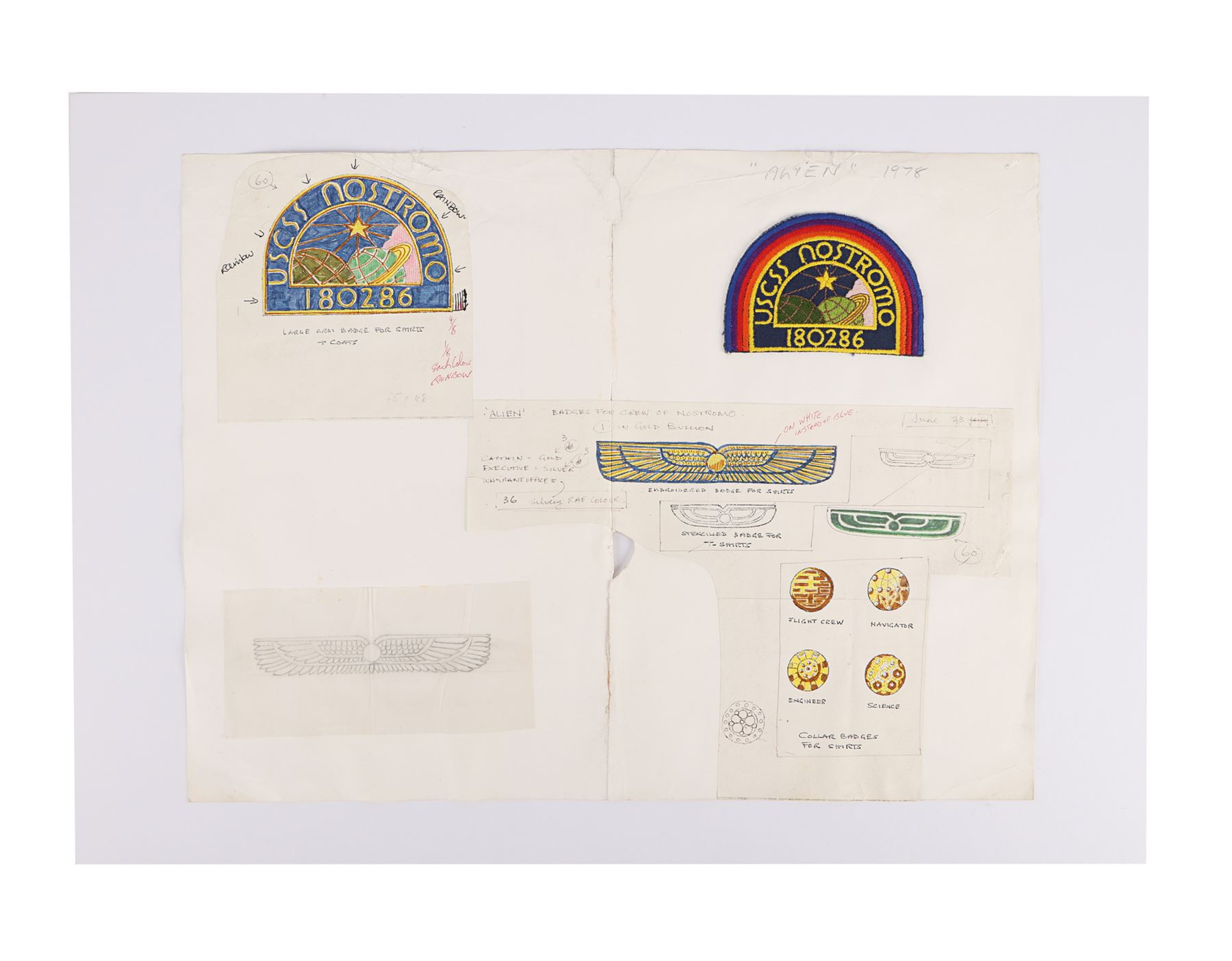 A production-made USCSS Nostromo patch and a set of John Mollo concept art from the production of Ridley Scott's sci-fi horror Alien. This lot originates from the private collection of the late John Fabb of A.R. Fabb Bros, the film's patch maker.