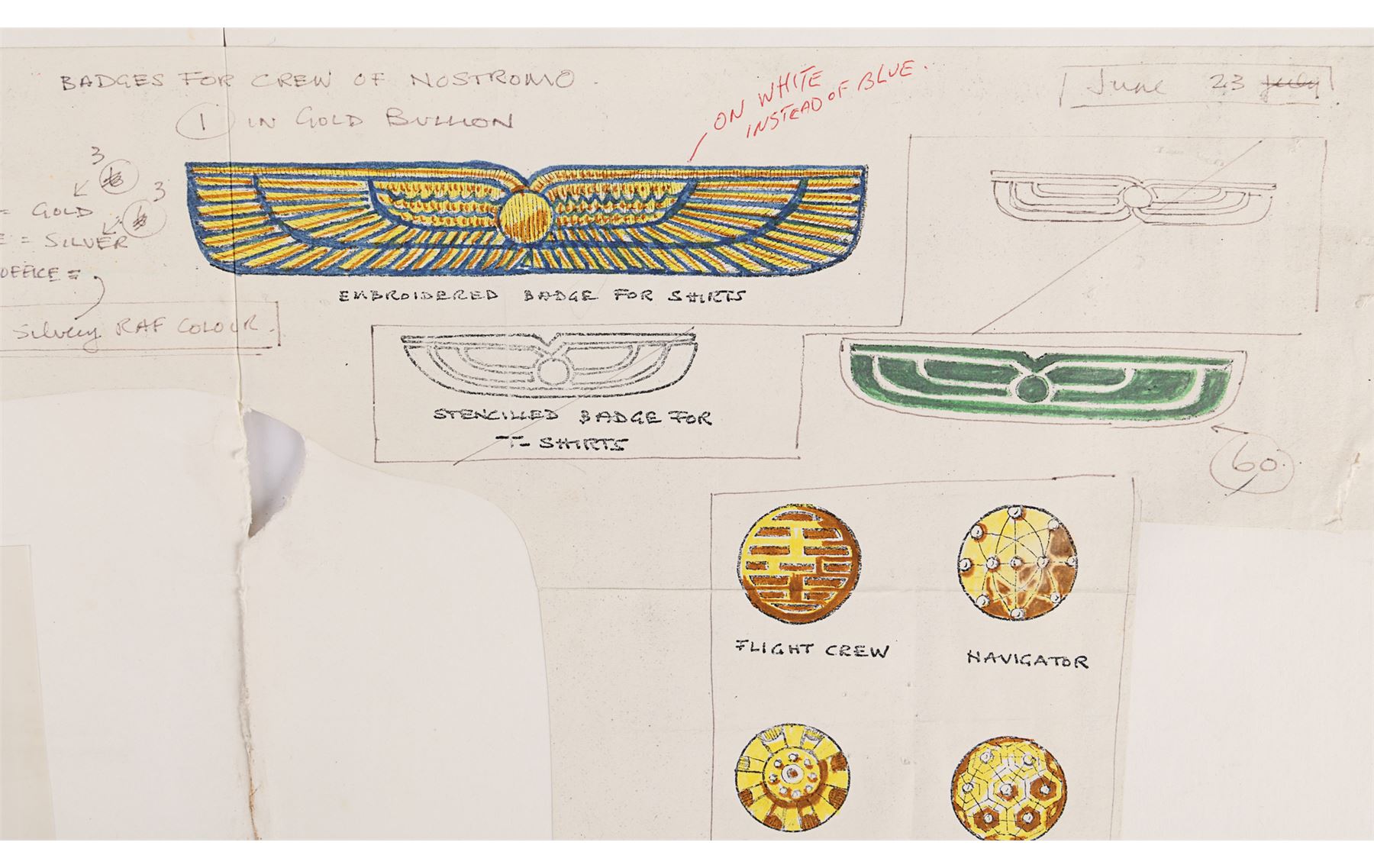 ALIEN (1979) - Production-made Nostromo Patch and John Mollo Hand-drawn and Hand-coloured Concept Artwork
