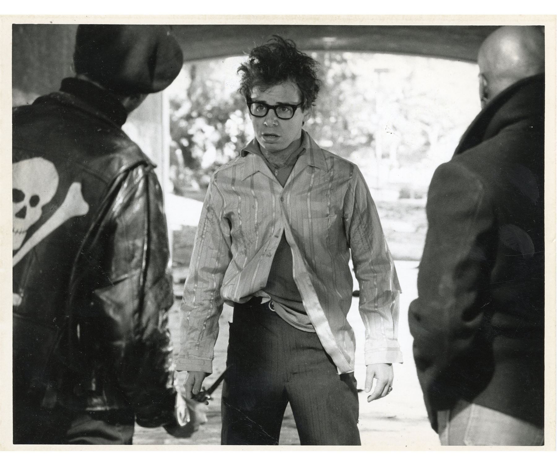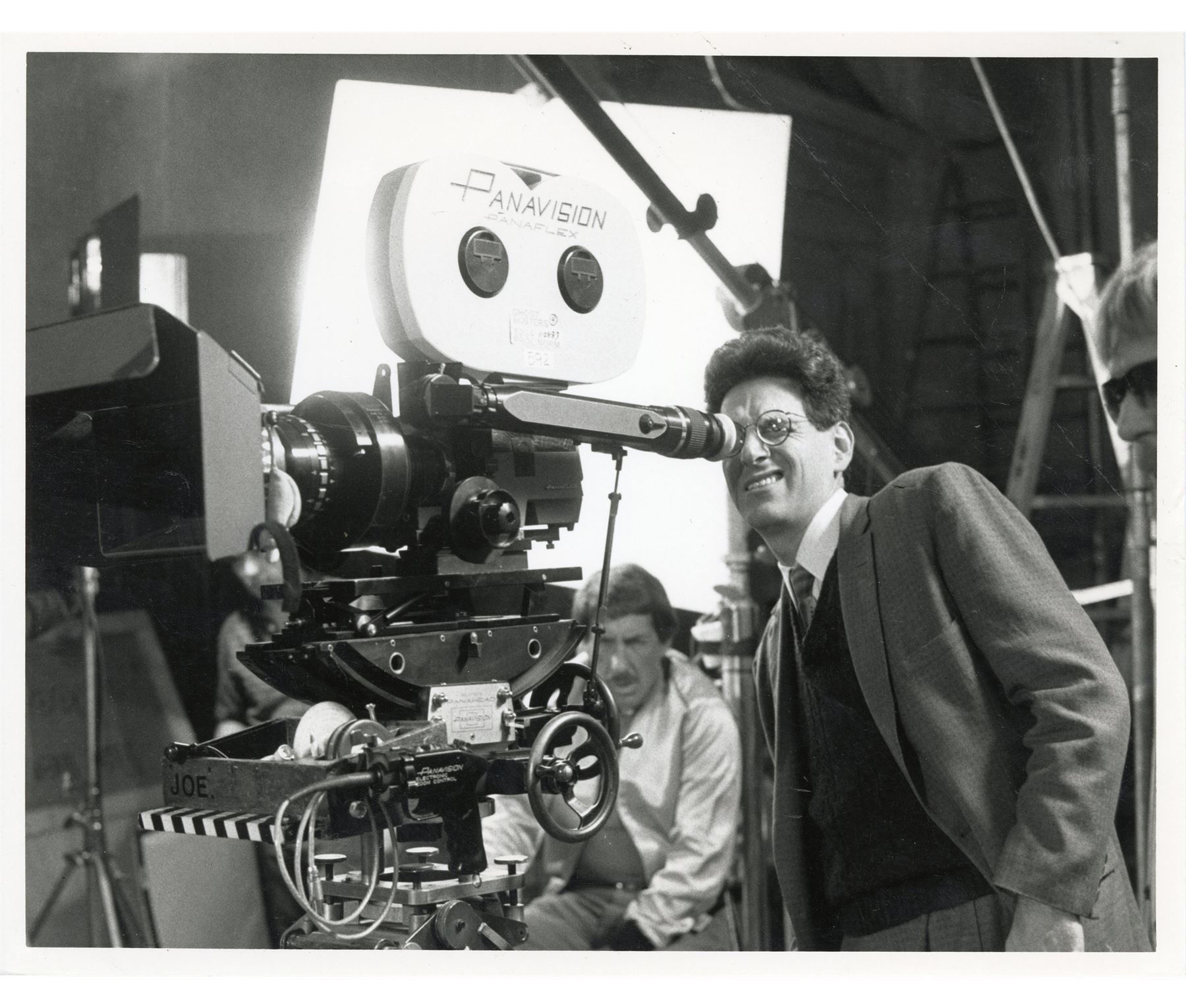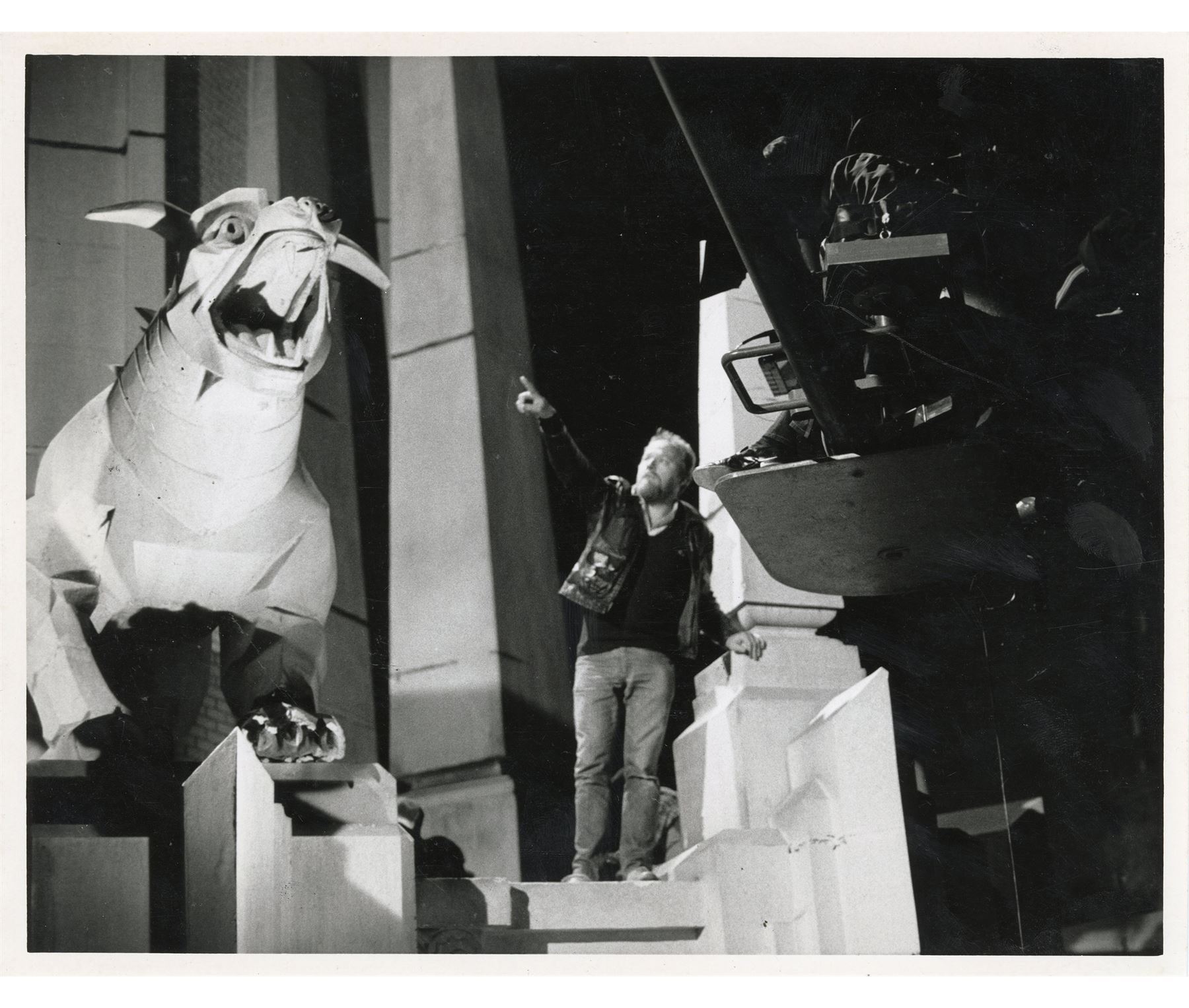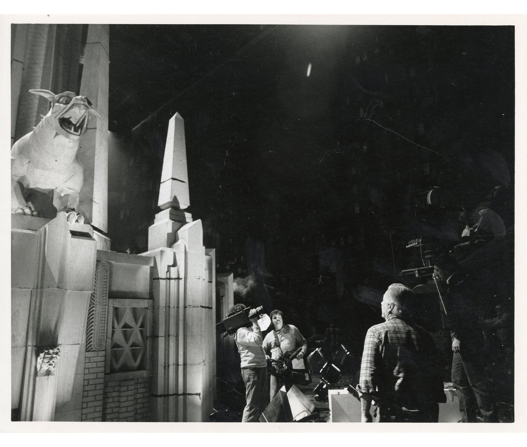 GHOSTBUSTERS (1984) - Set of Behind-the-Scenes Stills and Studio Negatives - Behind-the-scenes stills and studio negatives from the production of Ivan Reitman's sci-fi comedy Ghostbusters. This set consists of two black-and-white glossy production stills of Dana Barrett (Sigourney Weaver) and Louis Tully (Rick Moranis); four black-and-white glossy behind-the-scenes stills featuring Harold Ramis and the Terror Dog statues; and three Columbia Pictures lab negatives featuring the Ghostbusters and the Ecto-1, one of which is unpublished. Each still is hand-numbered and stamped with the Columbia Pictures copyright on the reverse. The set exhibits bending and edge wear throughout from handling. Dimensions: (each) 8.5" x 11" (21.75 cm x 28 cm)