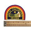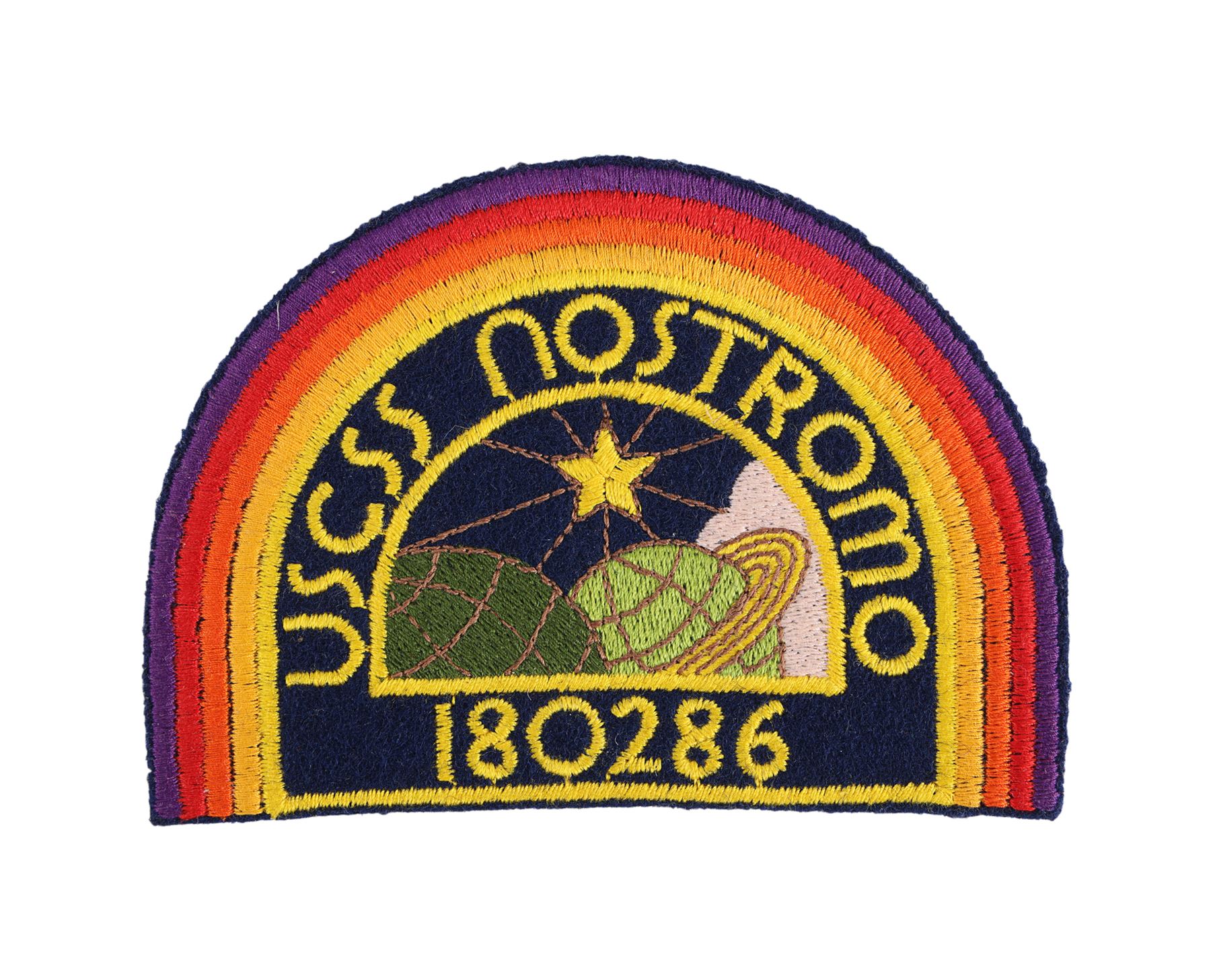 A production-made USCSS Nostromo patch from Ridley Scott's sci-fi horror Alien. Members of the Nostromo crew wore patches on their clothing throughout the film. This patch was made for the production as a backup and kept after production by John Fabb of A.R. Fabb Bros, the film's patch maker.