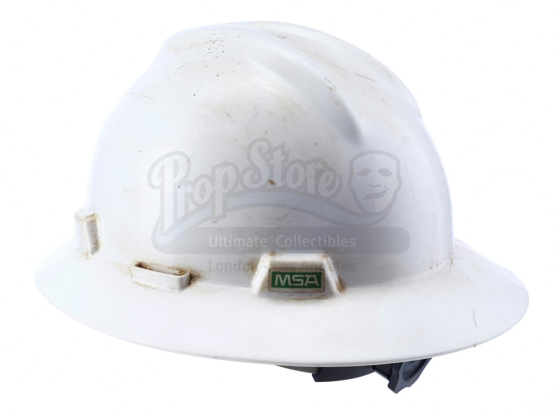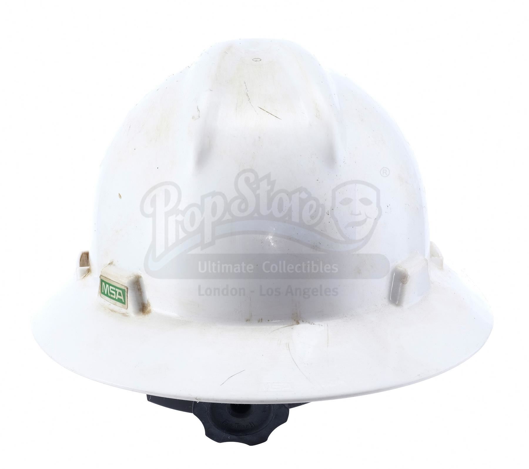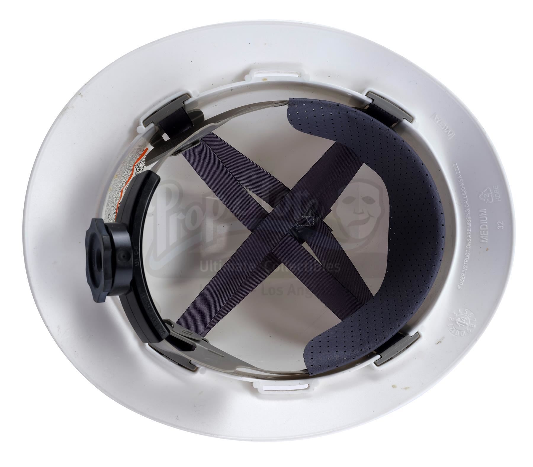 This lot will be auctioned on Wednesday, June 30th. The auction will begin at 9:00am PDT and lots are sold sequentially via live auctioneer; tune in to the live streaming broadcast on auction day to follow the pace. Note other lots in the auction may close on June 29th or July 1st. A Jurassic World employee hard hat from Colin Trevorrow's sci-fi adventure sequel Jurassic World. Park employees wore their hard hats while undergoing the construction of the paddock that housed the new genetically designed Indominus Rex. Made from rigid white plastic, the hat features a circular silver-color and blue Jurassic World logo on the front. It displays a green "MSA" vinyl applique on the side. The piece contains a gray and black adjustable comfort liner fitted within. The hat shows distress for use on the production and stains throughout. Dimensions: 12" x 10.5" x 6.25" (30 cm x 27 cm x 16 cm). Estimate: $1,500 - 2,500