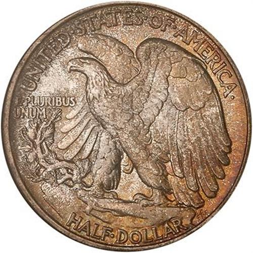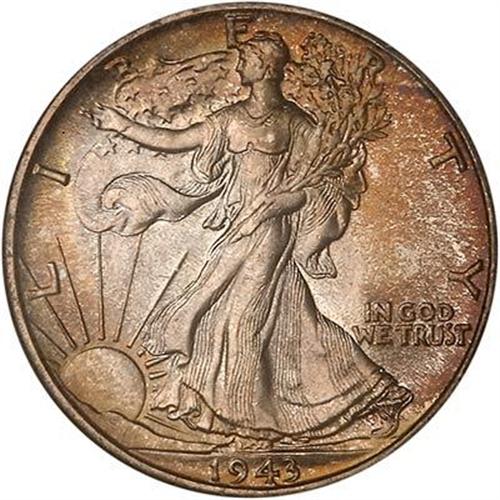 1943 Liberty Walking Half Dollar. Grayish amber toning speckled throughout the obverse and covering the reverse as well. A delightful and superb specimen of this War year half dollar. (#6618)