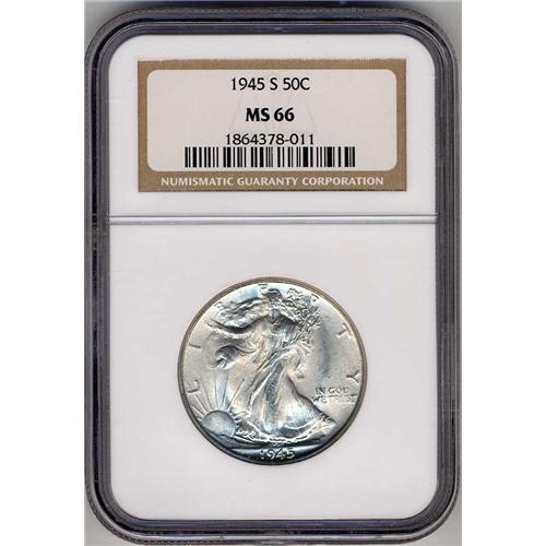 Lot 815 - 1945-S Liberty Walking Half Dollar NGC MS66