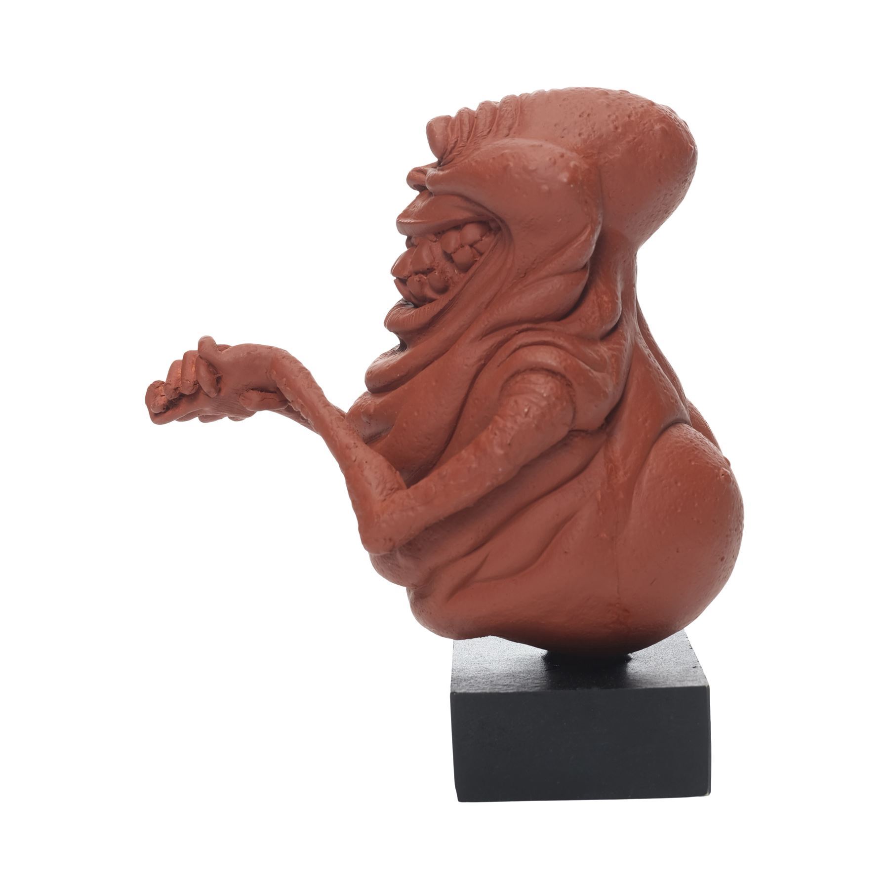 These maquettes were created by Industrial Light & Magic (ILM) as design references for the character puppets. The Slimer maquette is made from brown resin mounted to a black base, while the white plaster Brothers maquettes are painted gray. ILM sculptor Mark Siegel and "10/88" are engraved on one Scoleri's back. Each maquette exhibits scratching and paint chipping. Dimensions: 17" x 5" x 8" (43.25 cm x 12.75 cm x 20.5 cm)