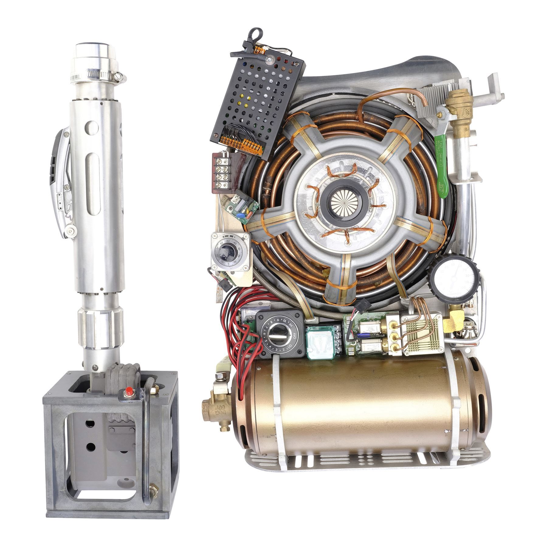 GHOSTBUSTERS (2016) - Prototype Proton Pack and Wand - A prototype proton pack and wand from Paul Feig's comedy-fantasy film Ghostbusters. The Ghostbusters team wielded proton wands connected to proton packs as they apprehended entities in New York.