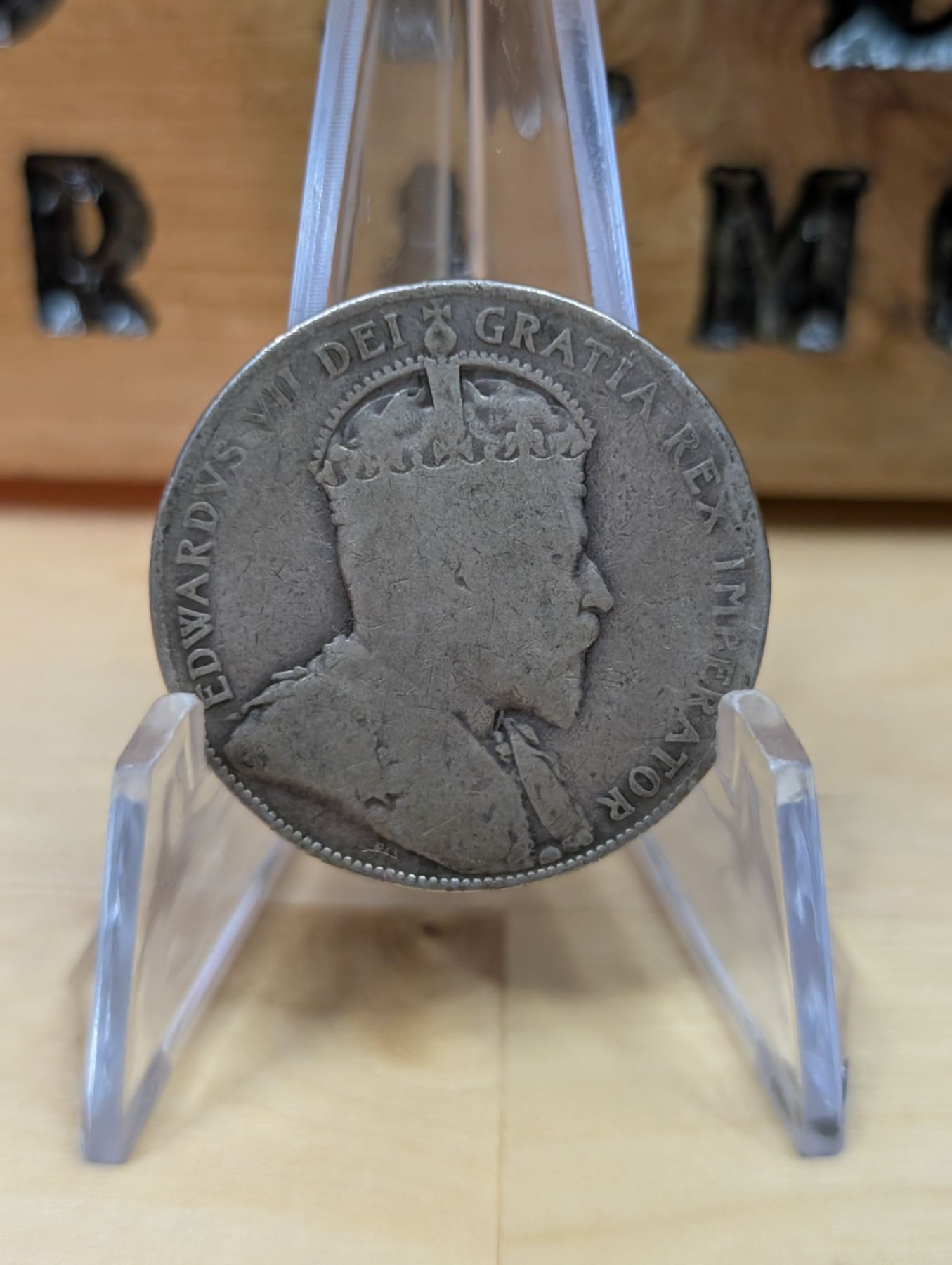 The 1907 Canadian Silver 50-cent coin is made of 92.5% silver and 7.5% copper, with a weight of 11.6 grams. It features the effigy of King Edward VII on the obverse, marking the final year of his reign. The reverse showcases the Canadian coat of arms, symbolizing the country’s heritage. The 1907 50-cent coin is part of the series of half-dollar coins issued during King Edward VII's reign and is sought after by collectors due to its age, historical significance, and silver content.