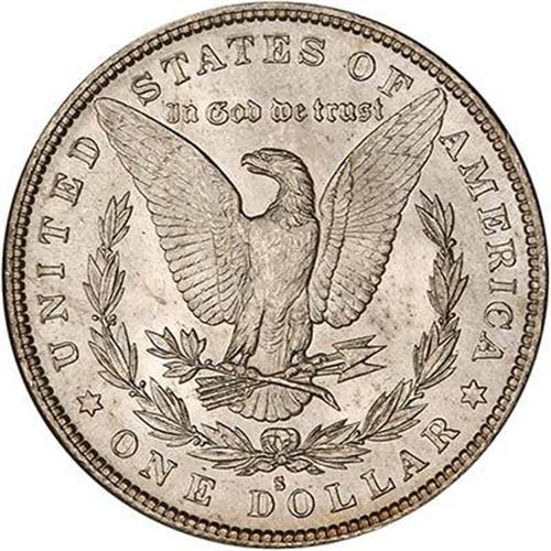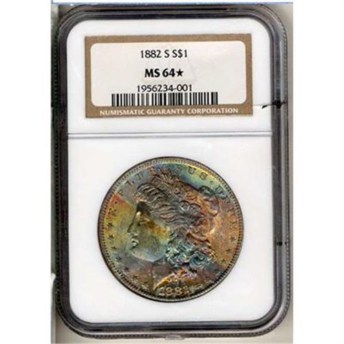 1882-S Morgan Dollar. Gorgeous toning from top to bottom on the obverse, while the reverse is snowy shite. (#7140)