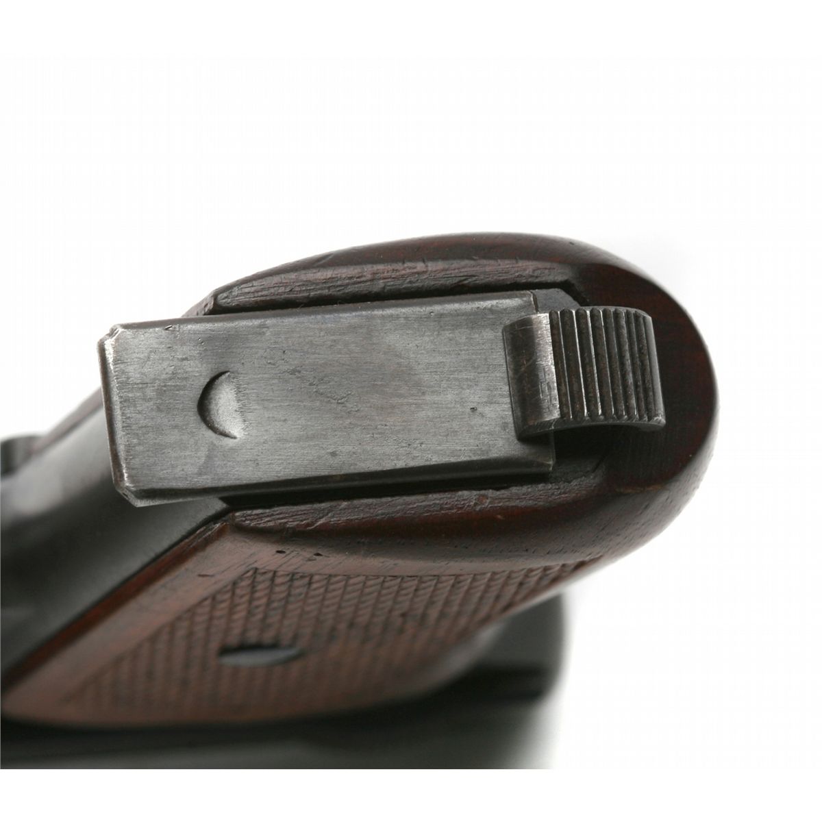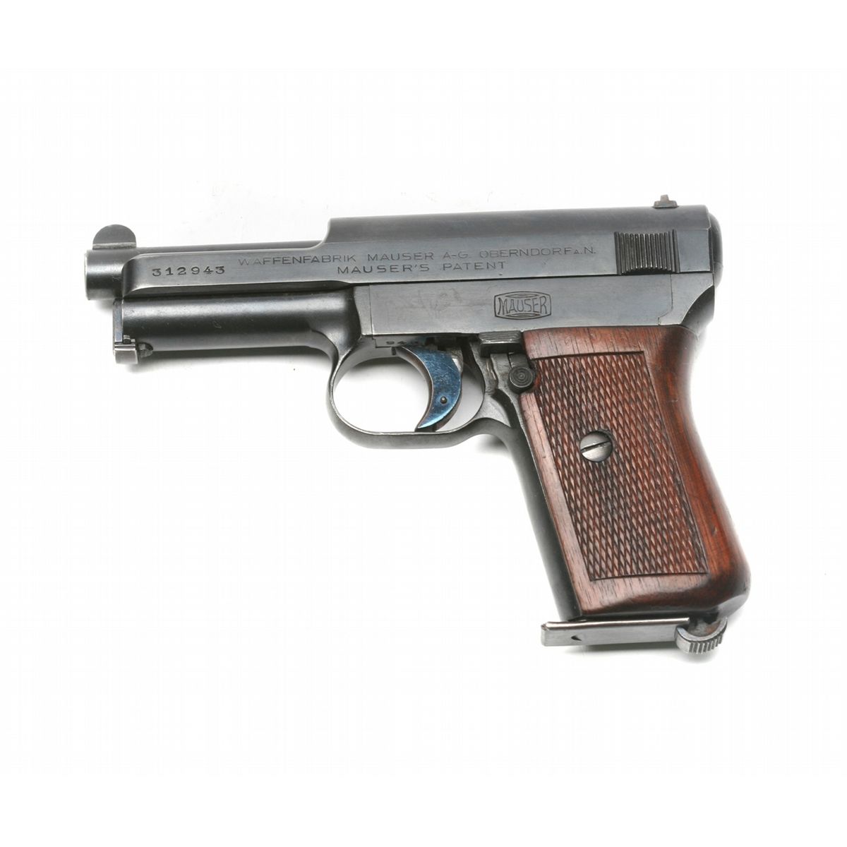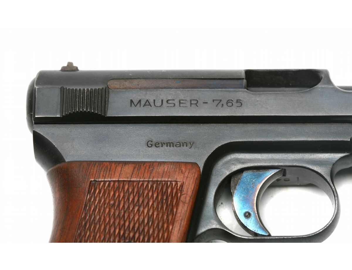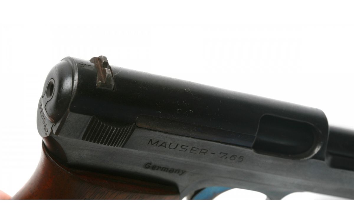 Very Good condition - 3.5" barrel - retains 90% original blue with minor wear at high edges - checkered walnut wrap-around grips - small crack at upper left - front round blade & rear notch sights - late 2-line address with Mauser banner on left side - German stamped on right frame - crown/crown/U proof on top/rear of slide - matching visible SNs - German military semiauto - yr. mfg: 1923-1929 - SN 312943 - est. 250 - 500 - C&R - 25JJKTN035