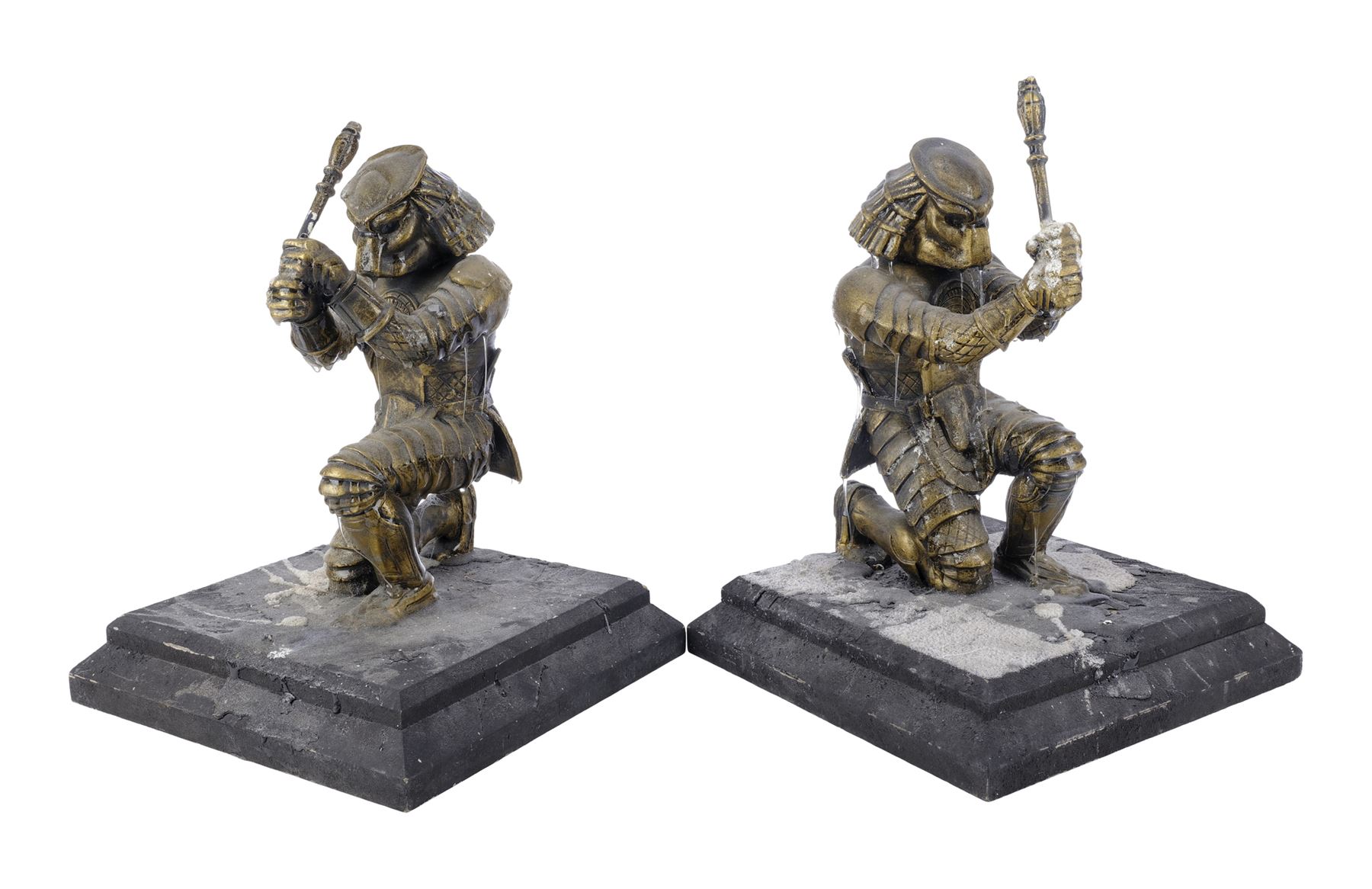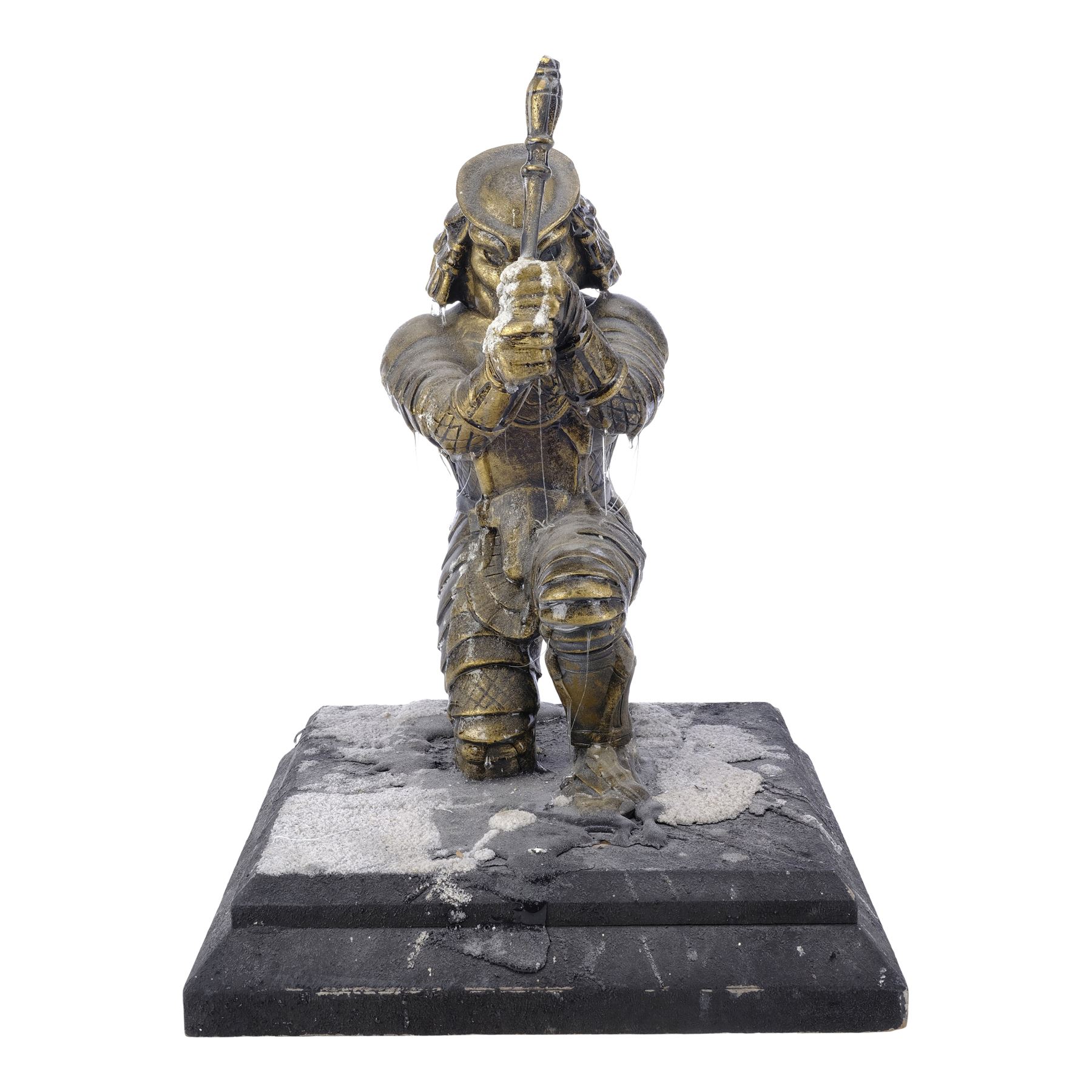 A set of Predator statue model miniatures from Paul W.S. Anderson's AVP: Alien vs. Predator. Statues of kneeling Yautja warriors stood guard at the entrance to their Antarctic pyramid, which was created on a model miniature set.