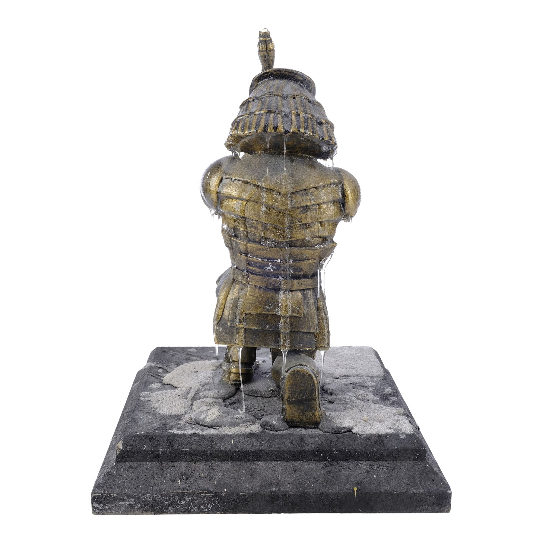 This set consists of two foam model miniatures. Painted in shades brown and black, the statues feature bronze-colour highlights to resemble metal. They are attached to foam bases with flocking to resemble snow-covered stone. This lot exhibits some scuffing on the edges, chipped paint, and notable adhesive residue.