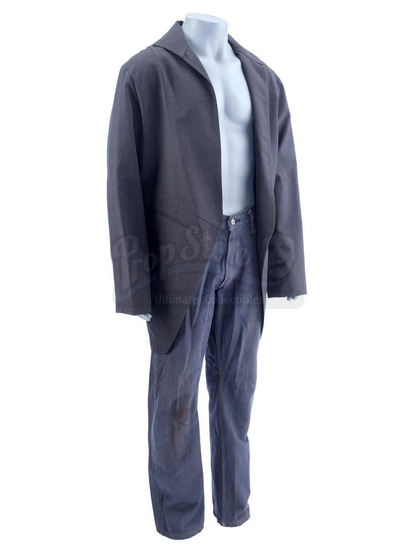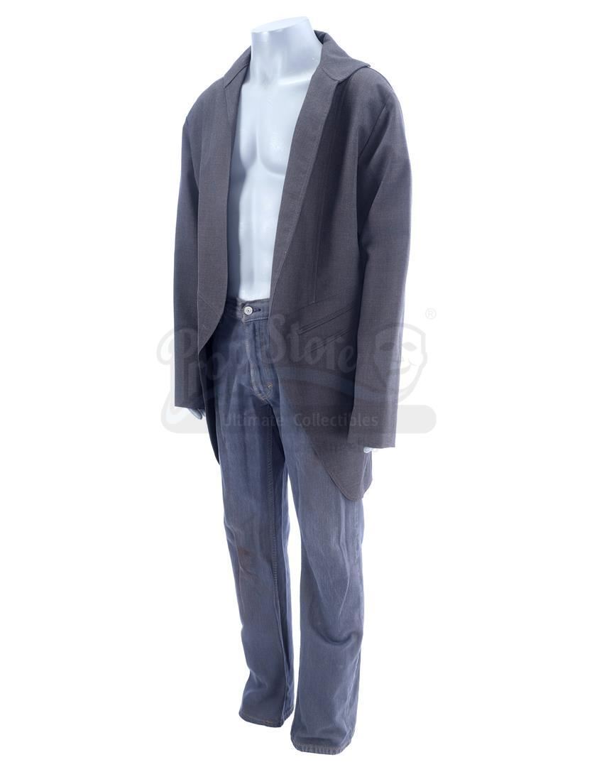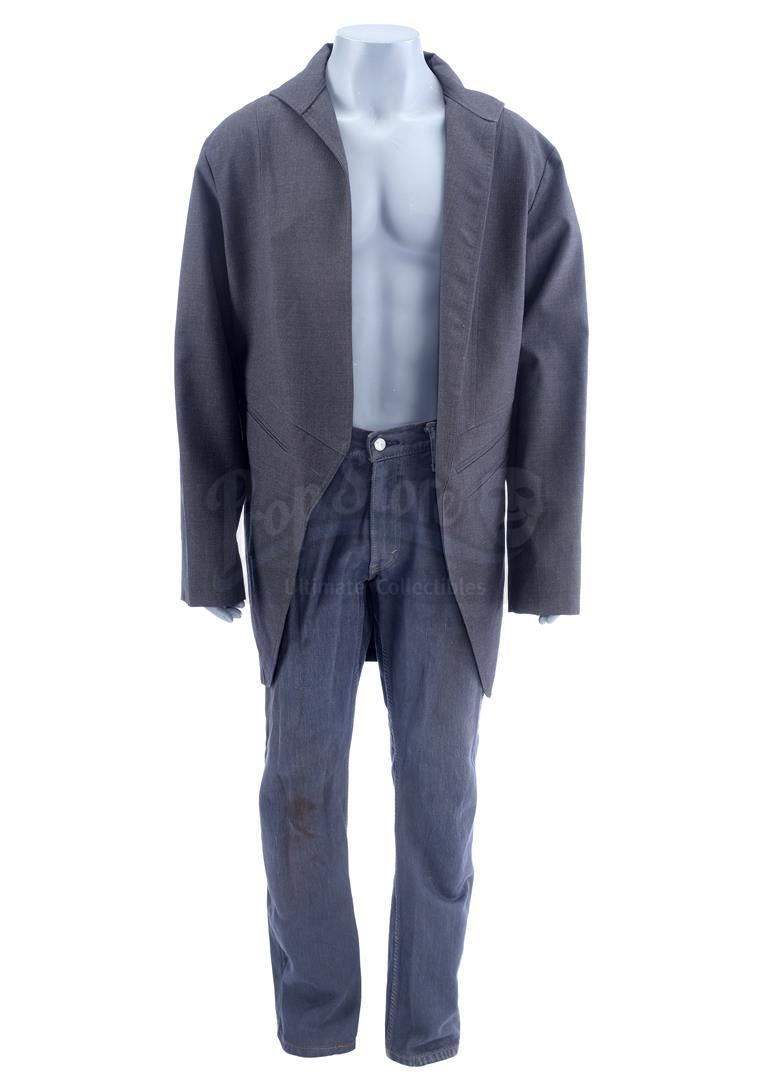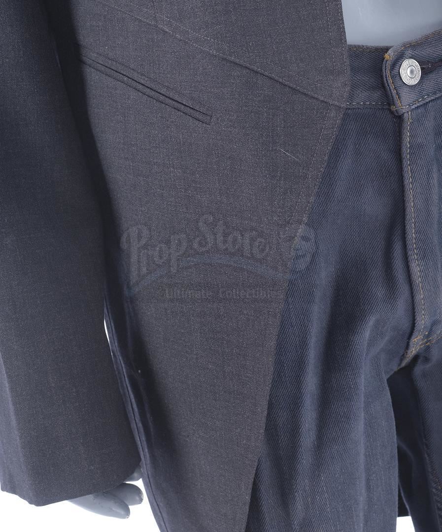 This lot will be auctioned on Wednesday, June 30th. The auction will begin at 9:00am PDT and lots are sold sequentially via live auctioneer; tune in to the live streaming broadcast on auction day to follow the pace. Note other lots in the auction may close on June 29th or July 1st. Old Joe's (Bruce Willis) gray jacket and pants from Rian Johnson's sci-fi crime action film Looper. When assassin Joe (Joseph Gordon Levitt/Willis) learned the mob wanted to send back future Joe to assassinate him, he took a payout and retired in China. Joe wore this costume during a montage showing his life. This lot consists of a custom-made gray wool blend jacket featuring three false pockets and a back vent for wearing ease. Also included is a pair of blue denim jeans. This lot exhibits some signs of wear from production use, but remains in excellent overall condition. Estimate: $2,000 - 3,000