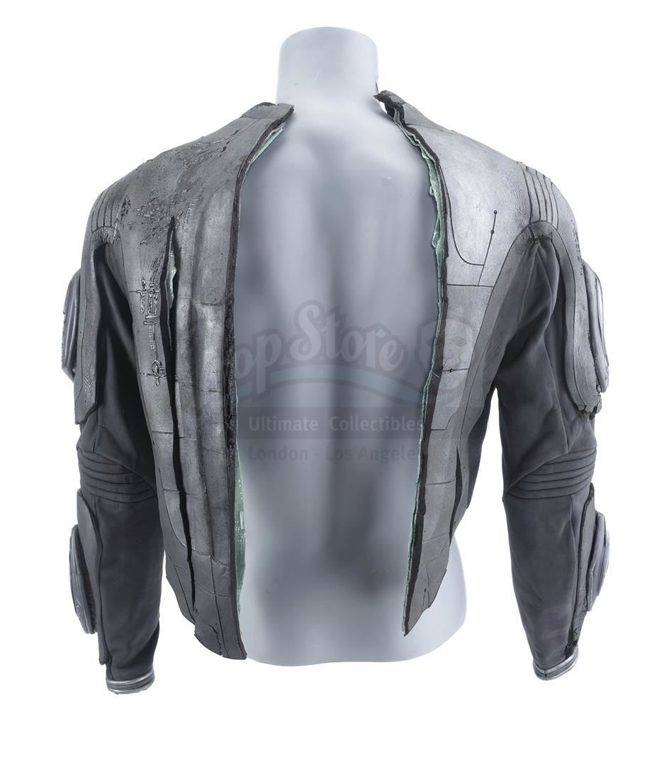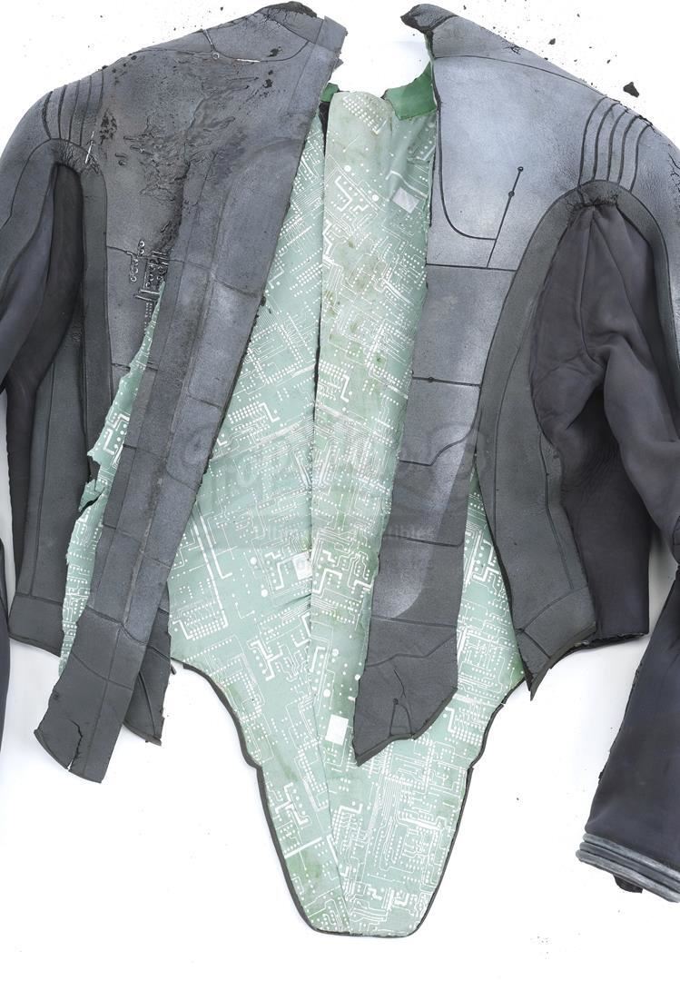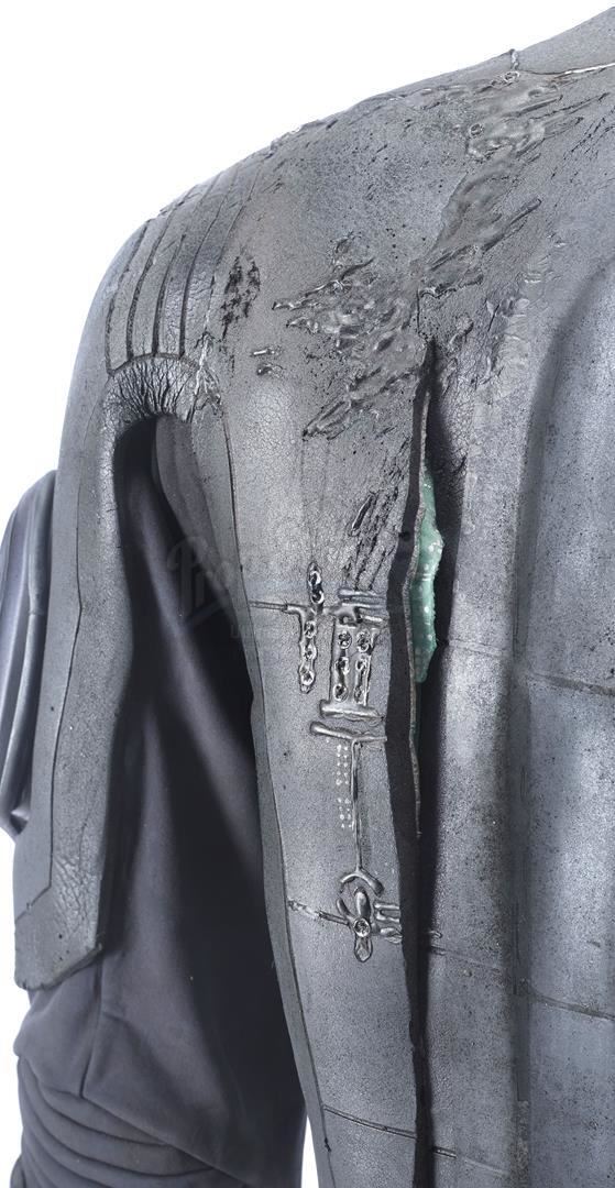 This lot will be auctioned on Wednesday, June 30th. The auction will begin at 9:00am PDT and lots are sold sequentially via live auctioneer; tune in to the live streaming broadcast on auction day to follow the pace. Note other lots in the auction may close on June 29th or July 1st. Major Don West's (Matt LeBlanc) spacesuit breastplate from Stephen Hopkins' sci-fi adventure Lost in Space. West donned his spacesuit throughout the film, including when the Jupiter II began its journey into space. Multiple versions of West's suit were created from lifecasts of LeBlanc by costume designer Vin Burnham. This charcoal-color, paneled foam rubber breastplate features raised details, including a "Jupiter Mission" badge on the right breast, as well as green and white patterned fabric lining on the interior and a split back which, during production, was sealed with medical glue. The breastplate is in fair and fragile overall condition with the rubber extensively cracked from age and wear. This item should be handled with care. Estimate: $2,500 - 3,500