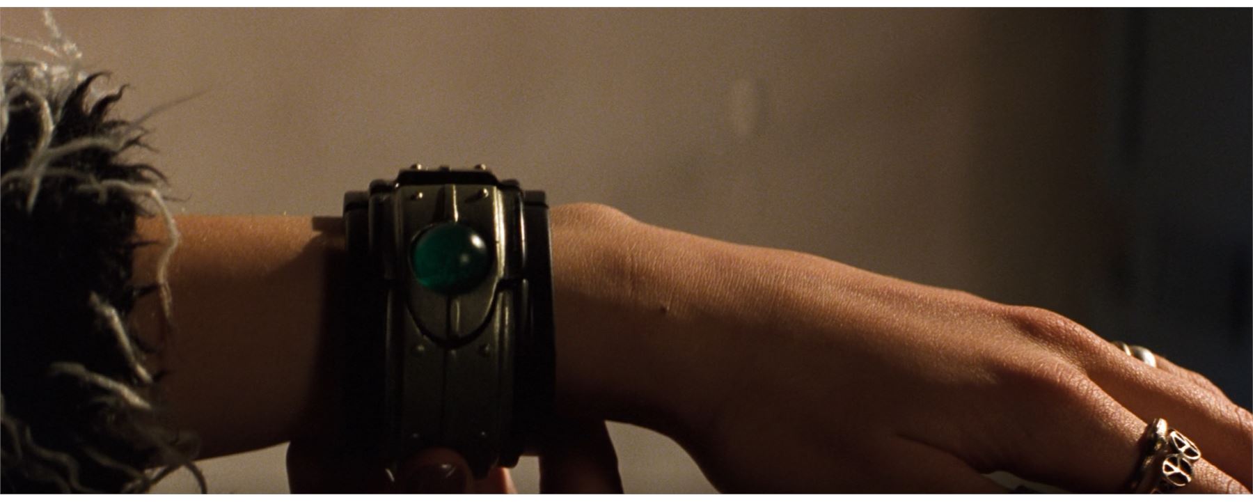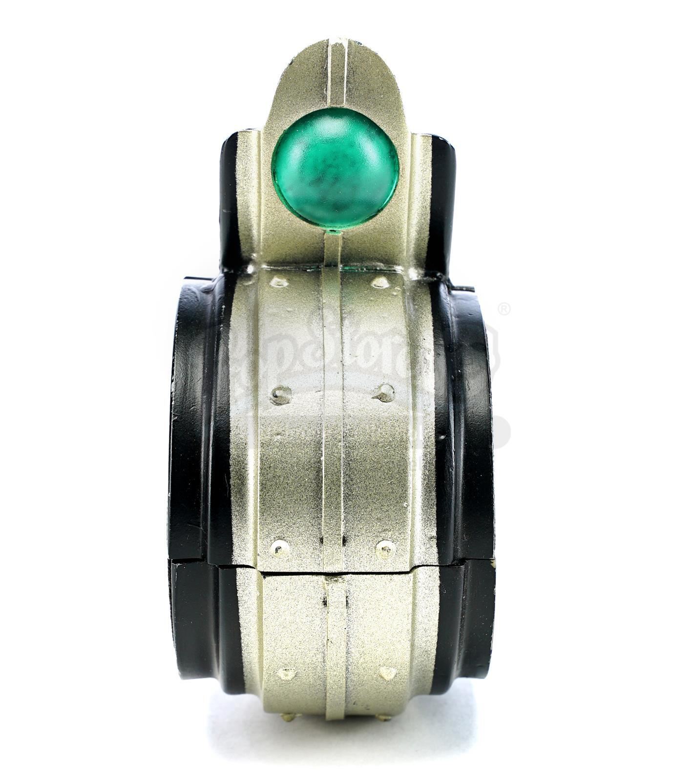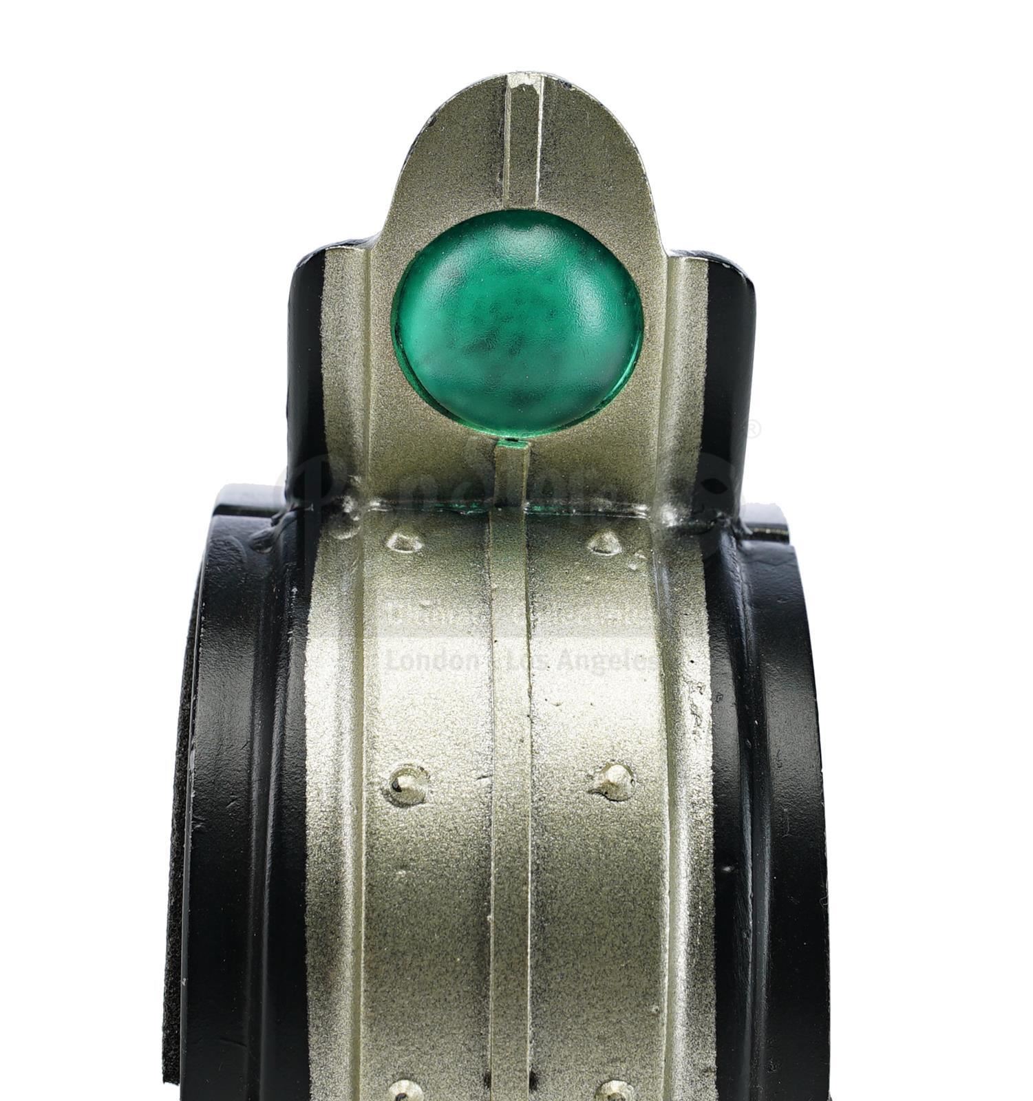 This lot will be auctioned on Wednesday, June 30th. The auction will begin at 9:00am PDT and lots are sold sequentially via live auctioneer; tune in to the live streaming broadcast on auction day to follow the pace. Note other lots in the auction may close on June 29th or July 1st. Penny Robinson's (Lacey Chabert) "Penny Vision" watch from Stephen Hopkins' sci-fi adventure Lost in Space. Robinson kept a digital diary called "Penny Vision" on her futuristic watch while traveling with her family on the Jupiter II. This metal-hinged watch features a foam-padded green and black resin band inset with teal and turquoise urethane jewels and metal grille details. The watch is in good overall condition with visible paint scuffing throughout from production. Dimensions: 4" x 3" x 2" (10.25 cm x 7.75 cm x 5 cm) Estimate: $500 - 700