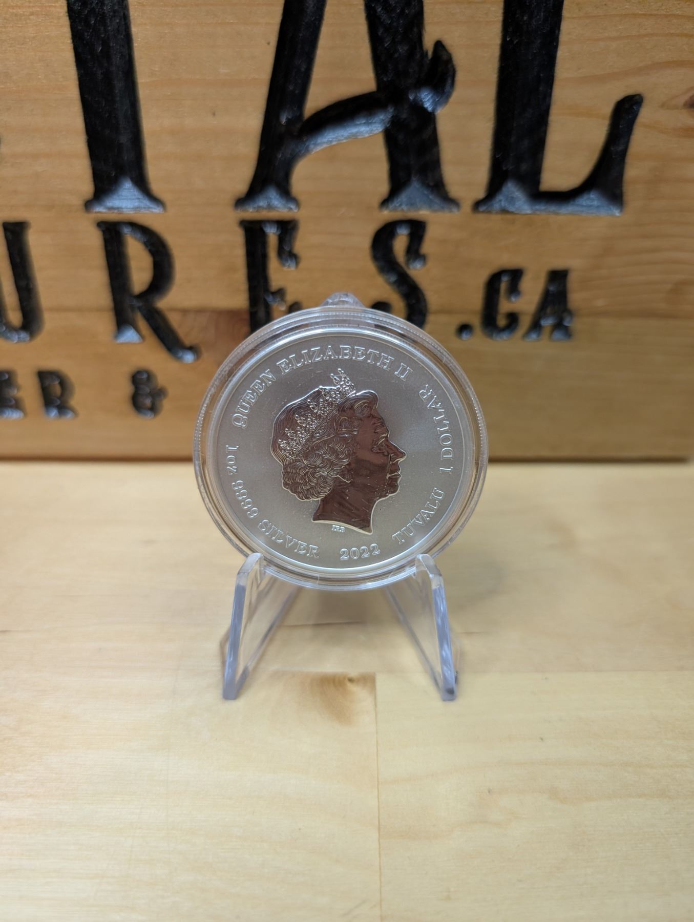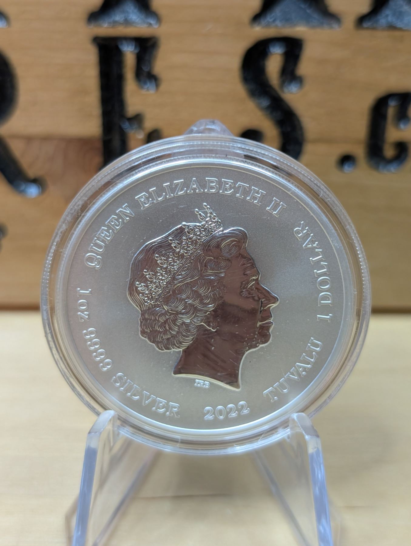 The 1 oz Phantom silver round 2022 is made from .999 fine silver and features a design often related to a mysterious or ghostly theme, symbolized by "Phantom." It may include artistic elements like ethereal figures, shadows, or other ghostly motifs. These rounds are popular among collectors for their unique and creative design. The value is influenced by the current silver price and demand for the specific 2022 edition.