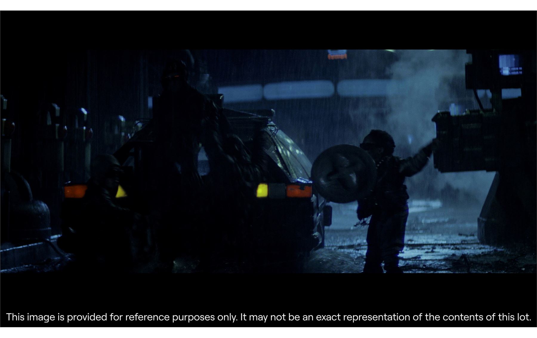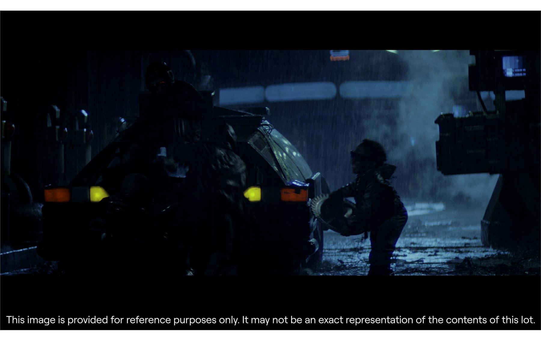 Deckard's (Harrison Ford) sedan hubcap from Ridley Scott's sci-fi classic Blade Runner. A group of street vandals ripped a hubcap from Deckard's parked sedan while he was seated inside the car. This component originates from the collection of vehicle customiser Gene Winfield, who worked alongside visual futurist Syd Mead in creating the vehicles for the movie. This lot comes from the family of Blade Runner archivist Geoff Hutchins.