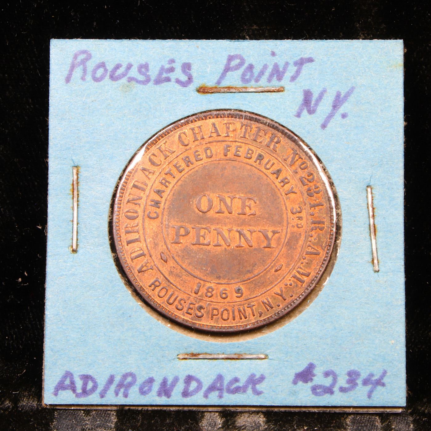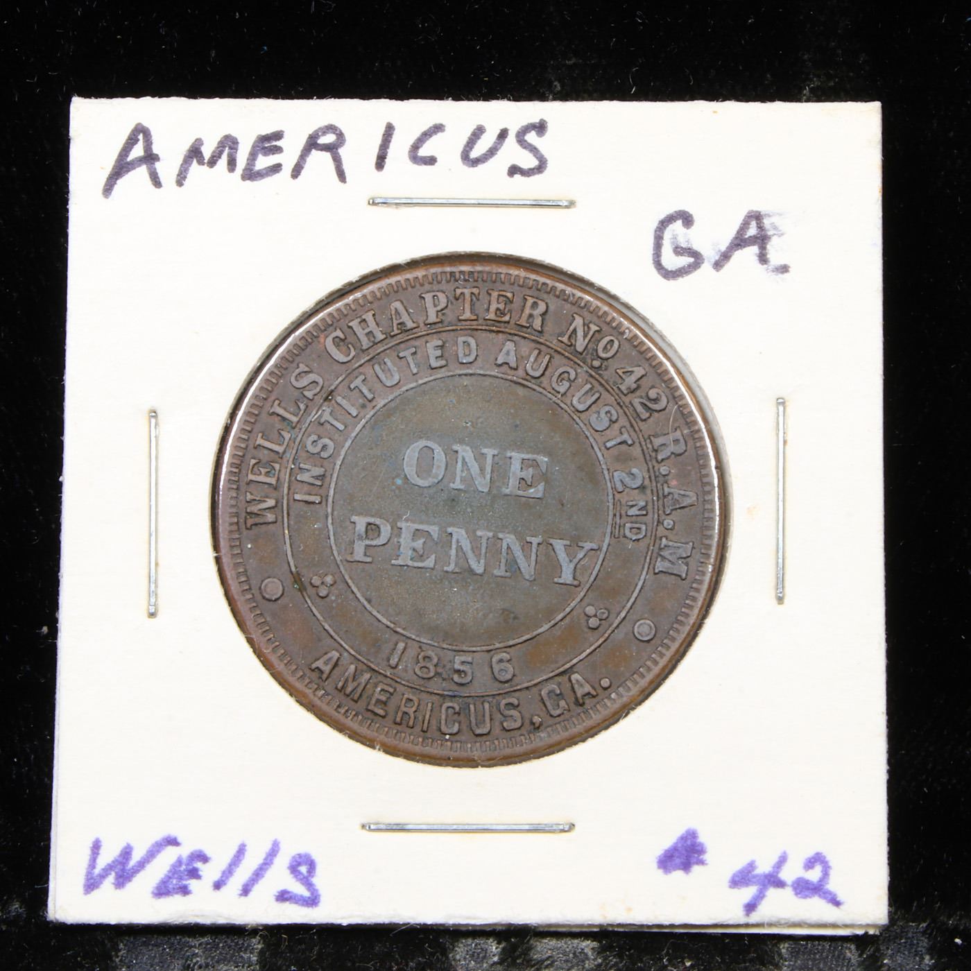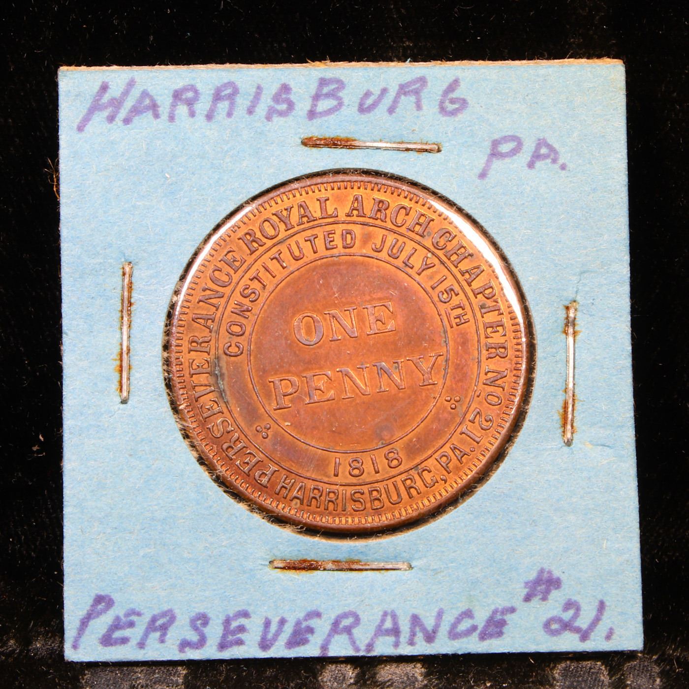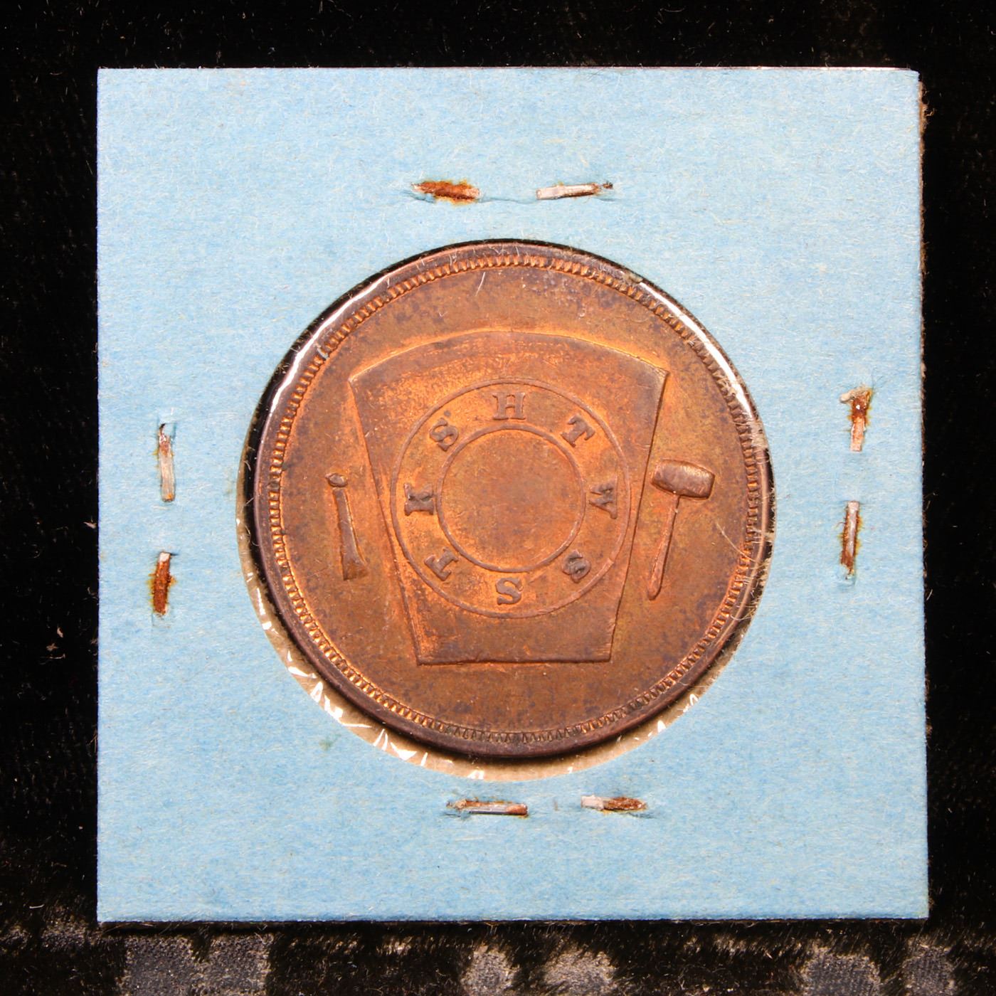 Lot #85 of the 450 Masonic Tokens from The Walter O. Collection. We Recently received a very Large Collection of 450 Masonic Tokens and coins. This collection was one man’s hobby for over 40 years. He collected each and every one with care and attention to detail and variety. Some of them are amazing and incredibly rare and highly sought by collectors and Masons. Here is a Brief Overview : Masonic coins often raise many questions for those looking to better understand the significance of the coins themselves as well as the symbolism represented in their imagery. In fraternal culture as a whole, symbolism has always been a significant part of these organizations’ identity, especially in Freemasonry, as Masonic coins are rich with symbolism, reflecting different events and characteristics of Freemasonry that give them the priceless value they hold. There are several varieties of masonic coins and tokens, and all tokens will fall into one of the following categories: a token celebrating a particular mason, lodge or event; an initiation token showing when a Brother was initiated, passed and raised; and finally the mark mason token (or penny) which signifies a pivotal part of a Mason’s initiation. Because symbolism was so important to fraternal culture, these small coins are rife with meaning. The most ubiquitous representation of the Masons was the letter "G" surrounded by a compass and square, representing the holy geometry of God. Some tokens feature the letters "H.T.W.S.S.T.K.S.," which means "Hiram the Widow's Son Sent to King Solomon," the biblical story that must be acted out to reach the third, or Master's Degree, in Freemasonry. Additionally, many contain either Apron and gloves: These symbols stand for living with a pure heart and to keep one’s hands clean. All-seeing eye: This symbol is designed to remind Masons that God and others always see their thoughts and actions. Ashlars: You may see rough and smooth ashlars on Masonic coins. They are to remind Masons of the contrast between man’s natural state and perfection and the Level: This symbol found on some Masonic coins reminds Masons that everyone is equal before God. We have broken the set up into groups of 5 Tokens in each lot. We have put 5 Lots per night over the 18 Nights of the Spring Auctions.