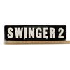 Made of aluminium, the plate features white raised text reading "Swingers 2" over a black background. The reverse side exhibits rusting from age, while the front displays minor chips to the black coating from production use. Dimensions: 51 cm x 13 cm (20" x 5 1/4")