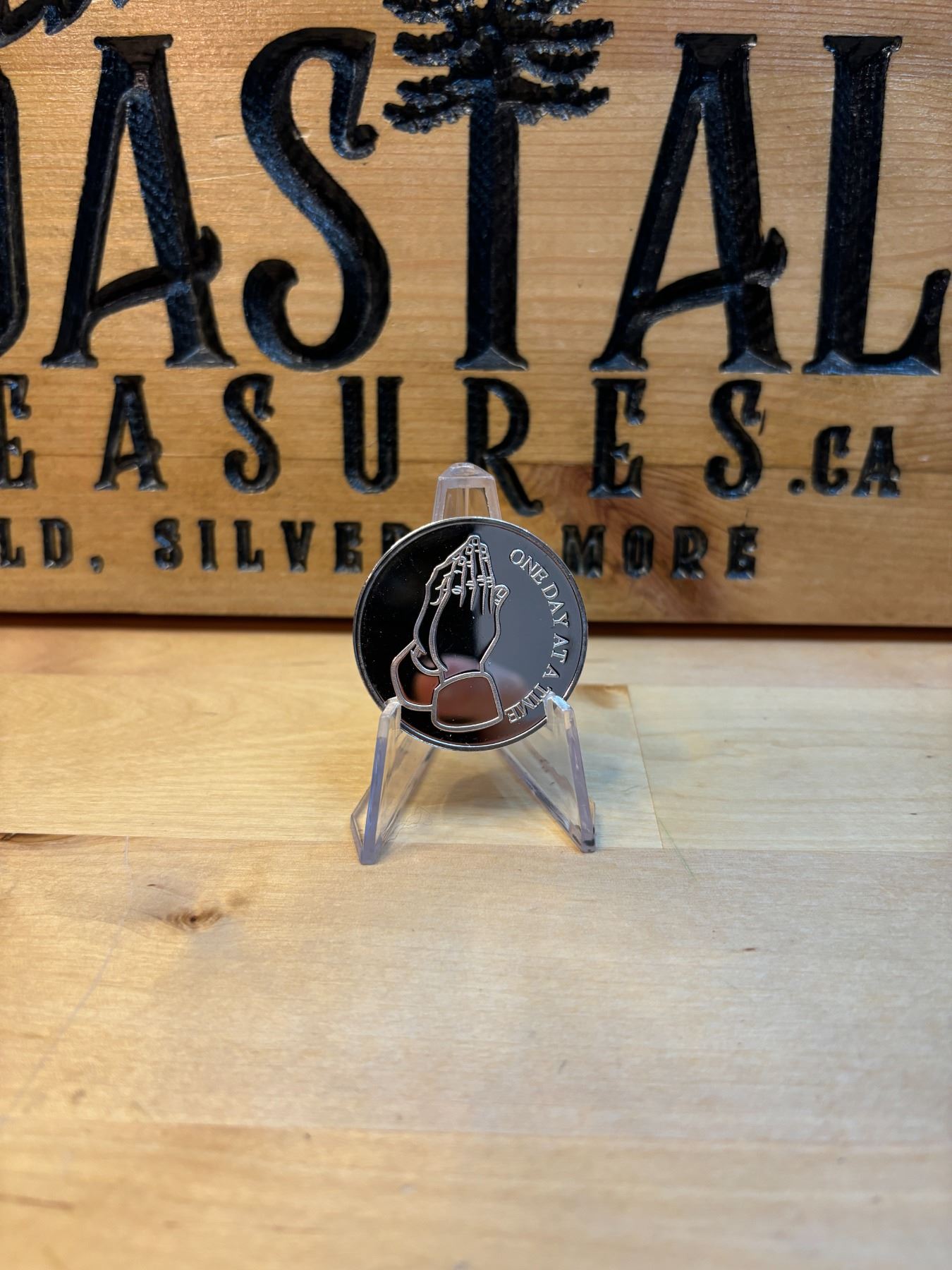 The 1 oz One Day at a Time Silver Round is a 1-ounce silver round made from 99.9% pure silver. The design typically features the phrase "One Day at a Time", which is a popular mantra often associated with personal growth, overcoming challenges, and living in the present moment. It may include symbolic elements like clocks, calendars, or motivational imagery. This round is popular among those seeking inspirational or reflective themes, and is valued for both its silver content and its uplifting message. It can be a meaningful gift or a reminder for personal resilience and focus.